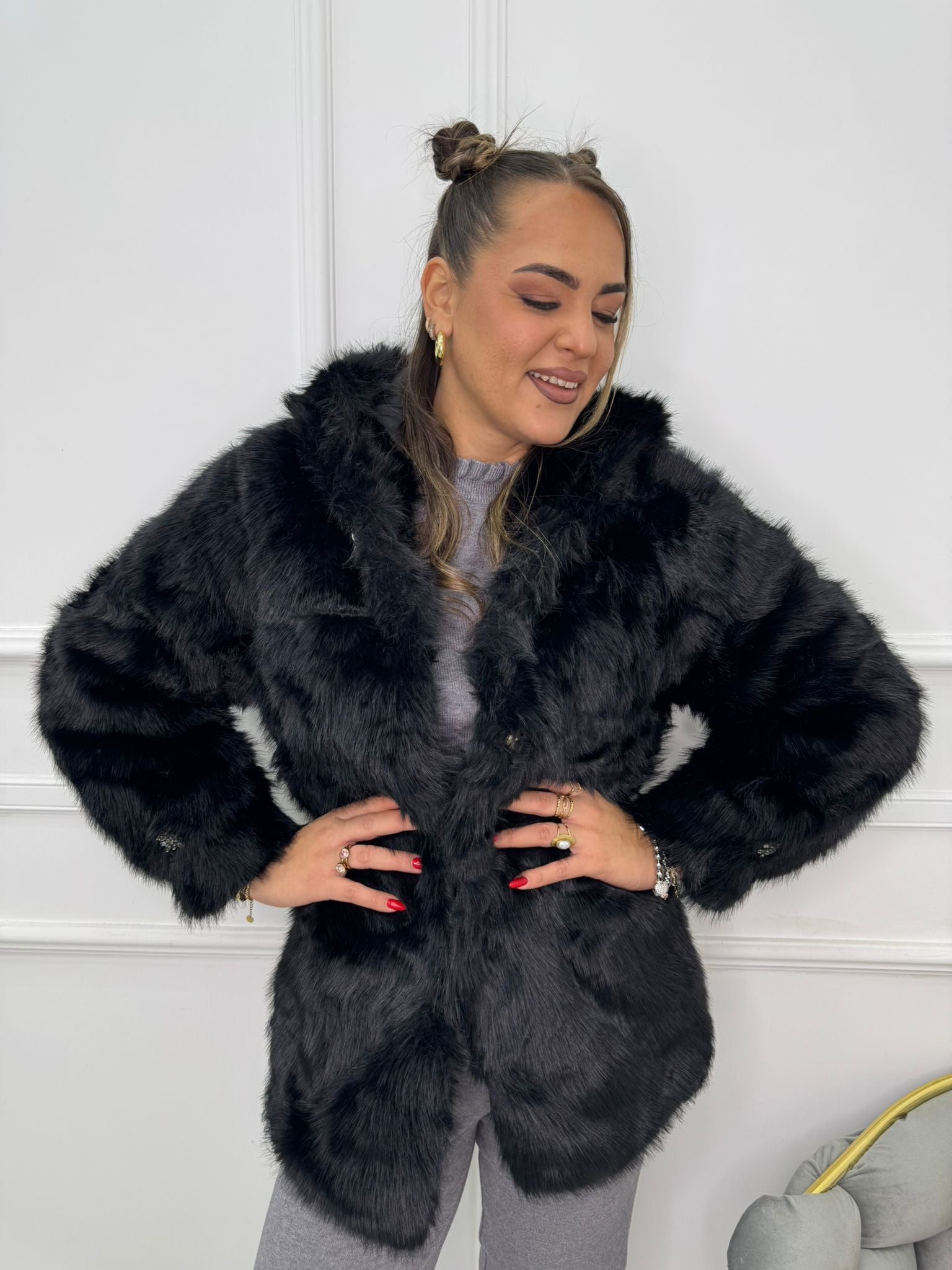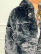 Pelliccia eco over con bottone gioiello