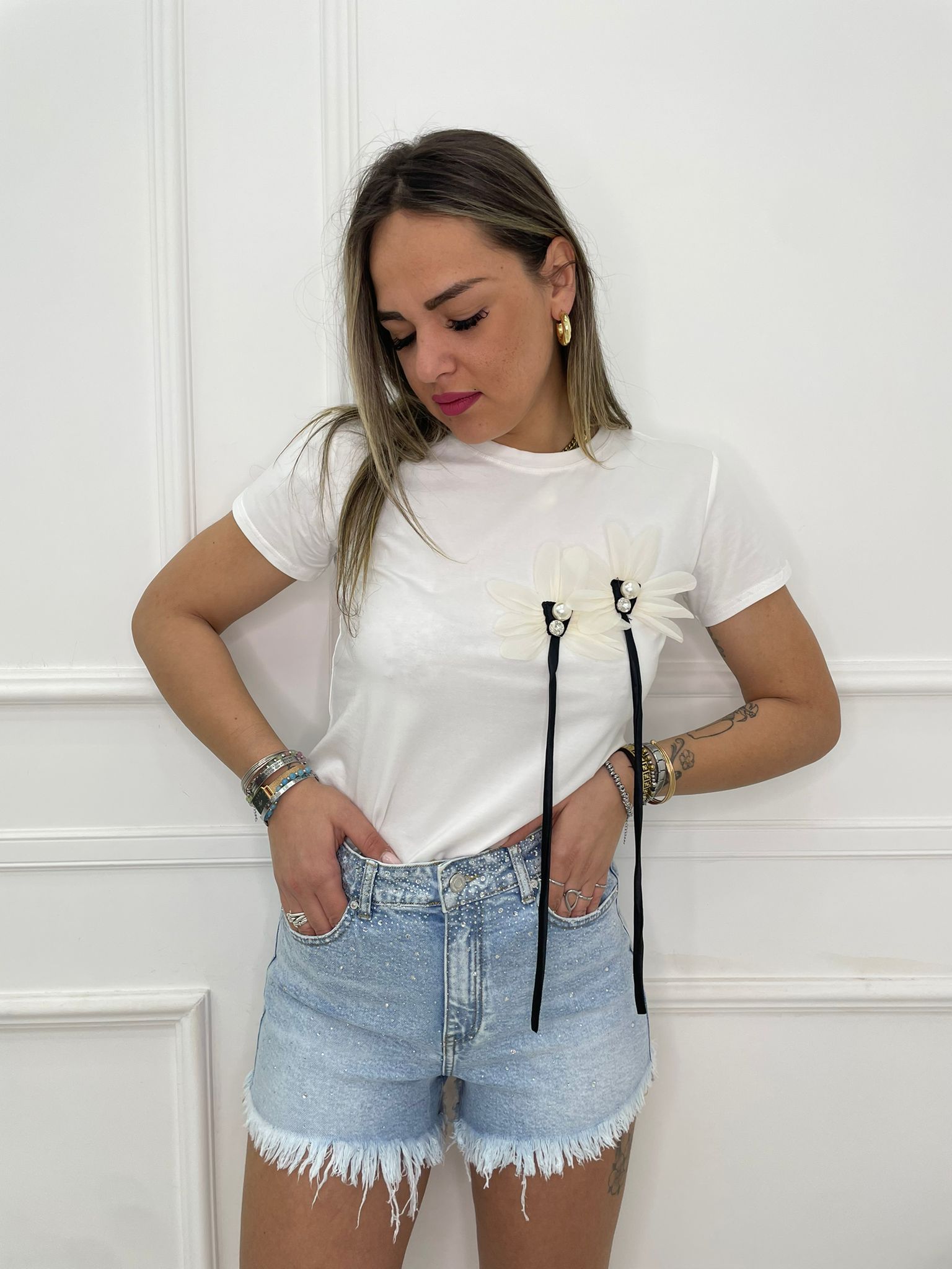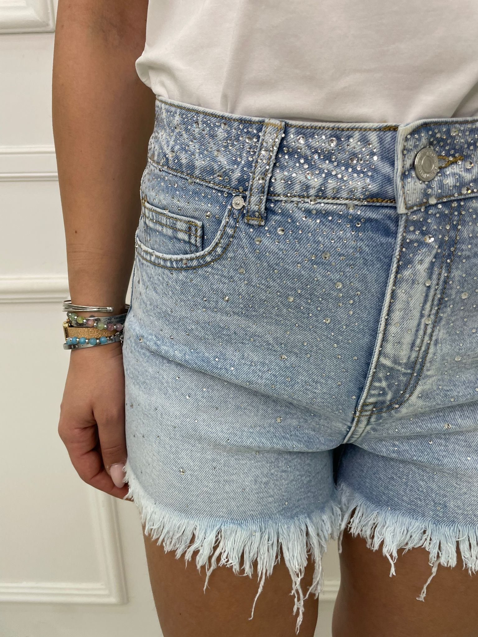 Shorts di jeans lavaggio chiaro con brillantini