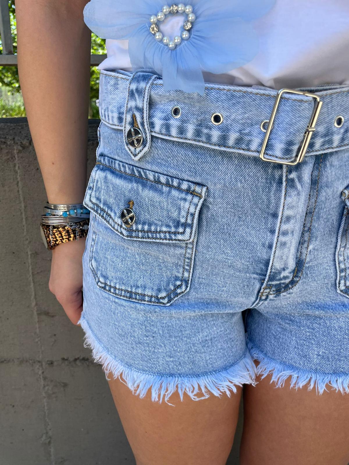 Shorts di jeans lavaggio chiaro con cintura