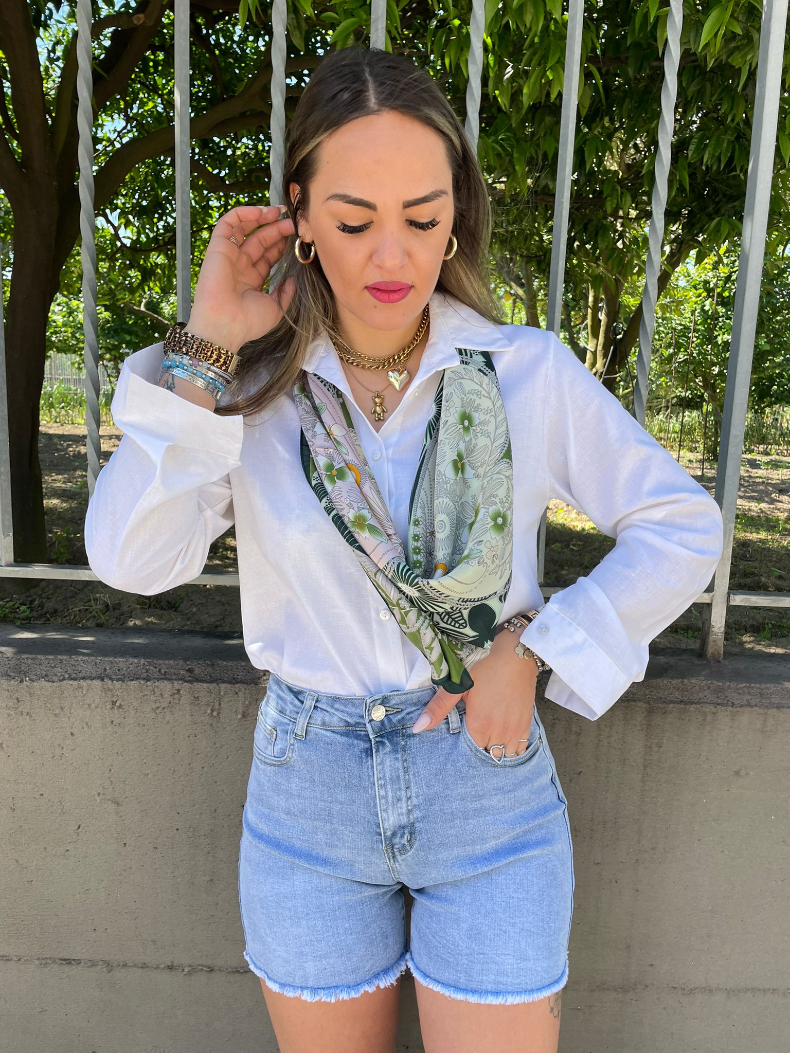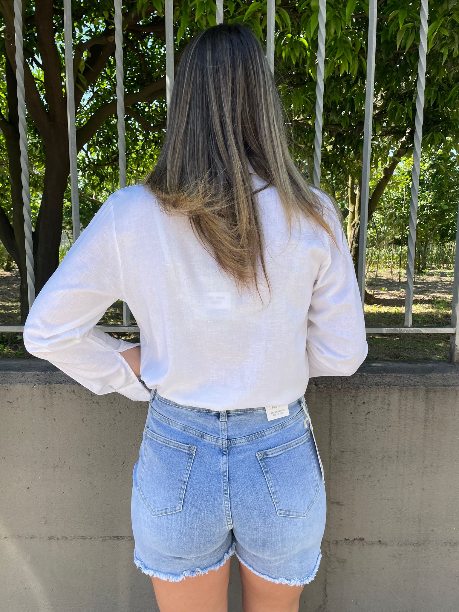Shorts di jeans lavaggio chiaro sfrangiato sotto