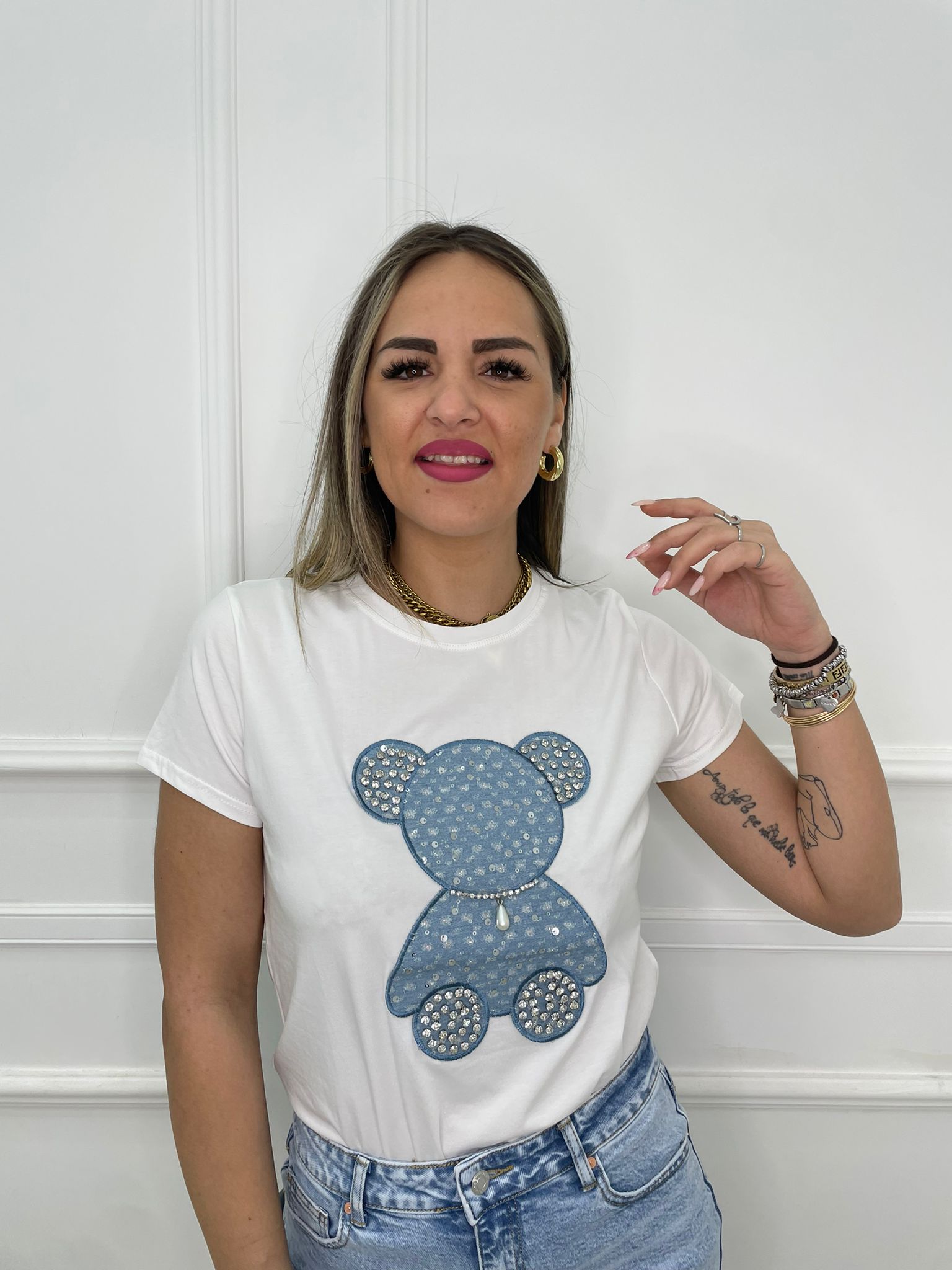 T-shirt bianca con orsetto