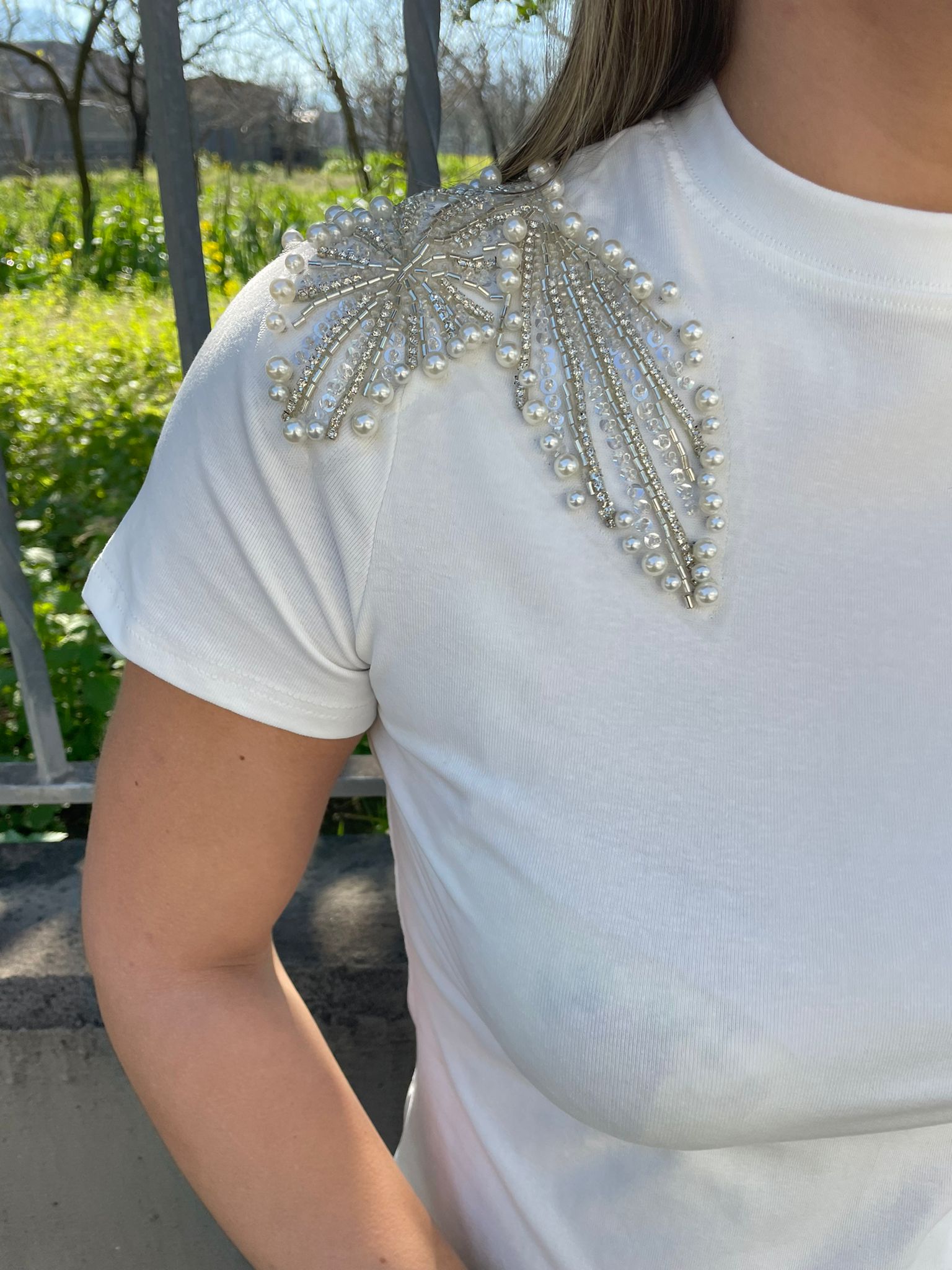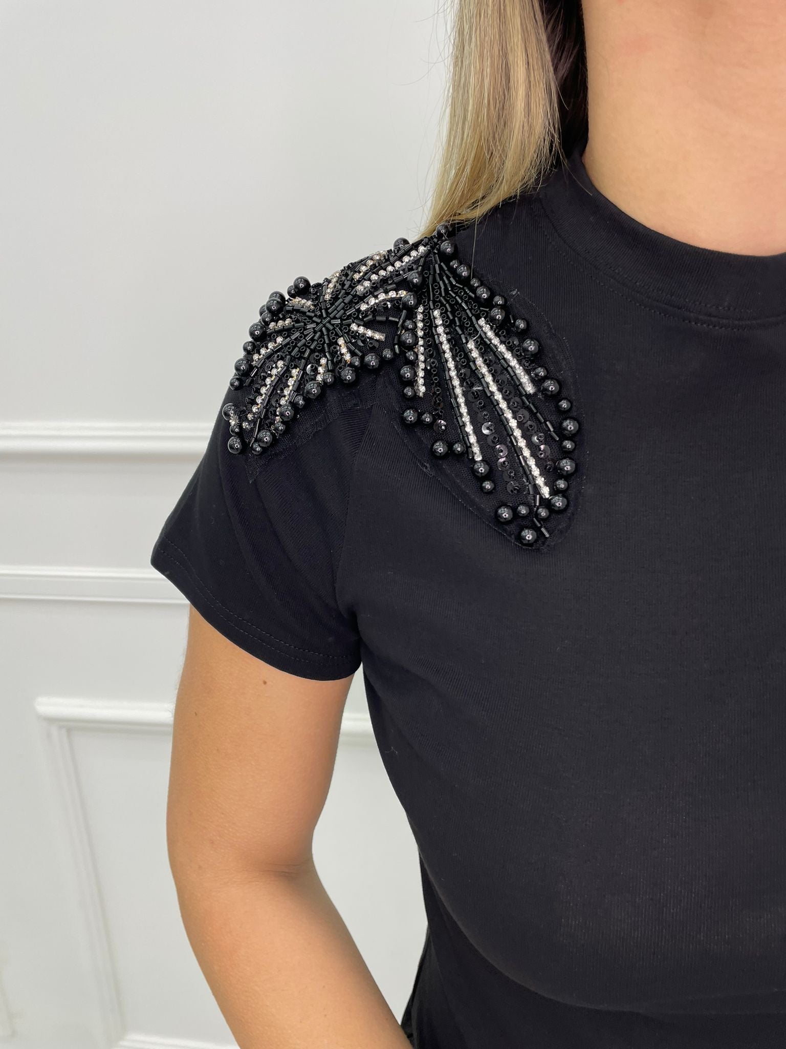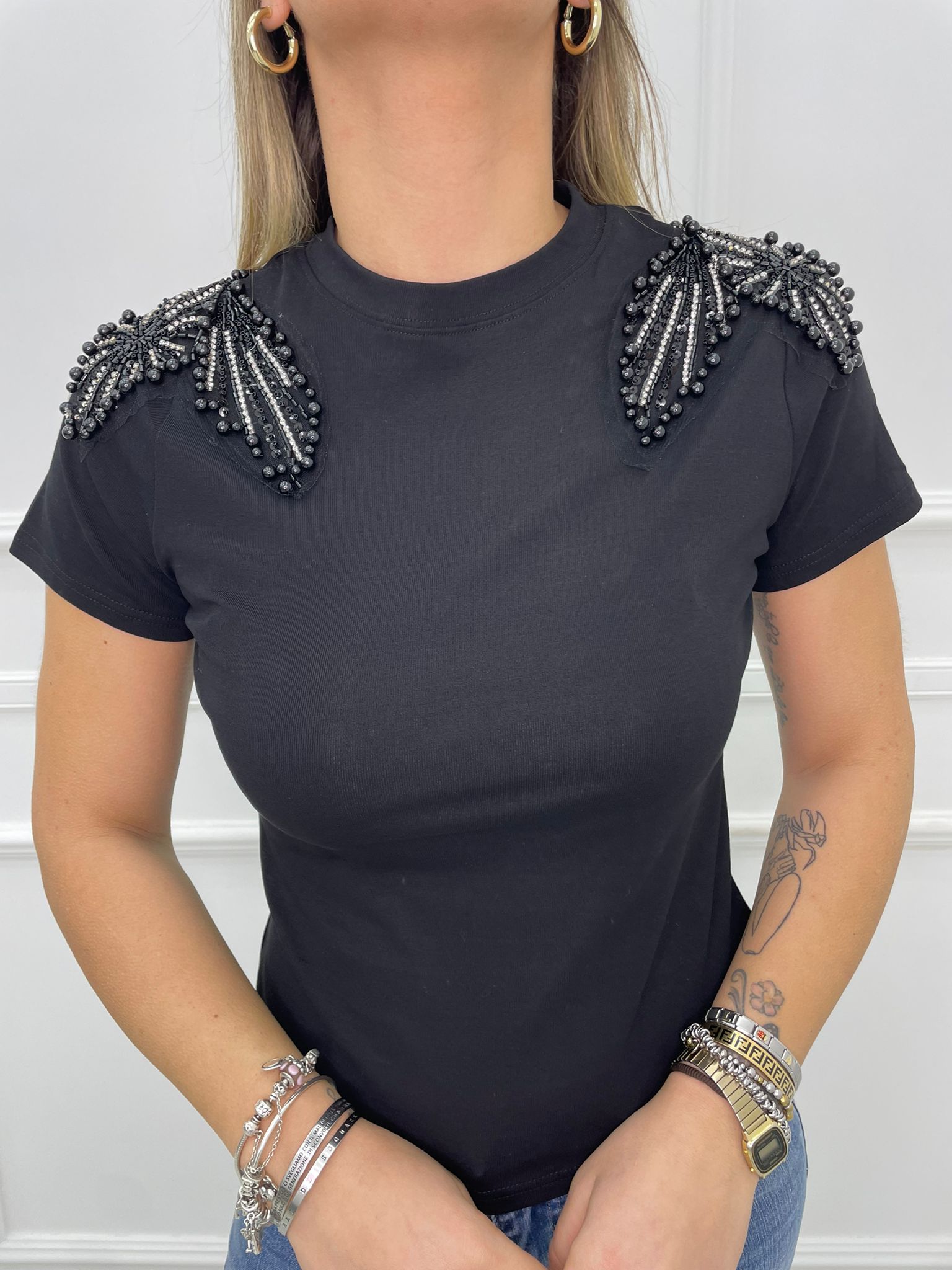 T-shirt tinta unita con applicazioni alle spalle