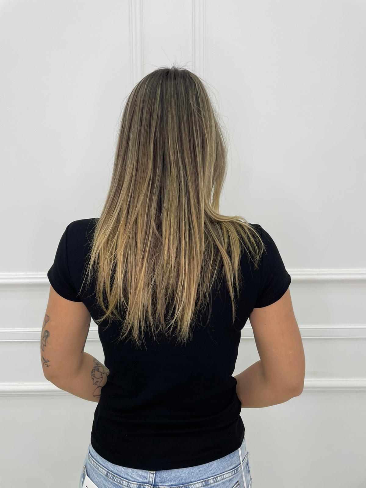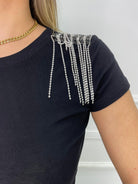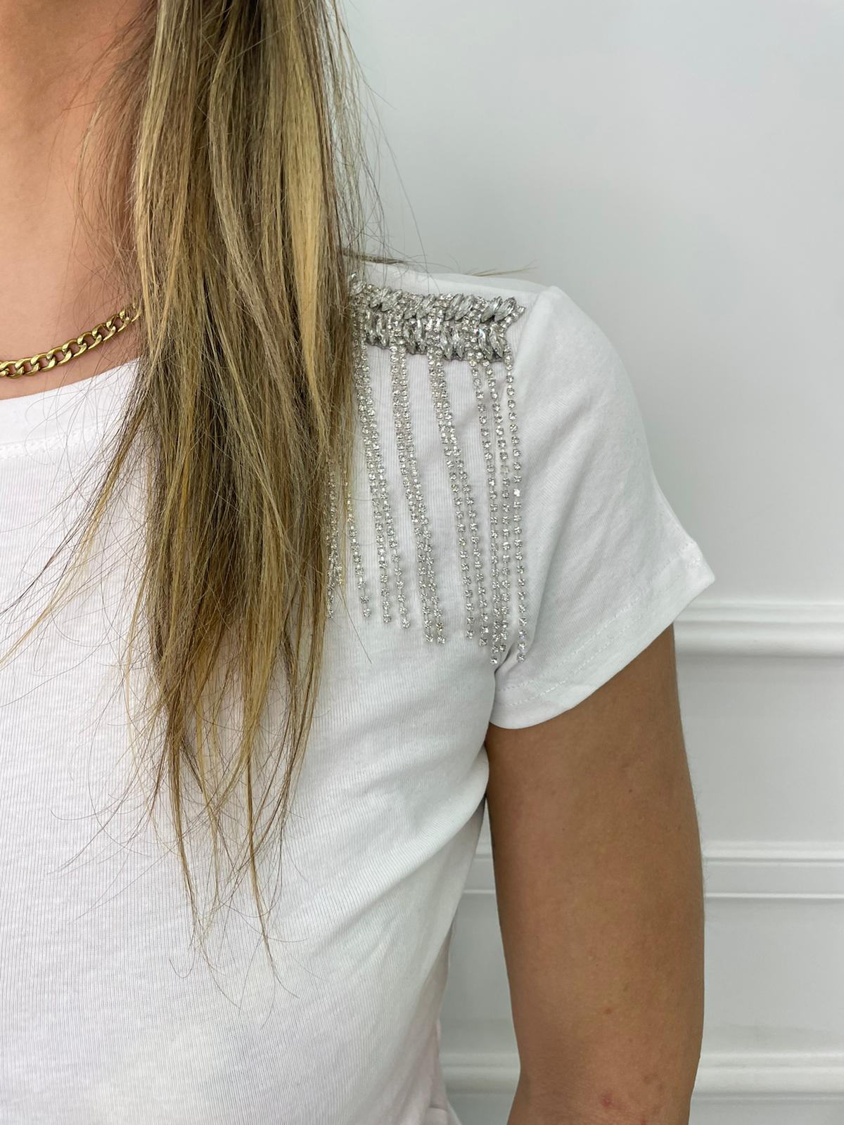 T-shirt tinta unita con applicazioni gioiello alle spalle