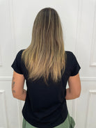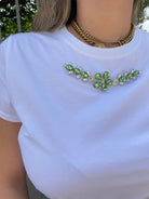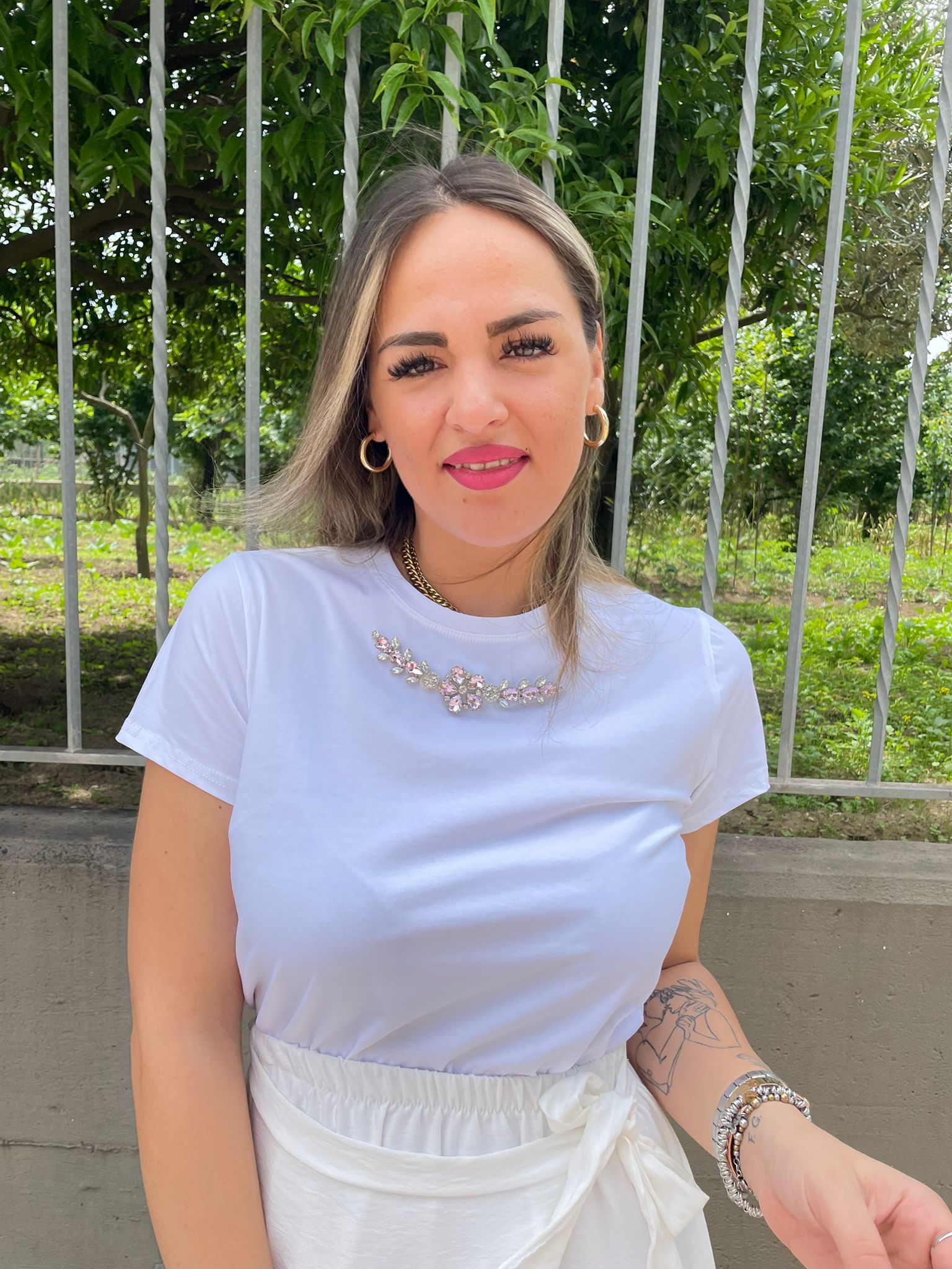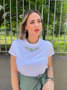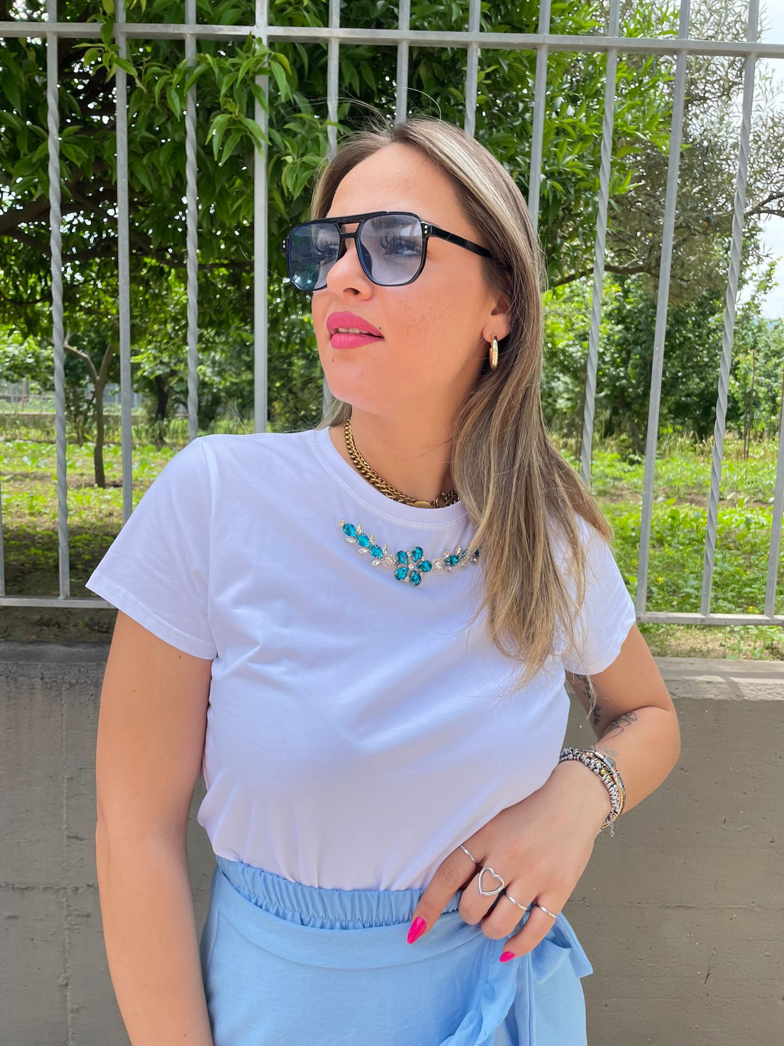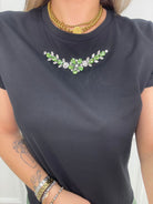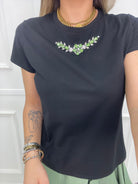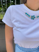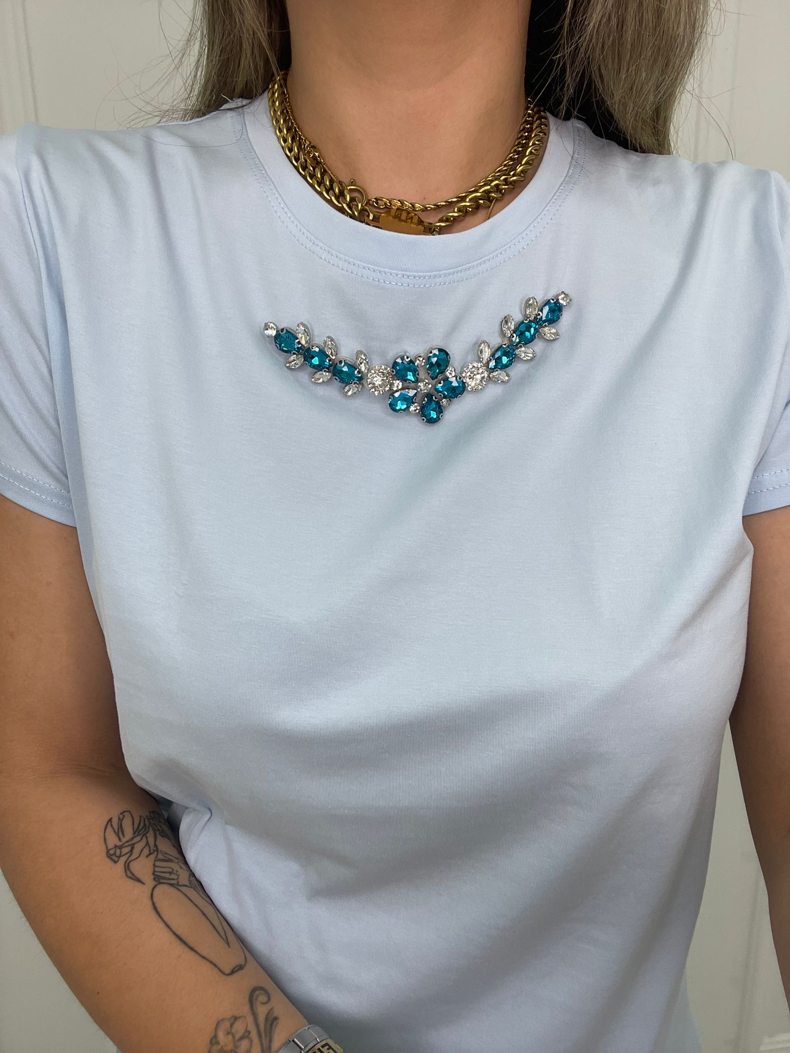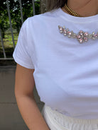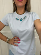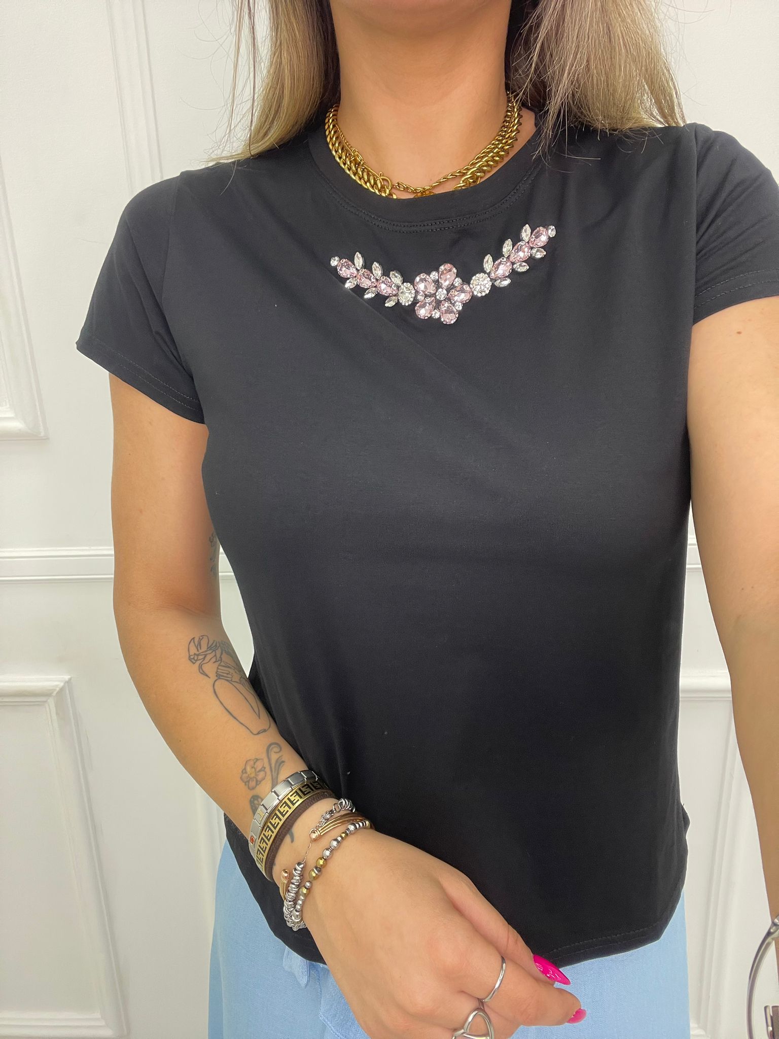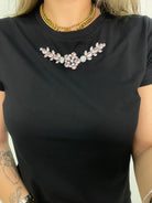 T-shirt tinta unita con applicazioni swarovski