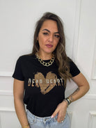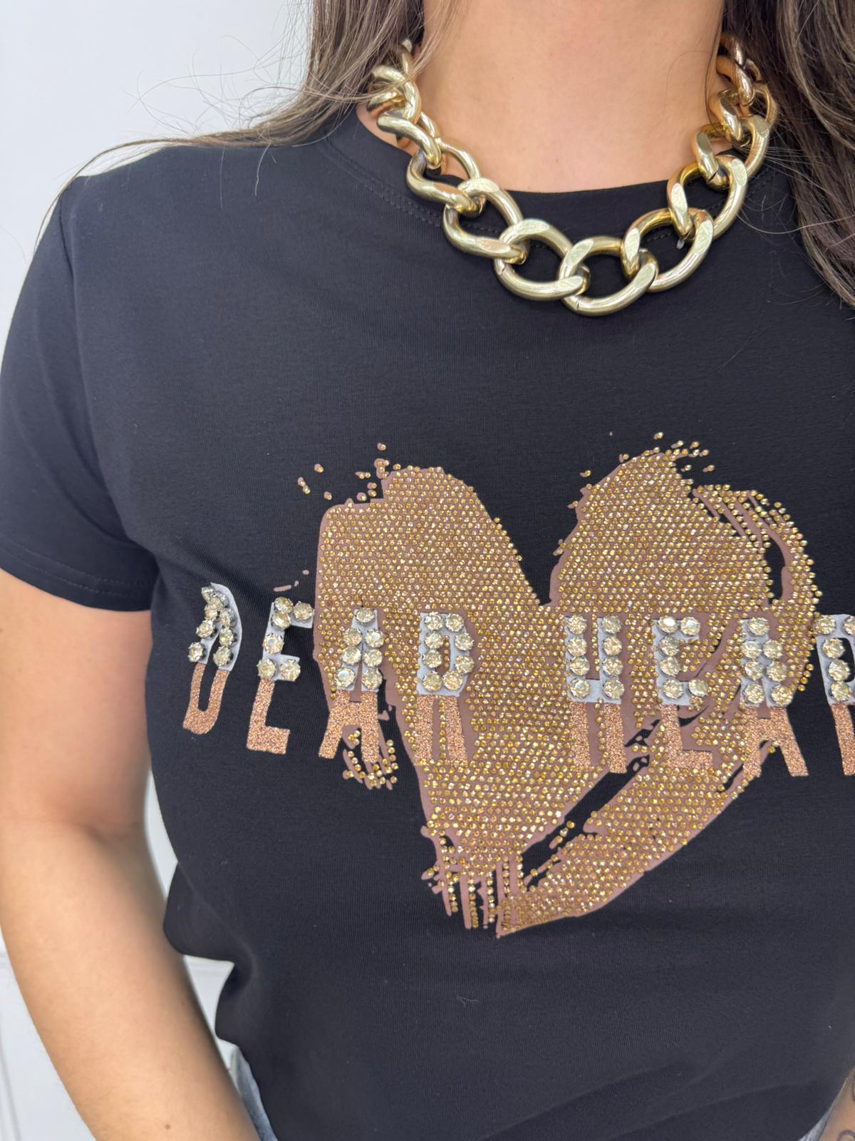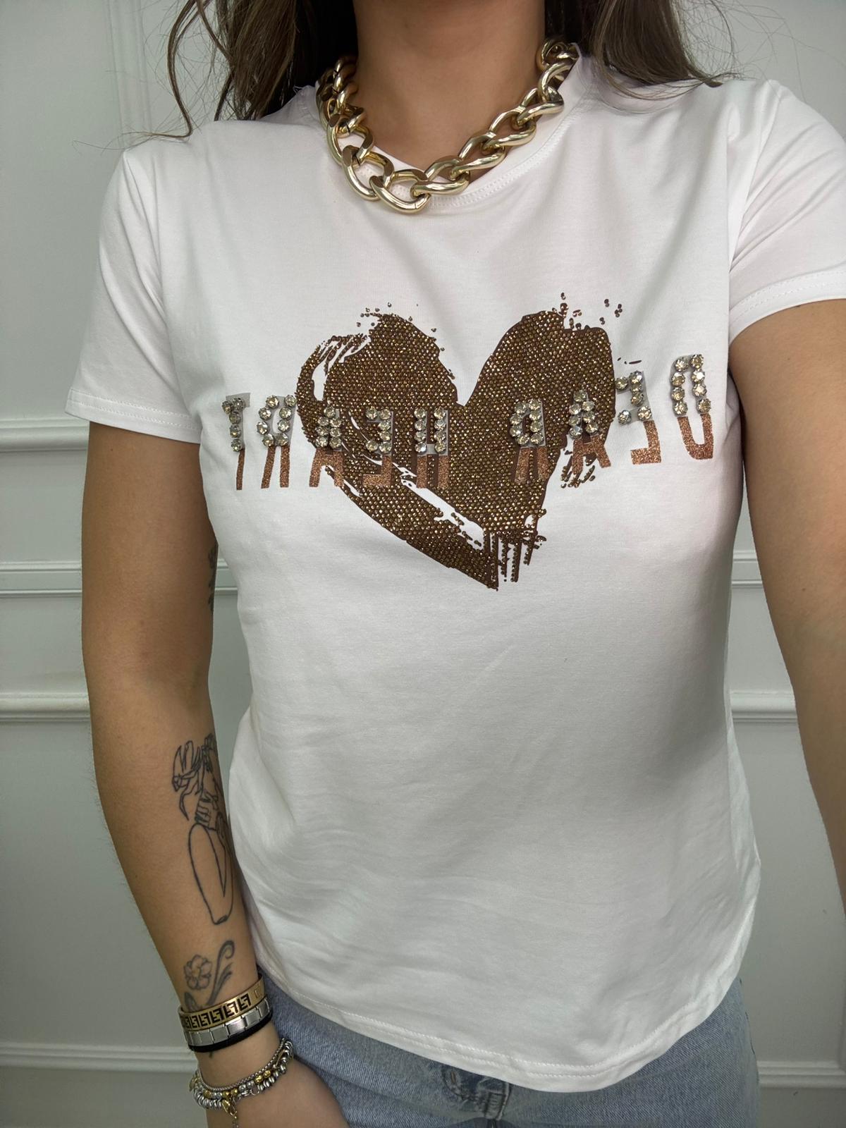 T-shirt tinta unita con cuore e swarovski