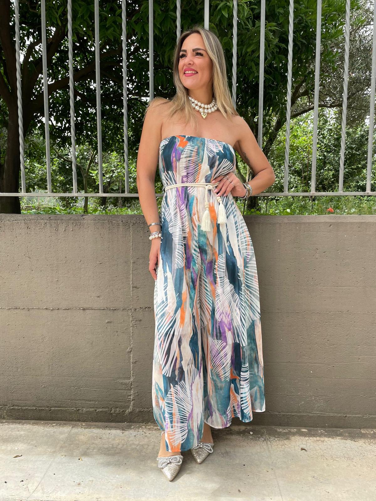 Tuta intera a fantasia con cintura corda
