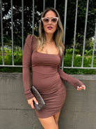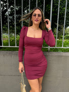 Vestitino in lycra tinta unita con spalle a sbuffo