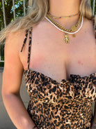 Vestito animalier con coppette e laccetti regolabili alle spalle
