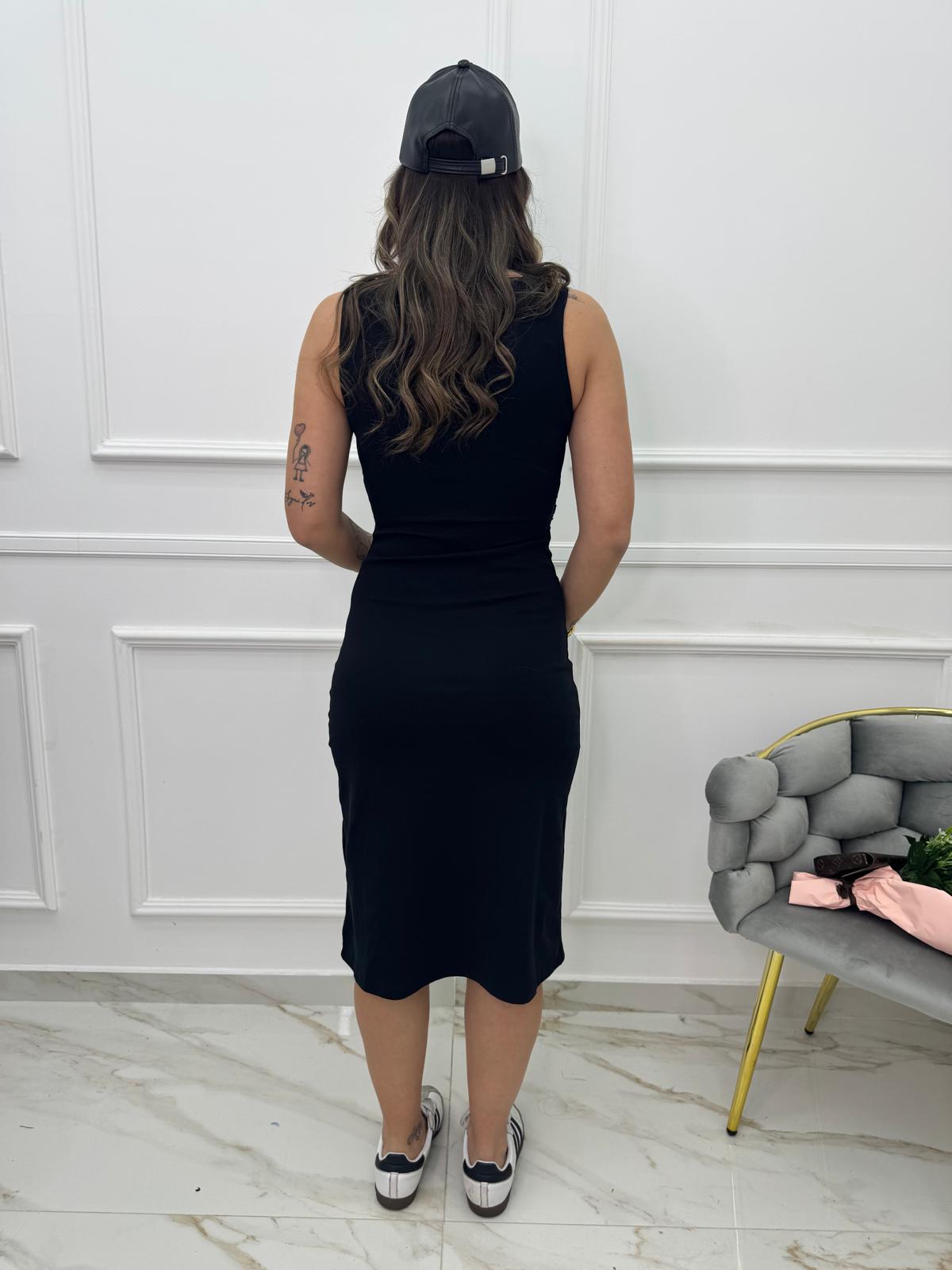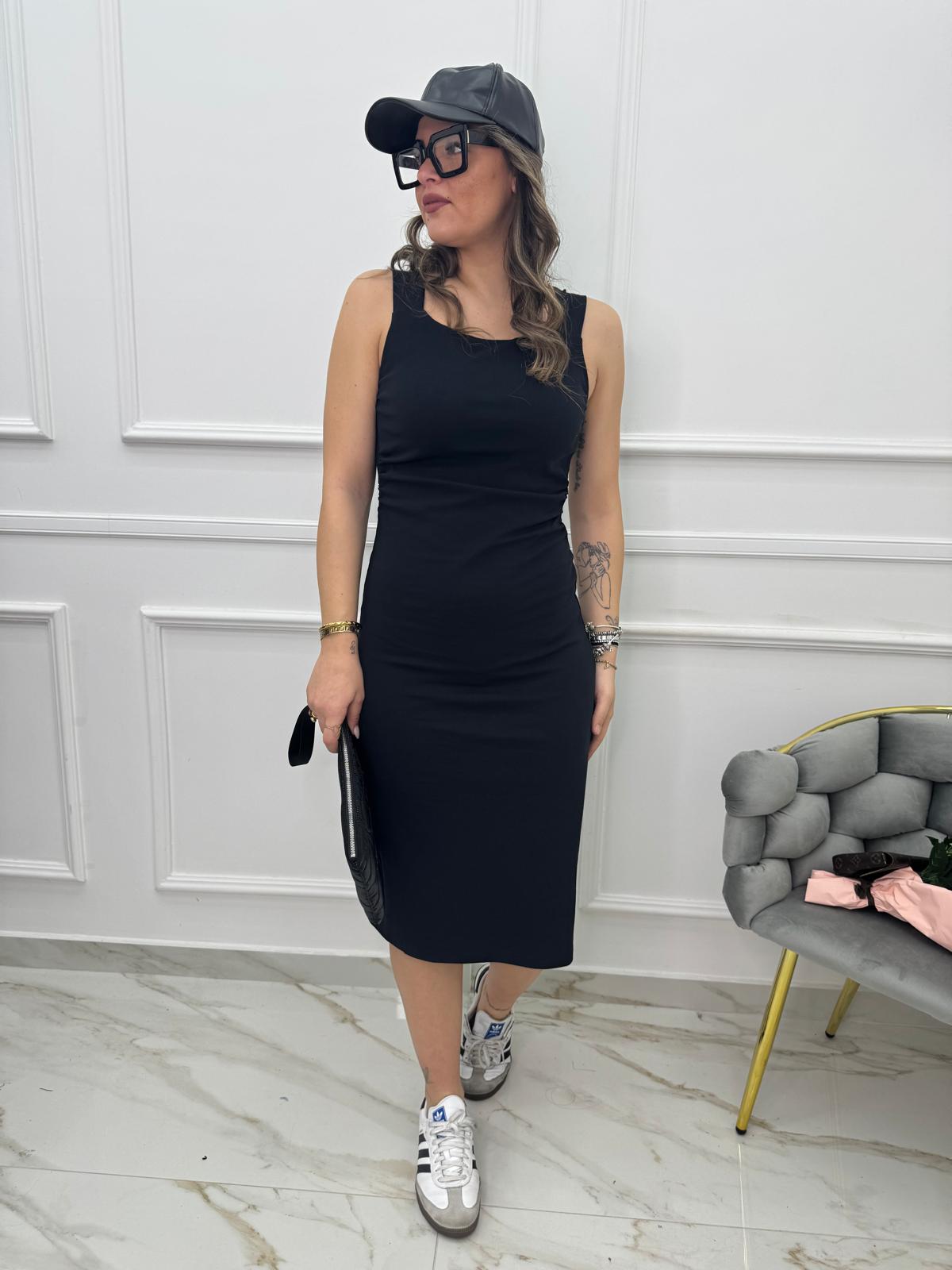 Vestito in cotone midi con scollo quadrato e drappeggio sui fianchi