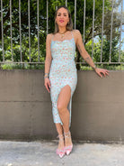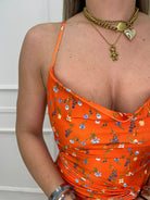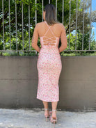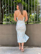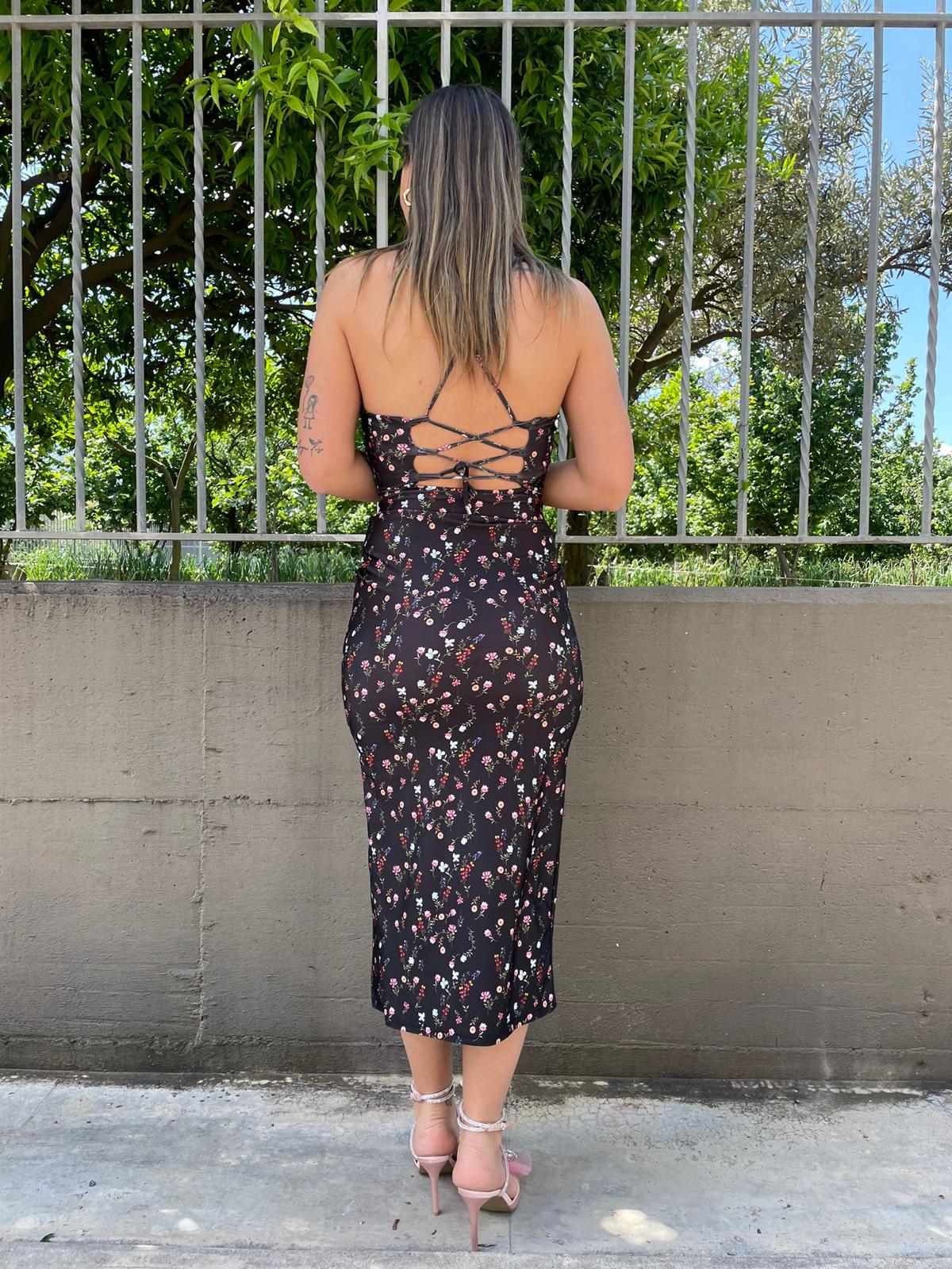 Vestito in lycra floreale con nodo e schiena scoperta