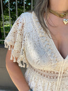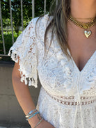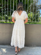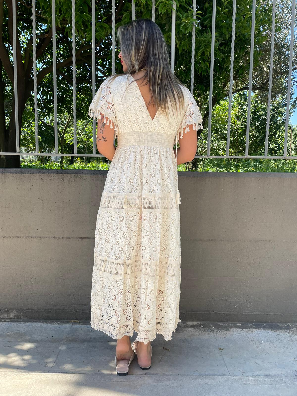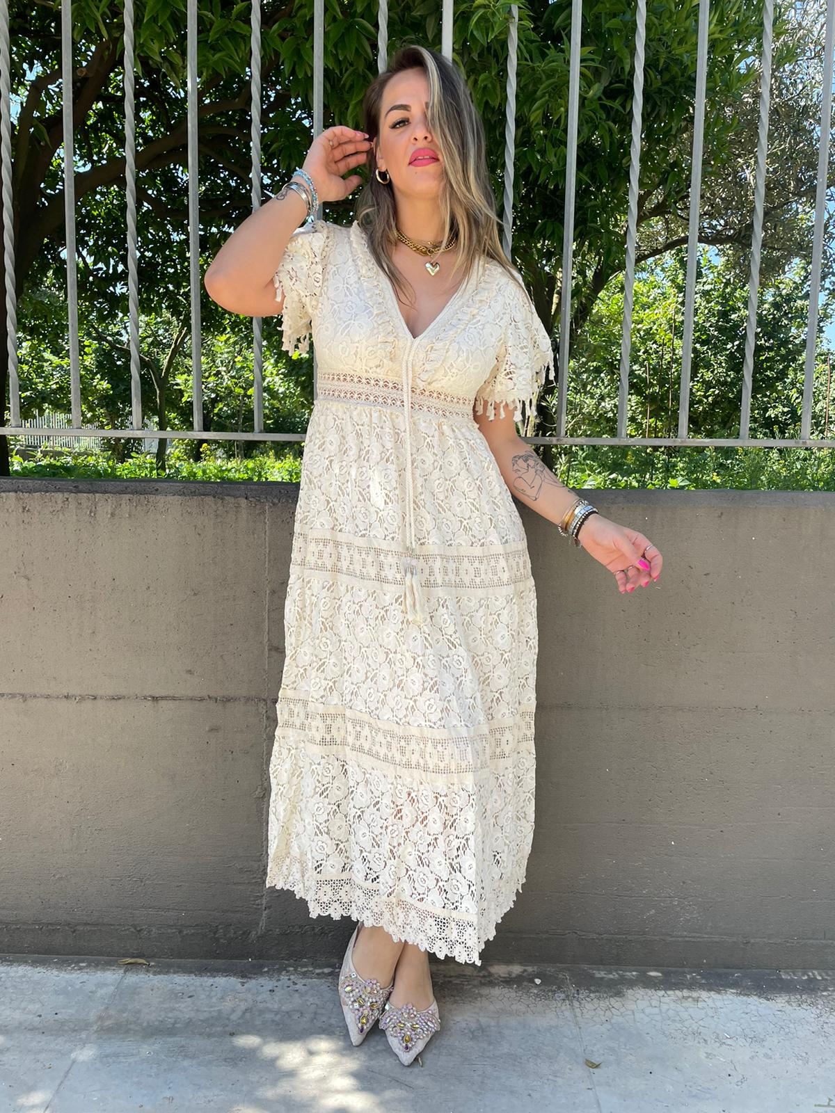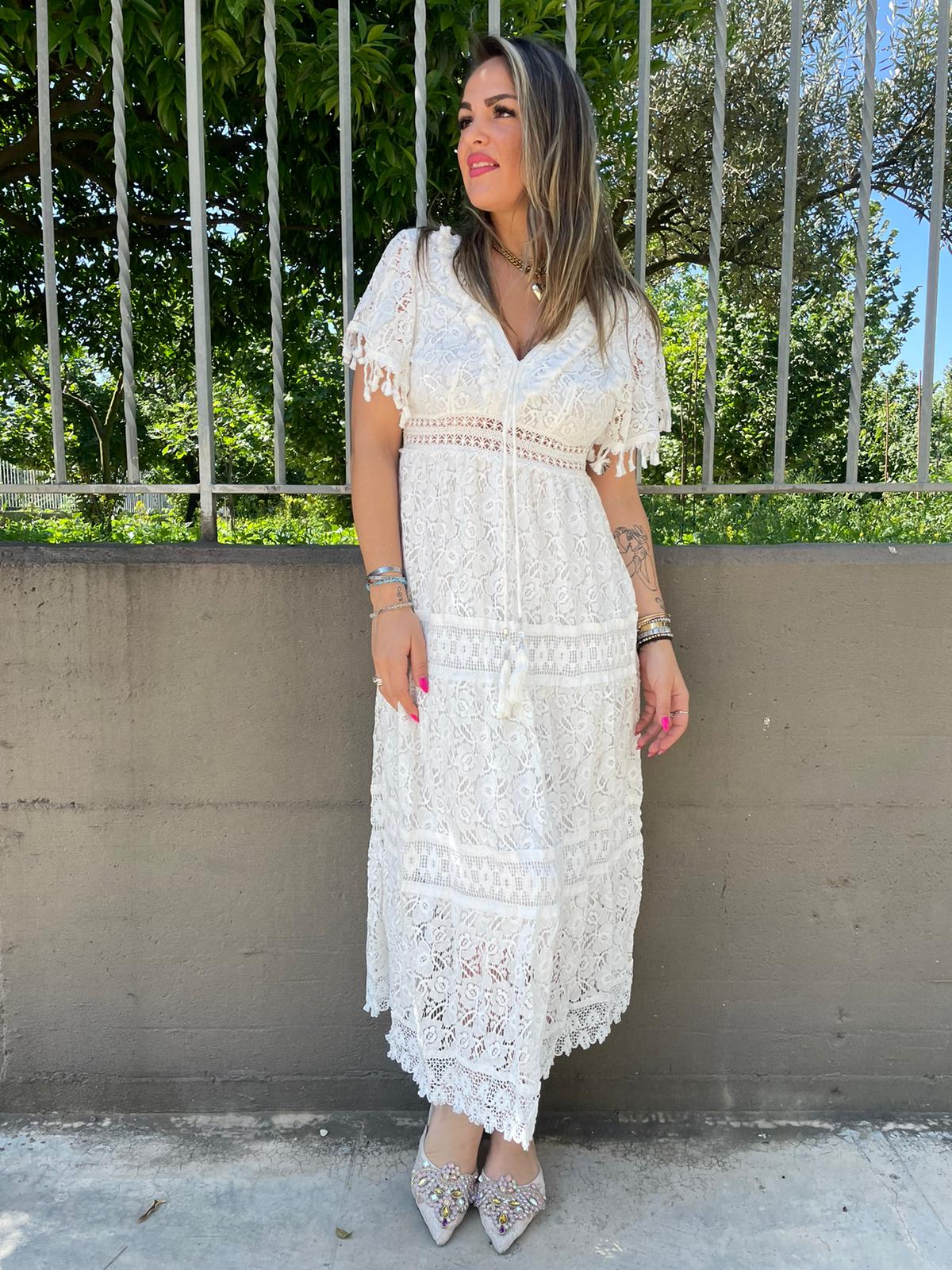 Vestito in pizzo san gallo mezza manica con scollo a V