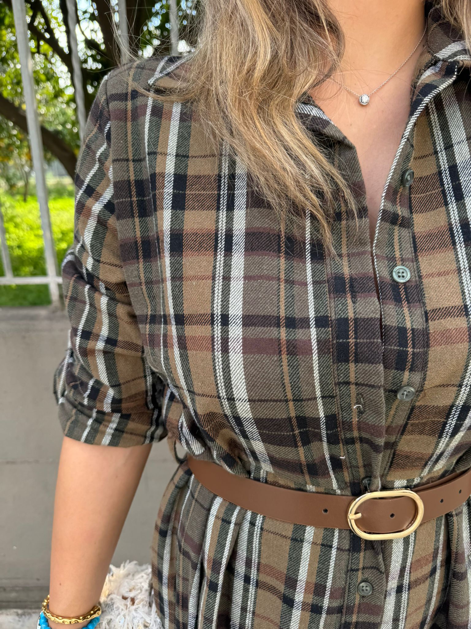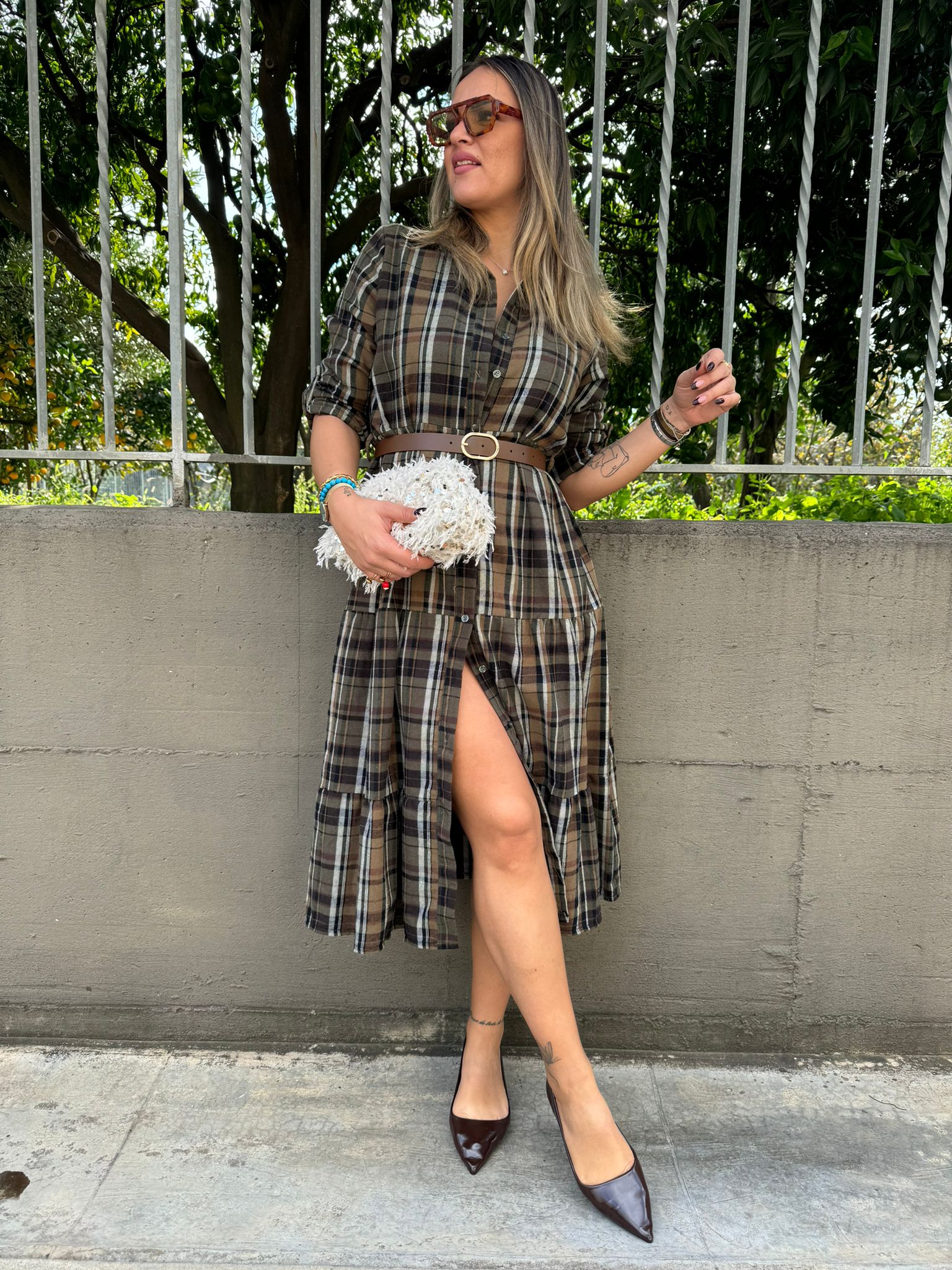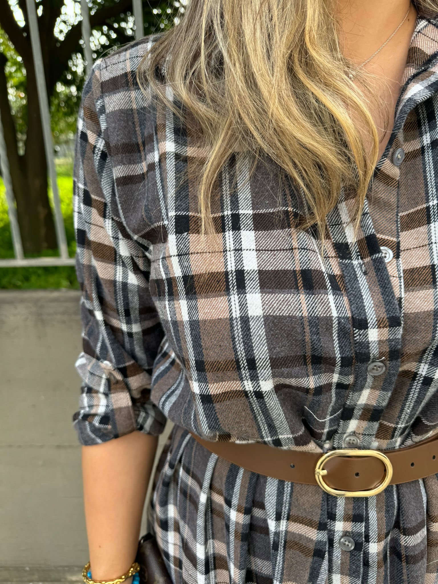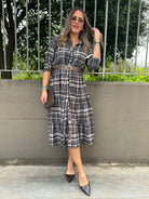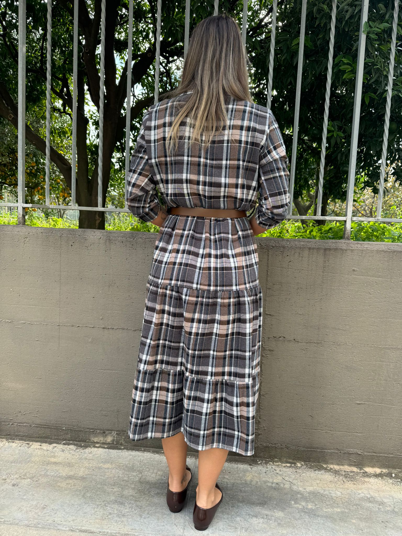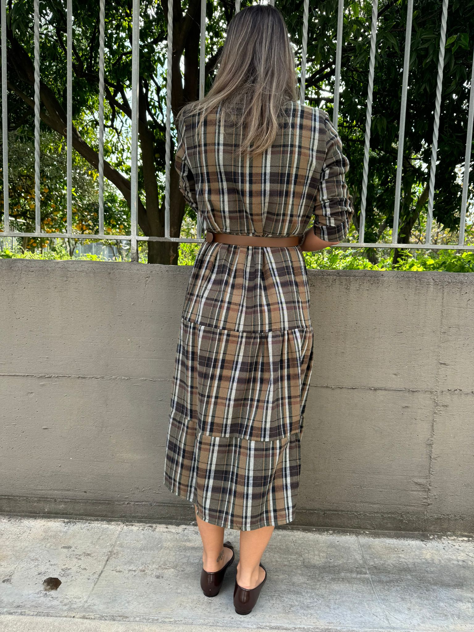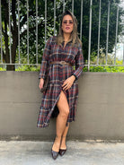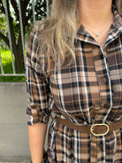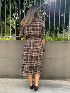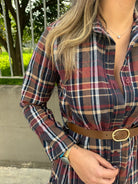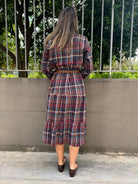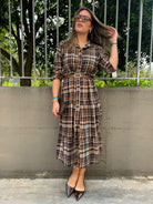Vestito lungo a camicia fantasia tartan