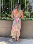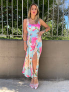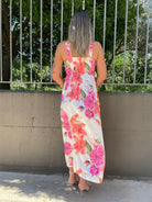 Vestito lungo a fiori con spacco
