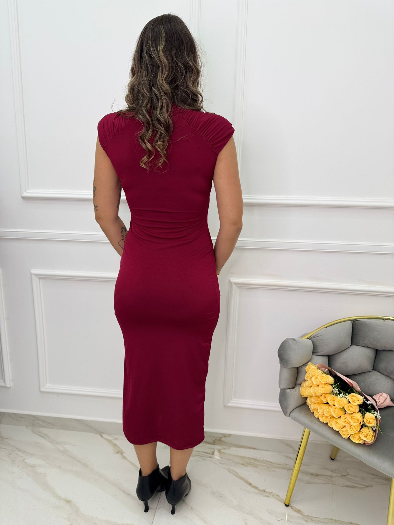 Vestito lungo con drappeggio alle spalle