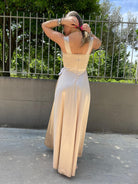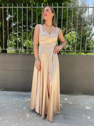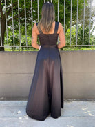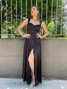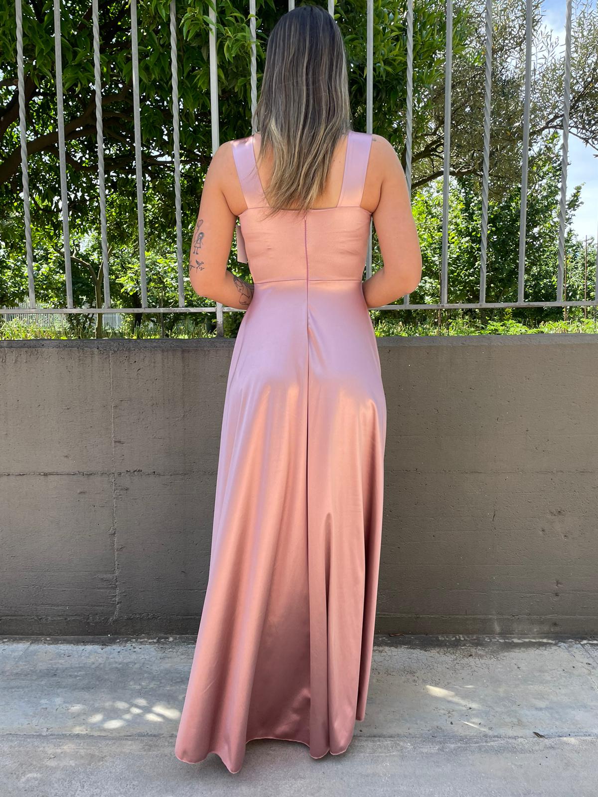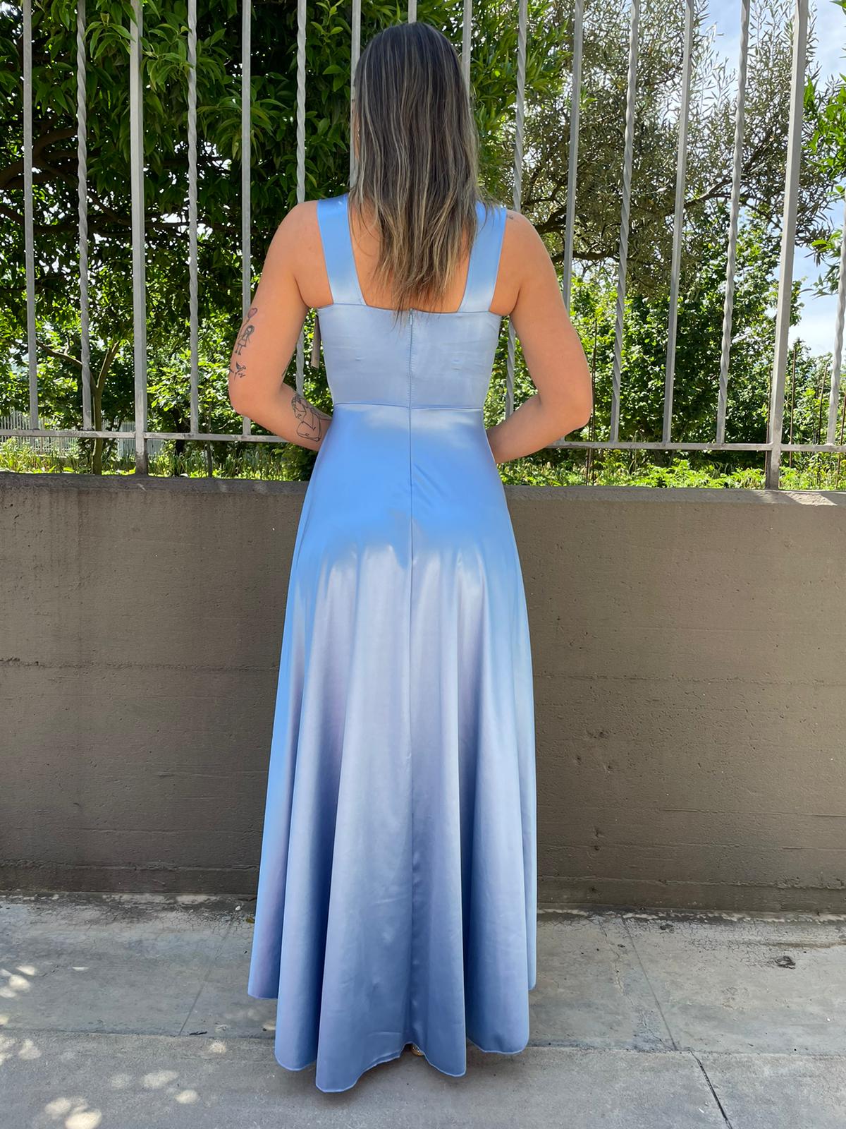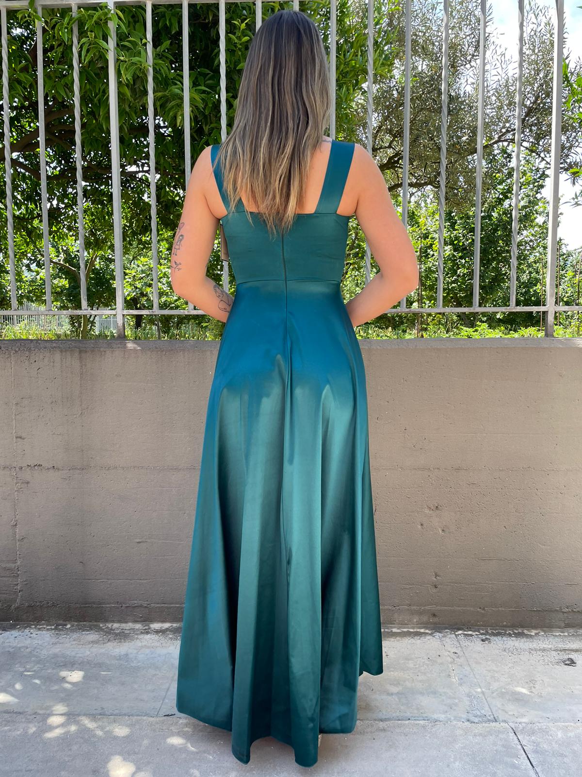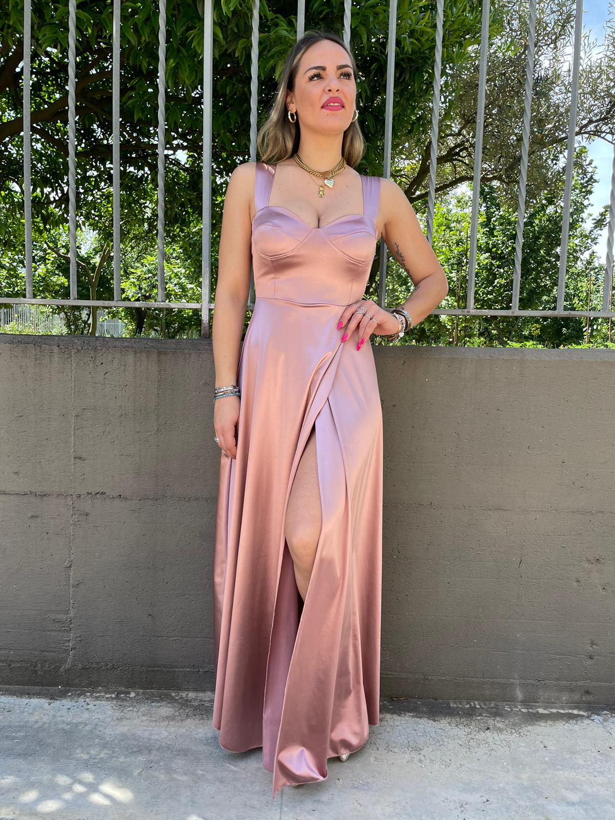 Vestito lungo effetto raso con spacco e scollo a cuore