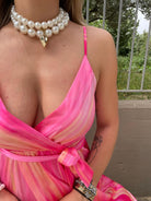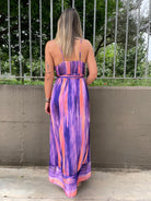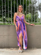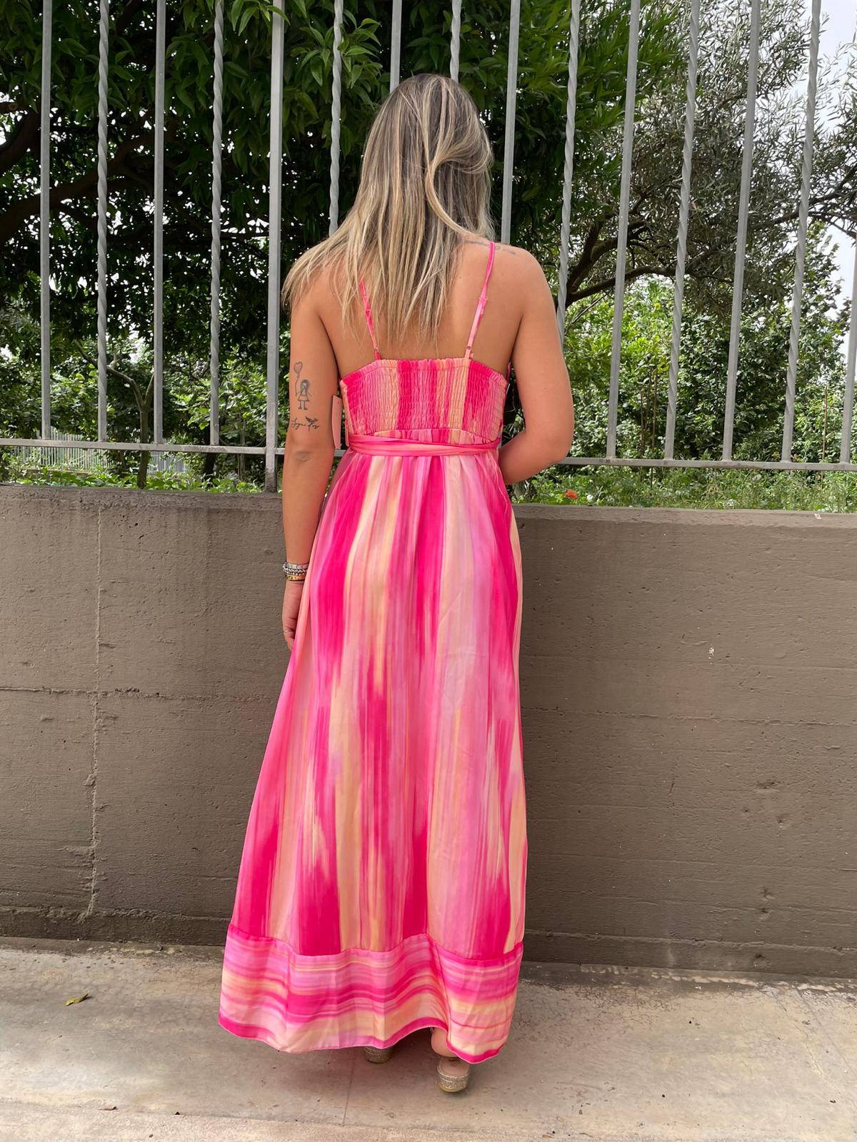 Vestito lungo fantasia colorata con scollo a V e spacco