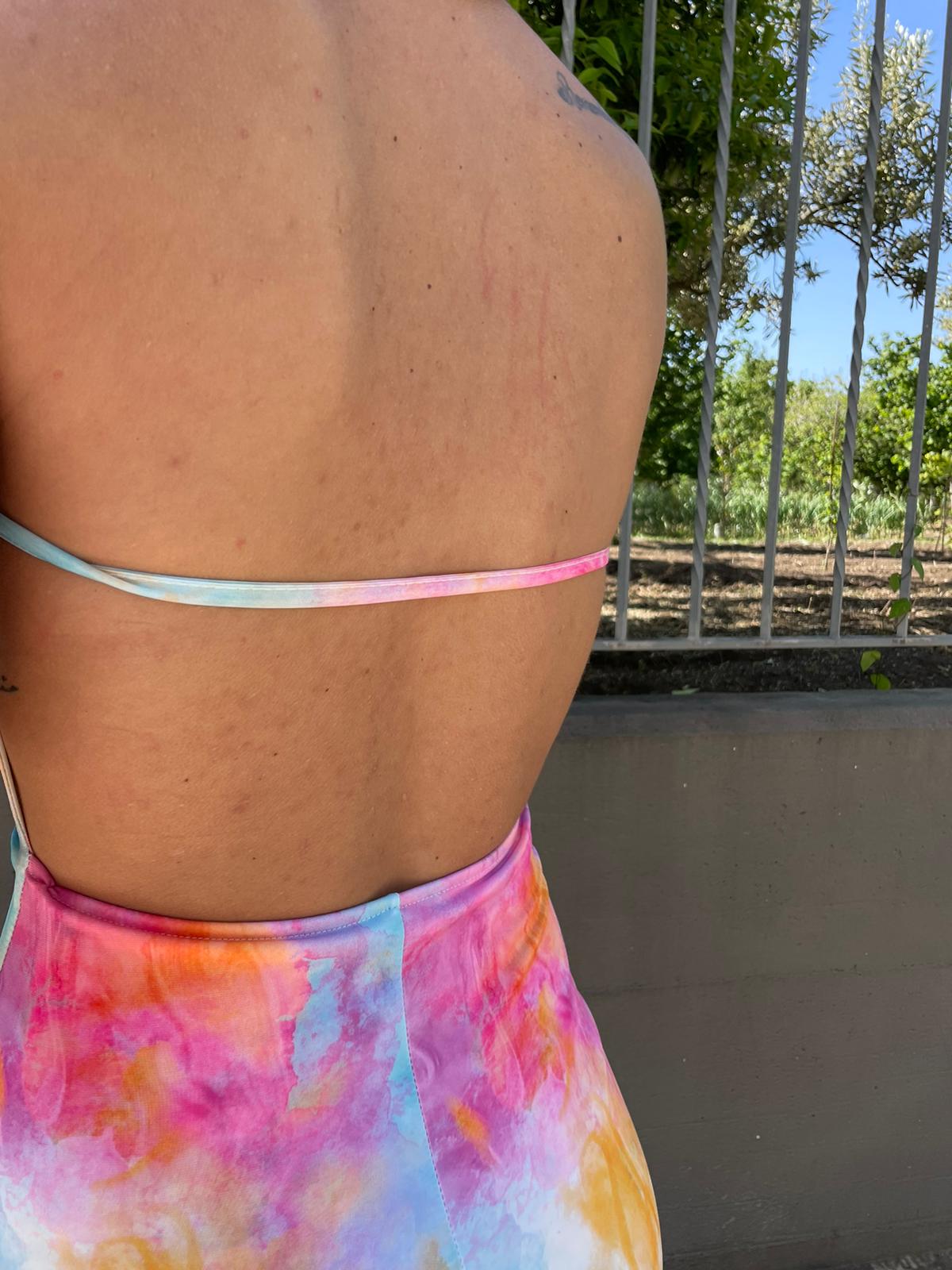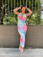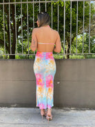 Vestito lungo fantasia sfumata con scollo profondo e schiena scoperta