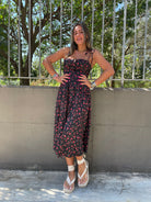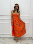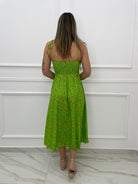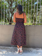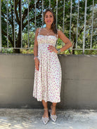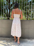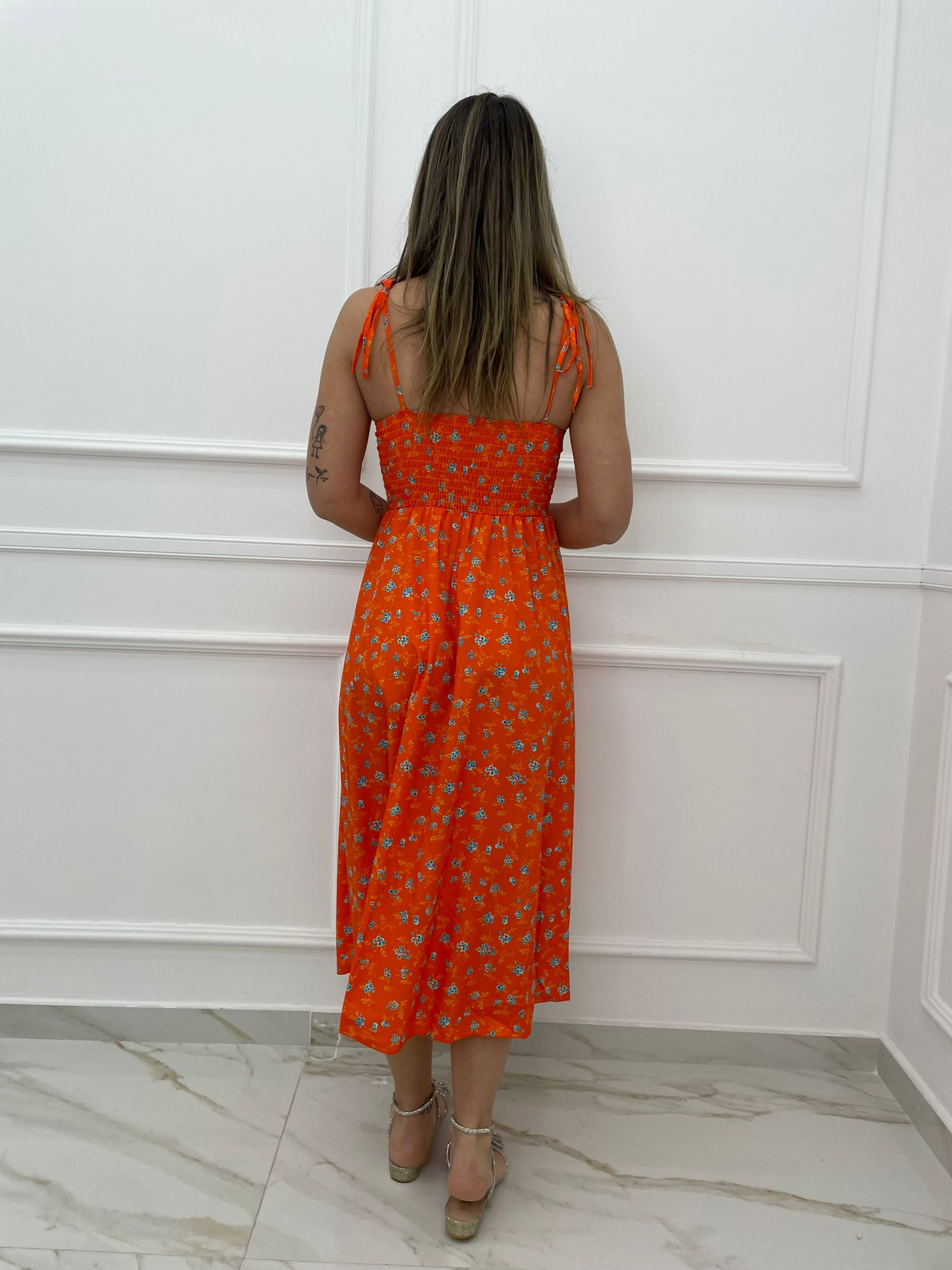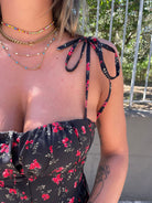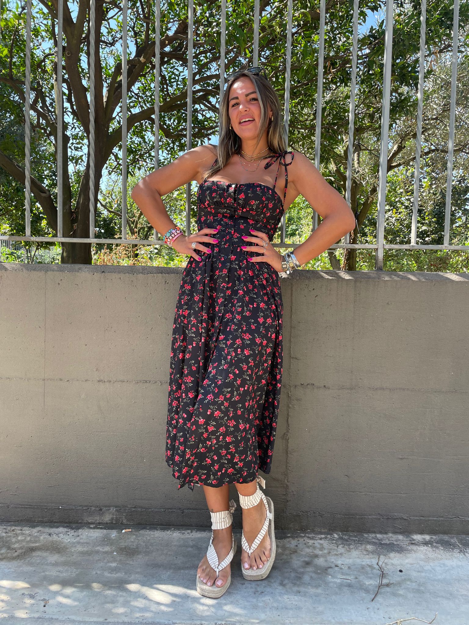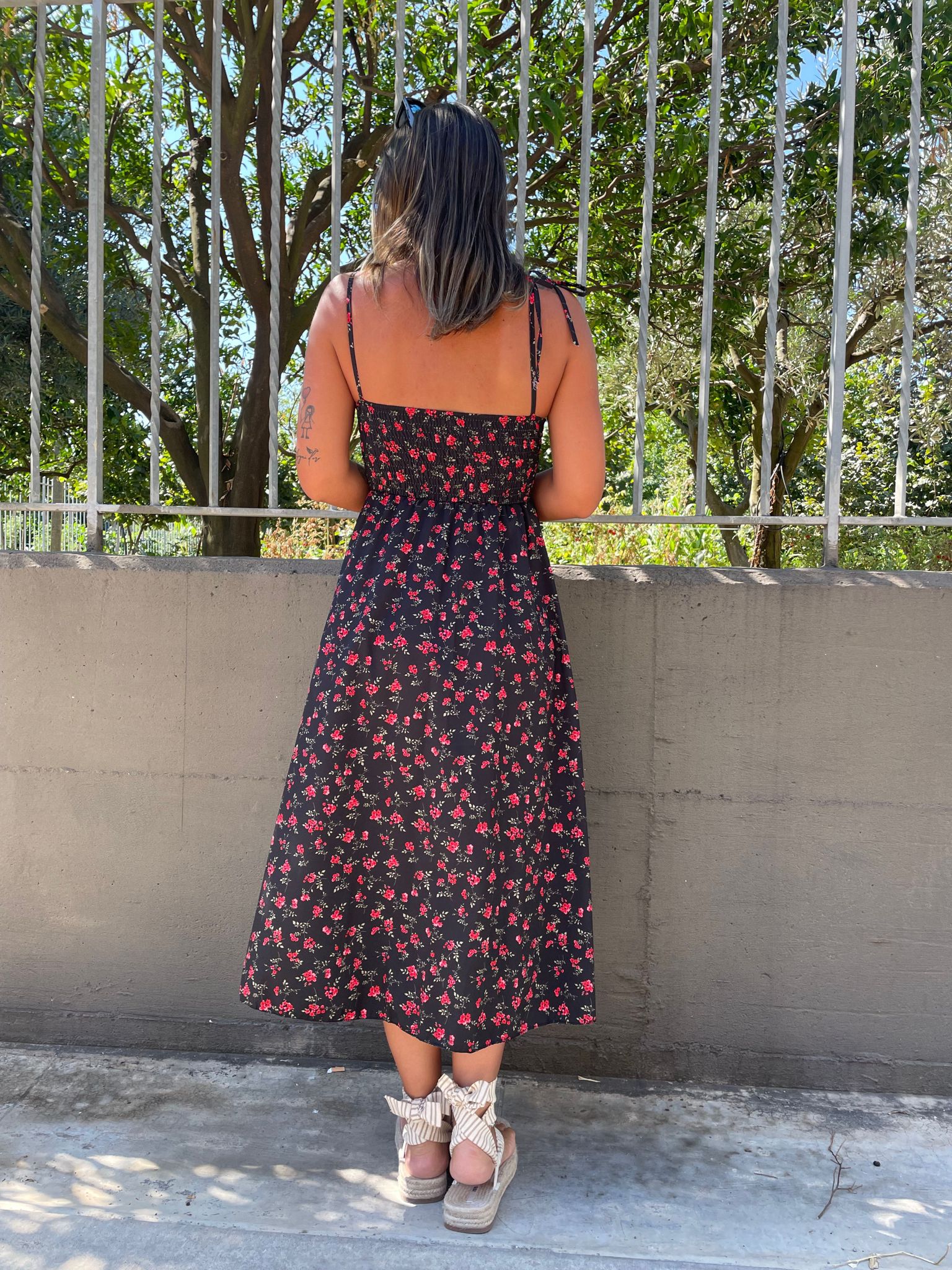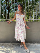 Vestito lungo floreale con corpetto e laccetti alle spalle