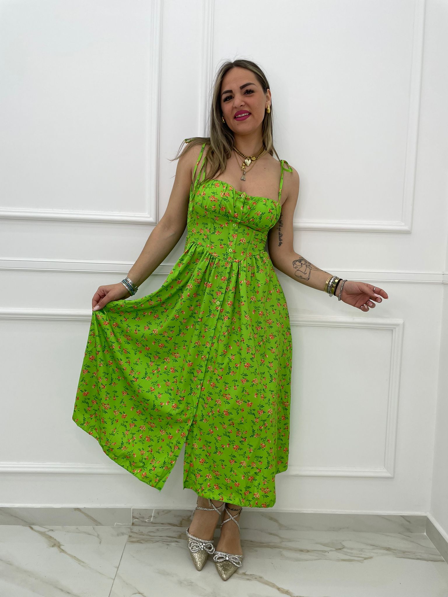 - Vestito lungo fantasia floreale