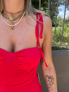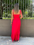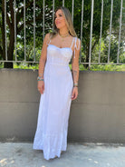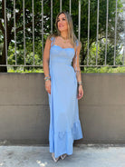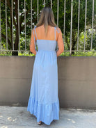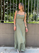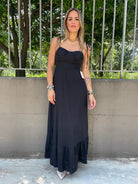 Vestito lungo in cotone con balza sotto e laccetti alle spalle