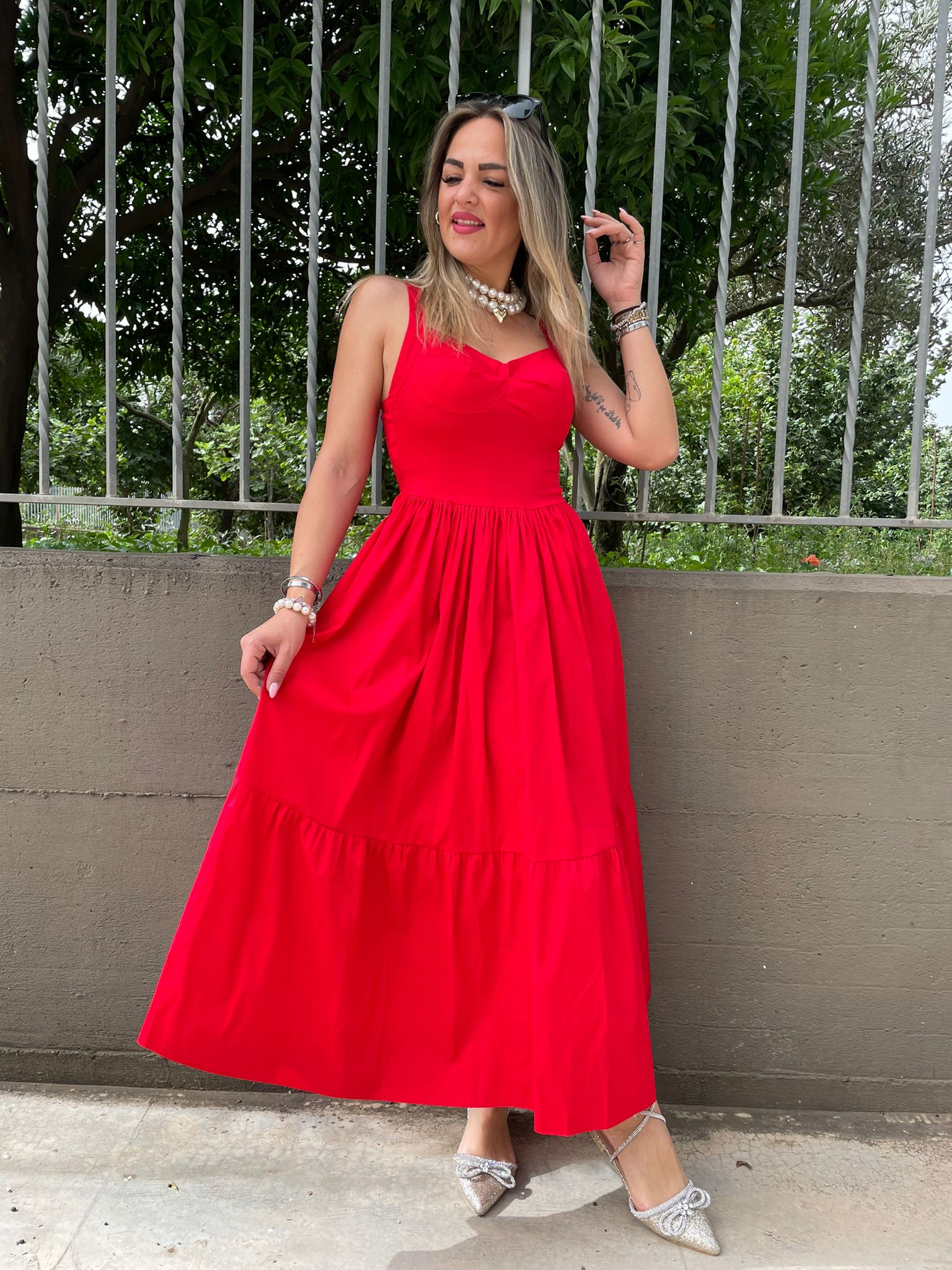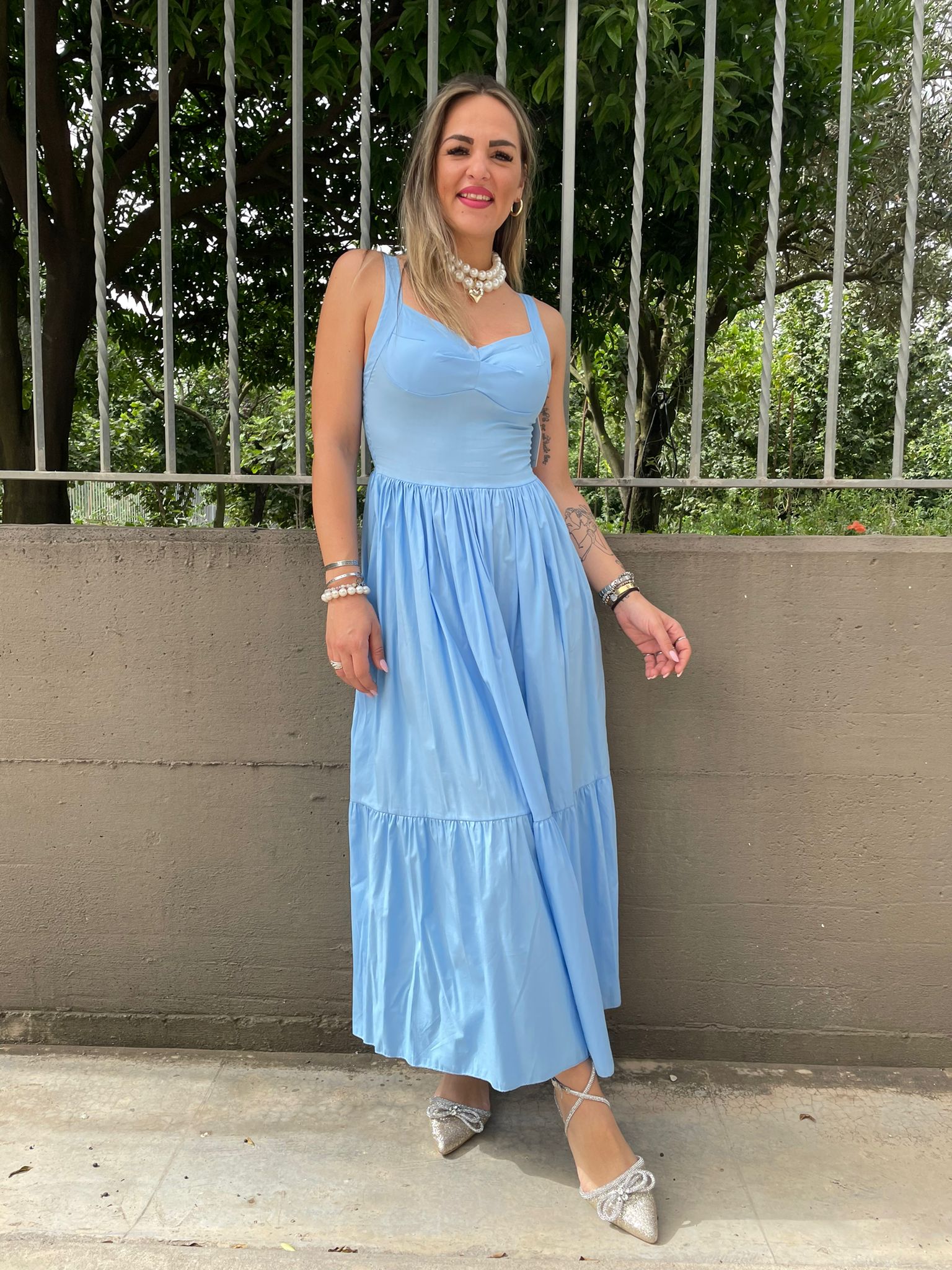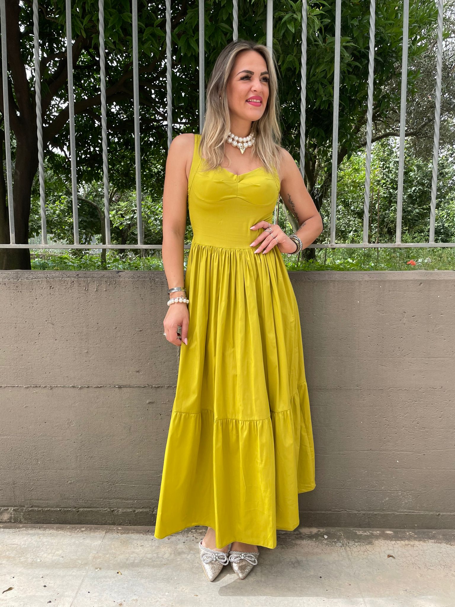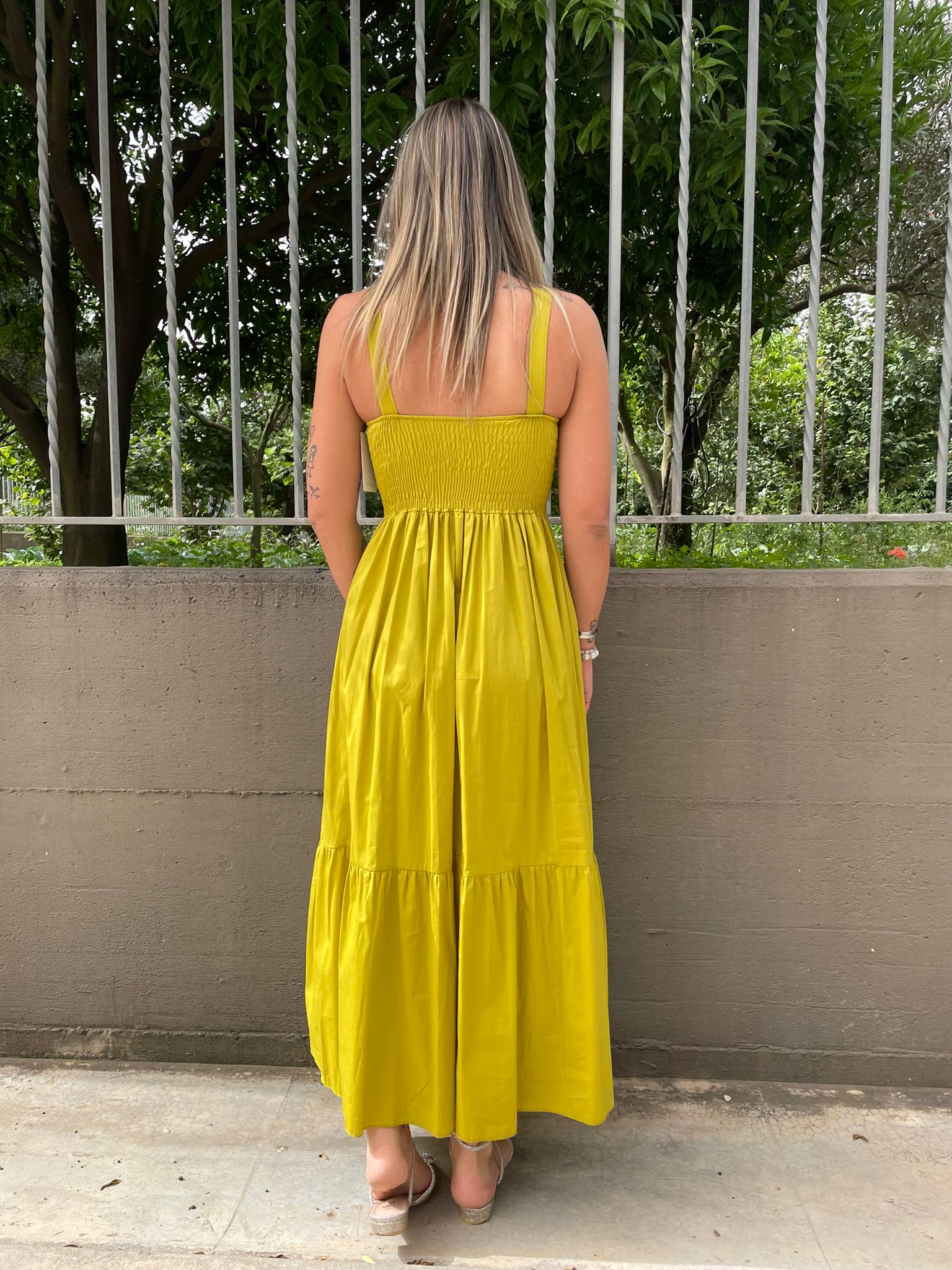- Vestito lungo tinta unita