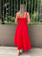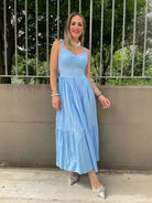 Vestito lungo in cotone con scollo a V