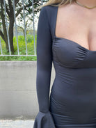 Vestito lungo in lycra con rouches ai polsi