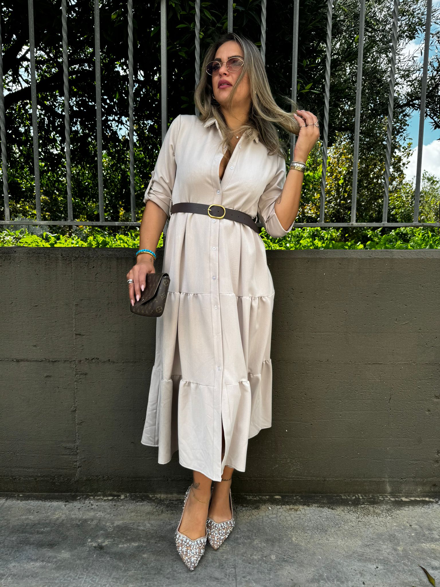 - Vestito lungo tinta unita