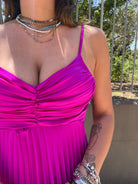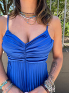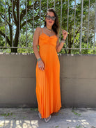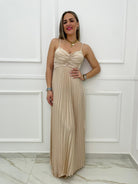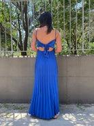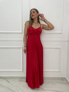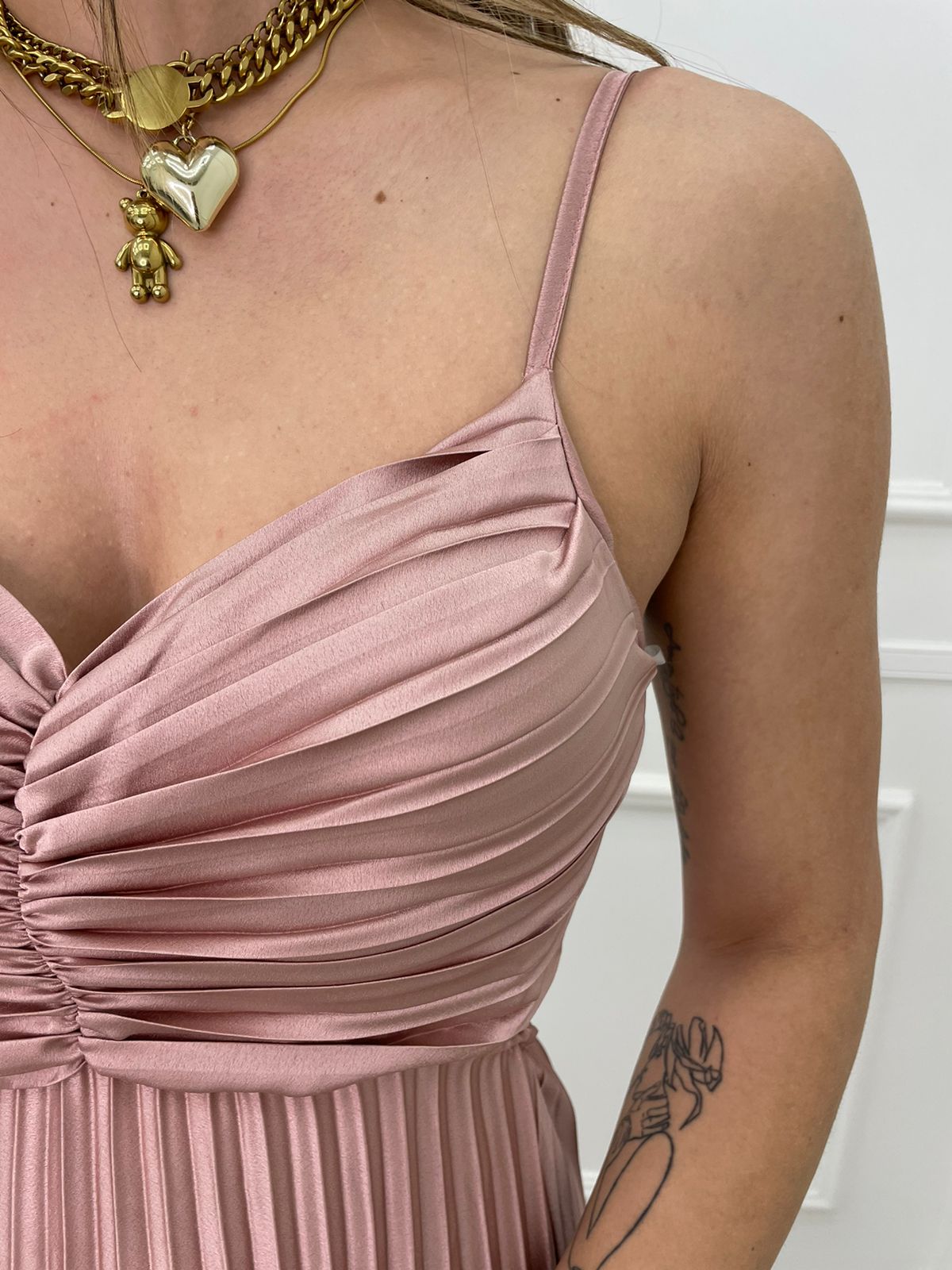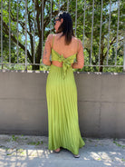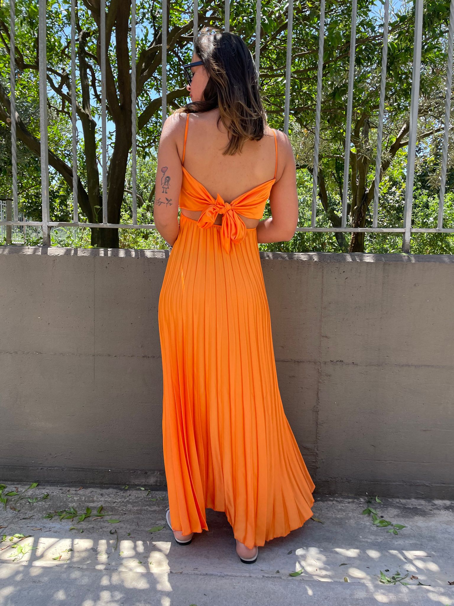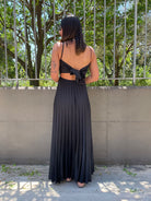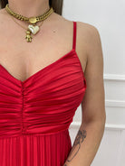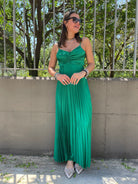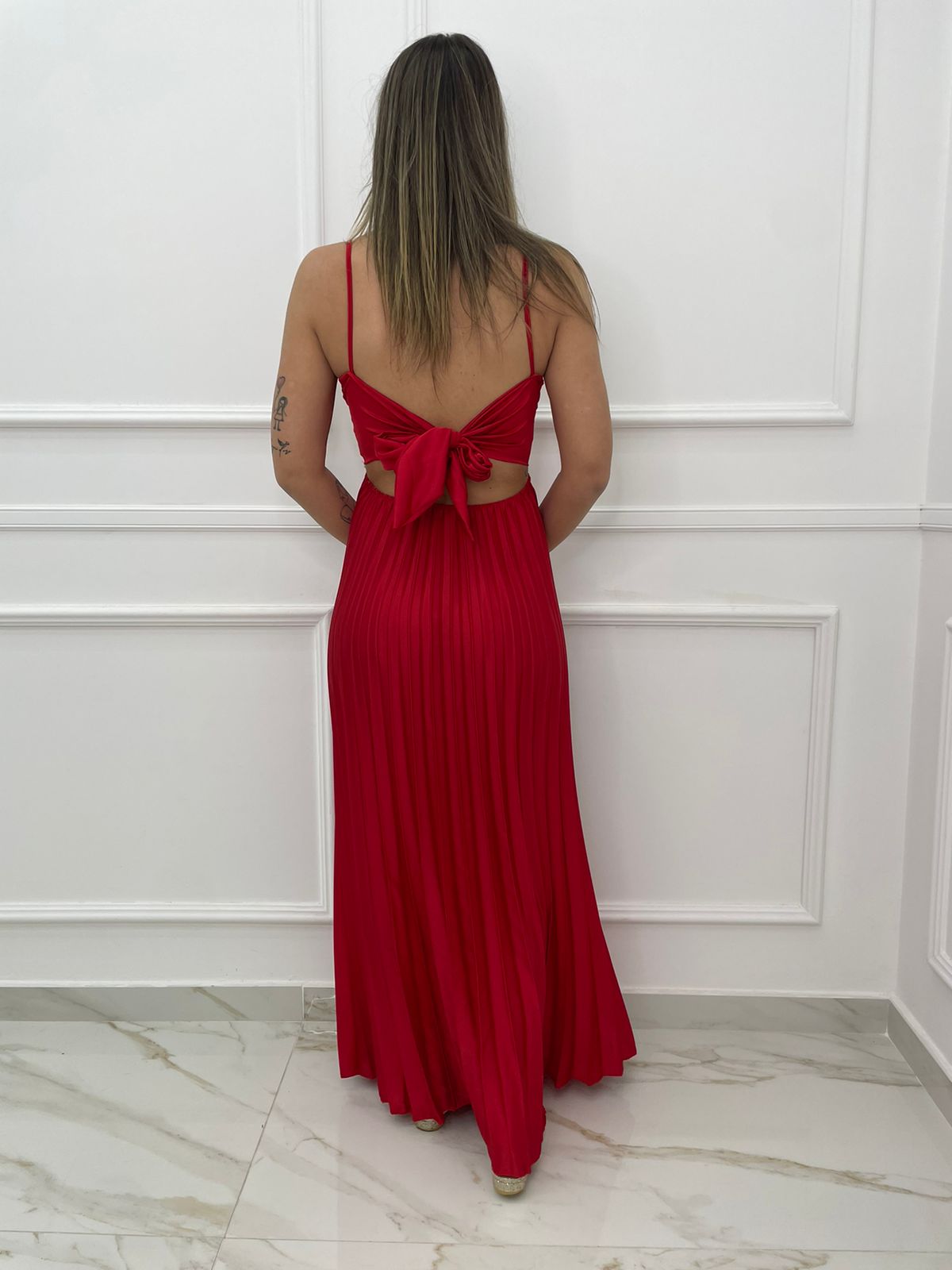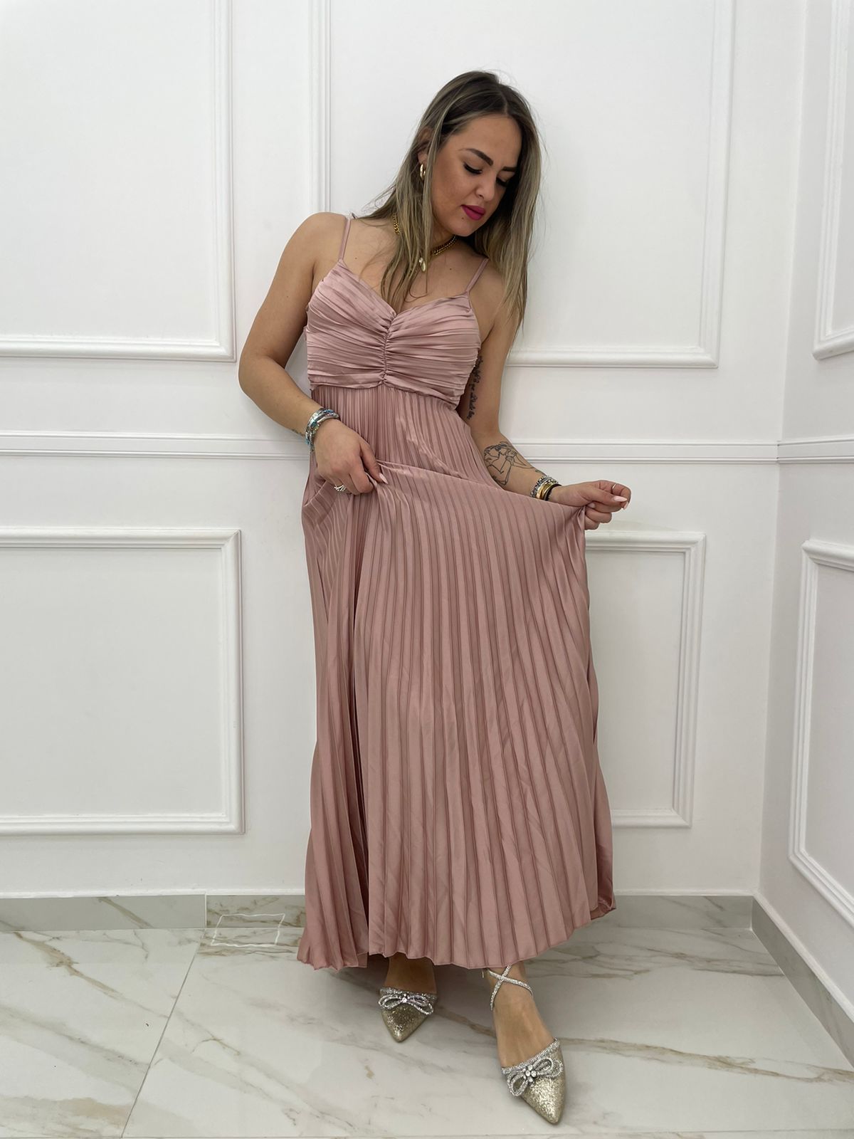 Vestito lungo in simil raso plissettato con fiocco dietro