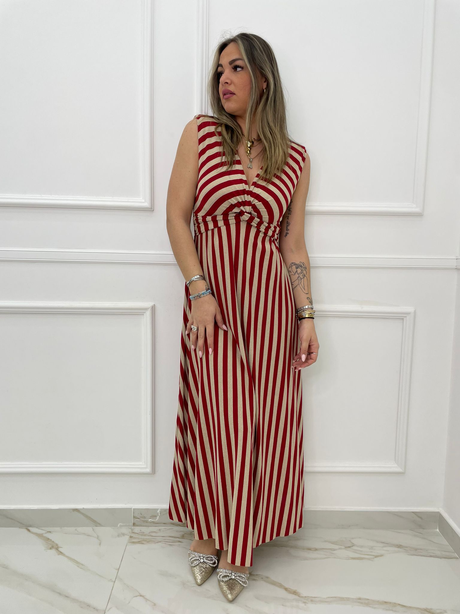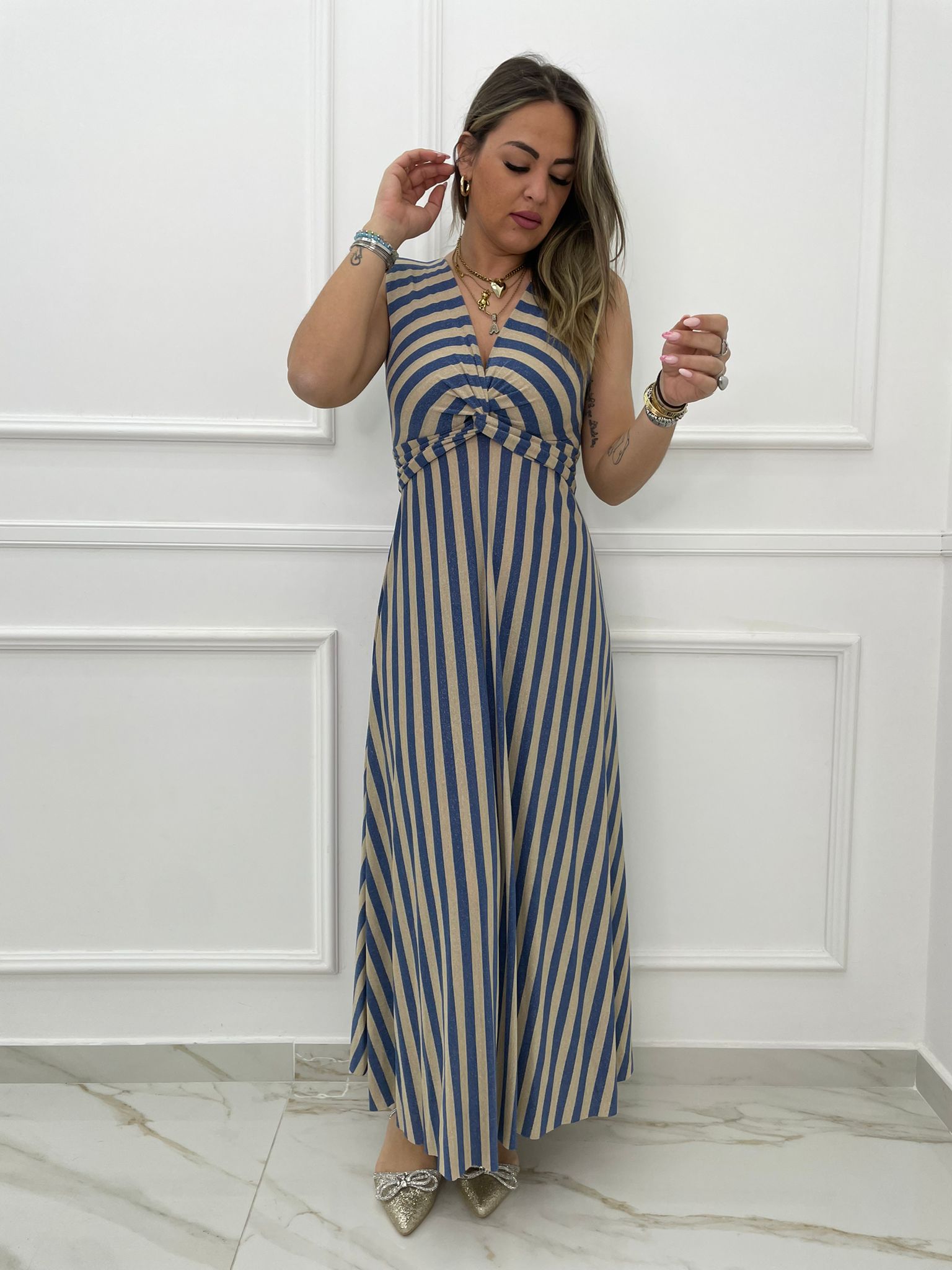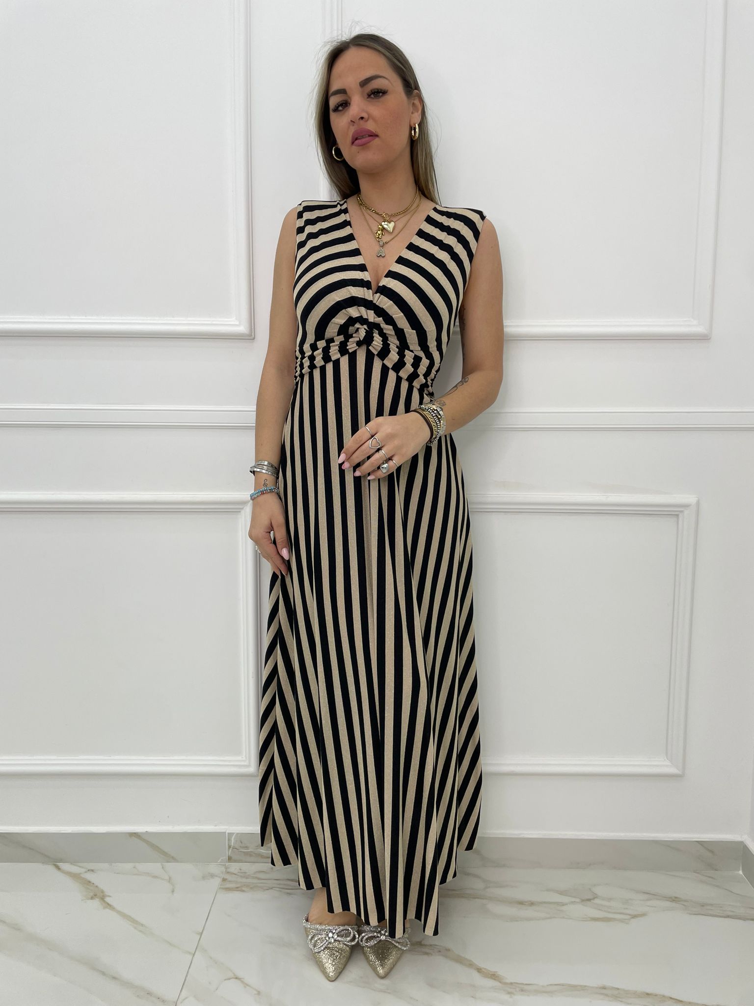 - Vestito lungo a righe