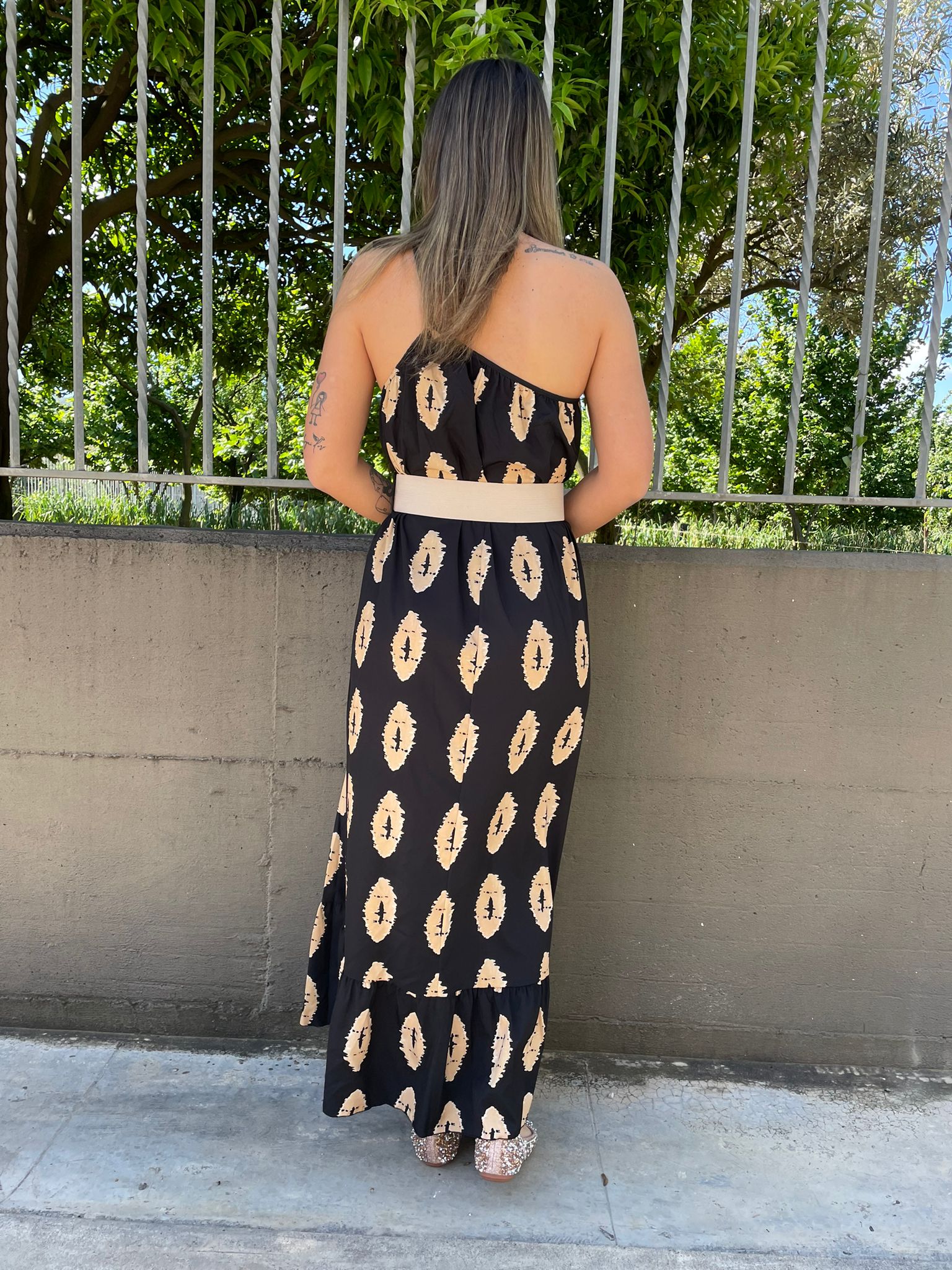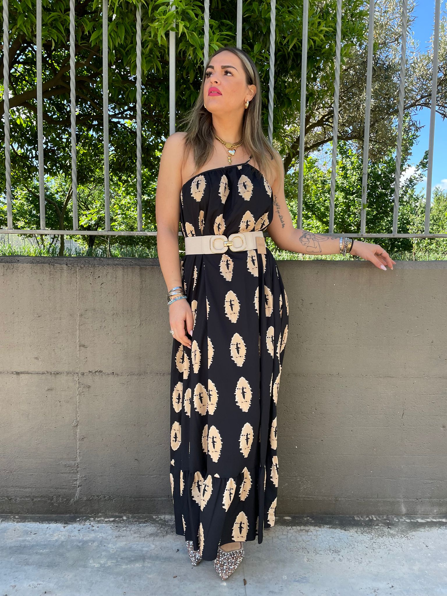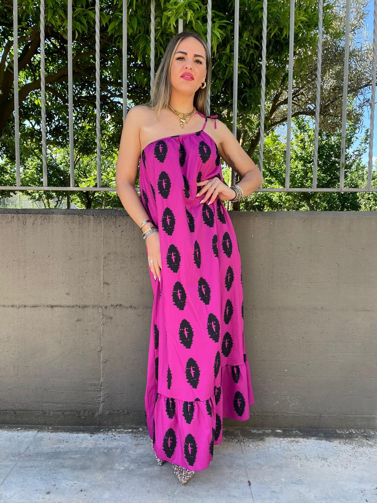 Vestito lungo mono spalla fantasia astratta