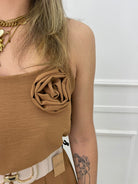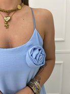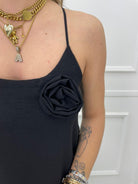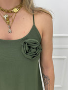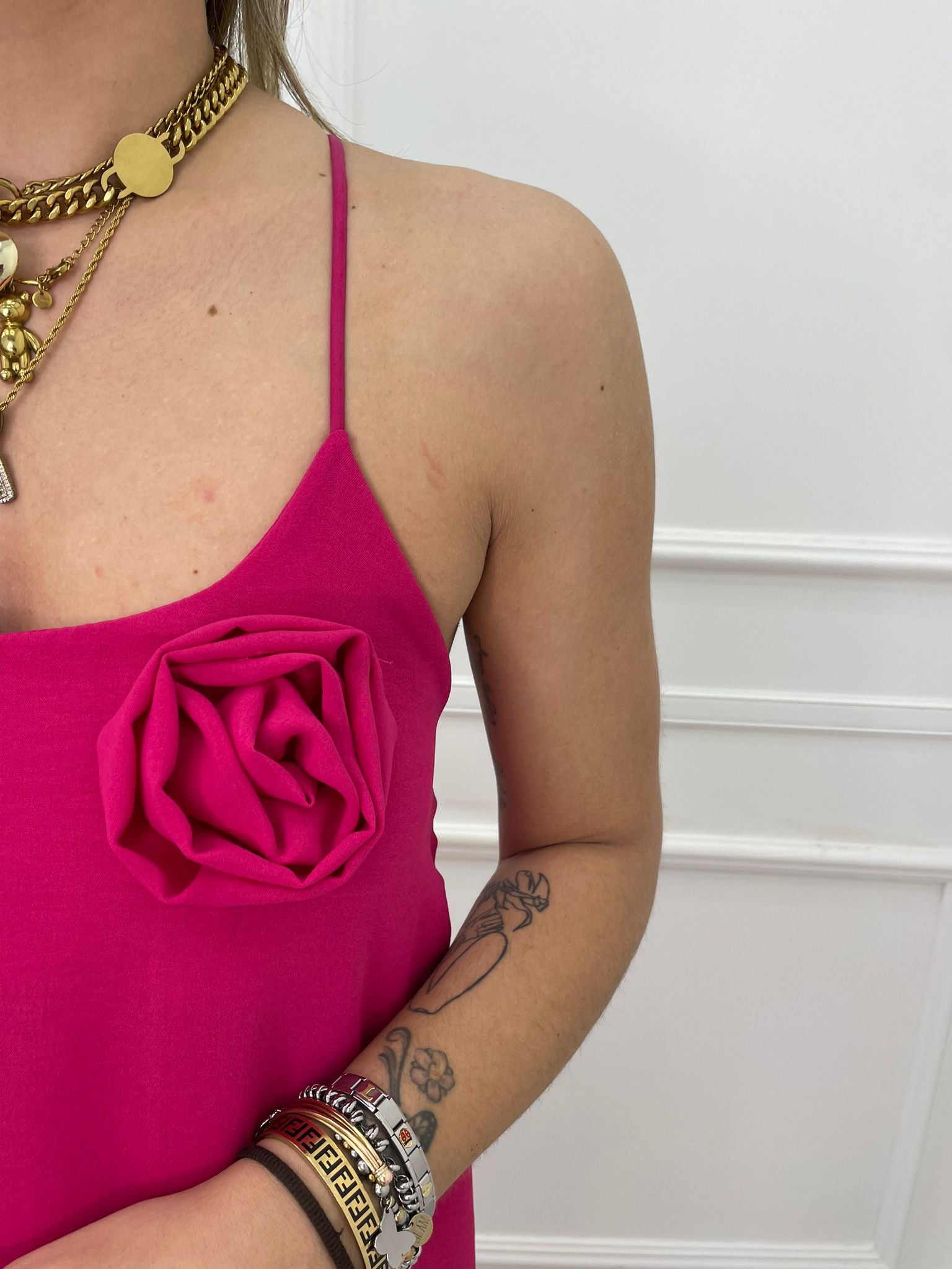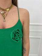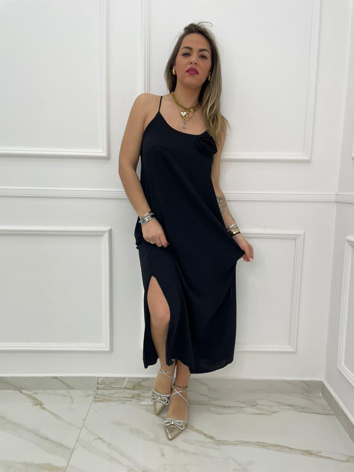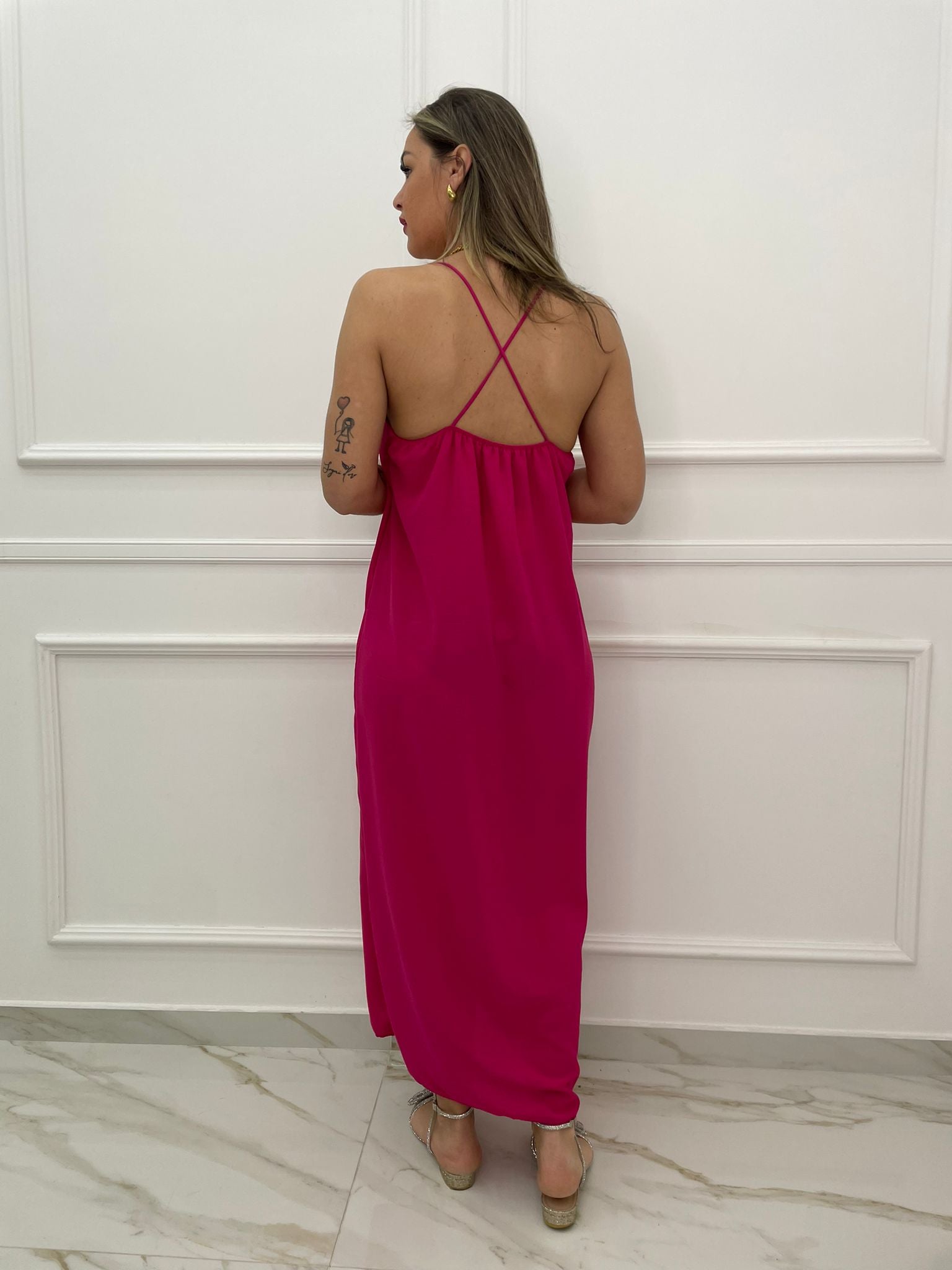 Vestito lungo tinta unita con rosa