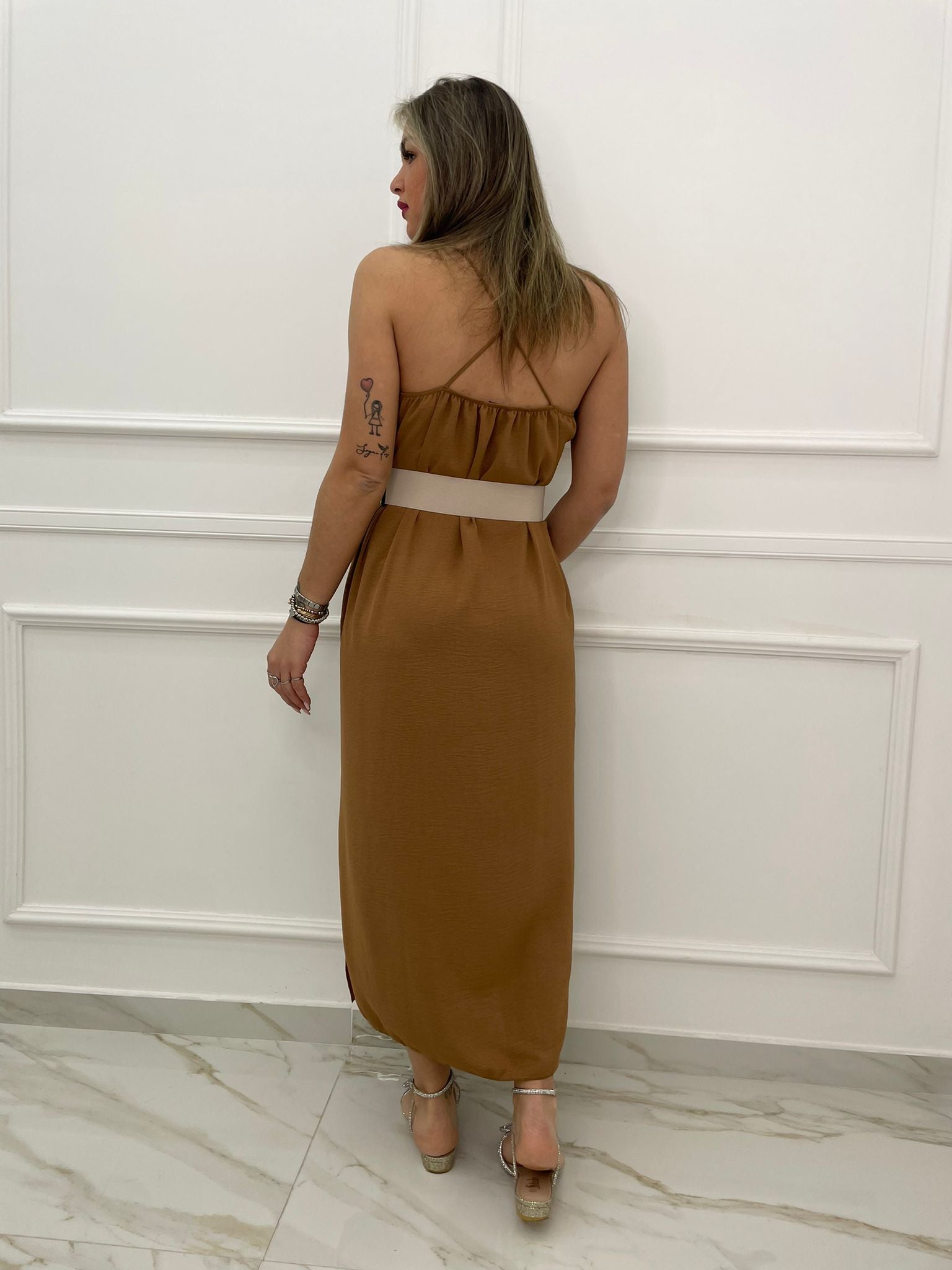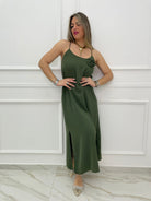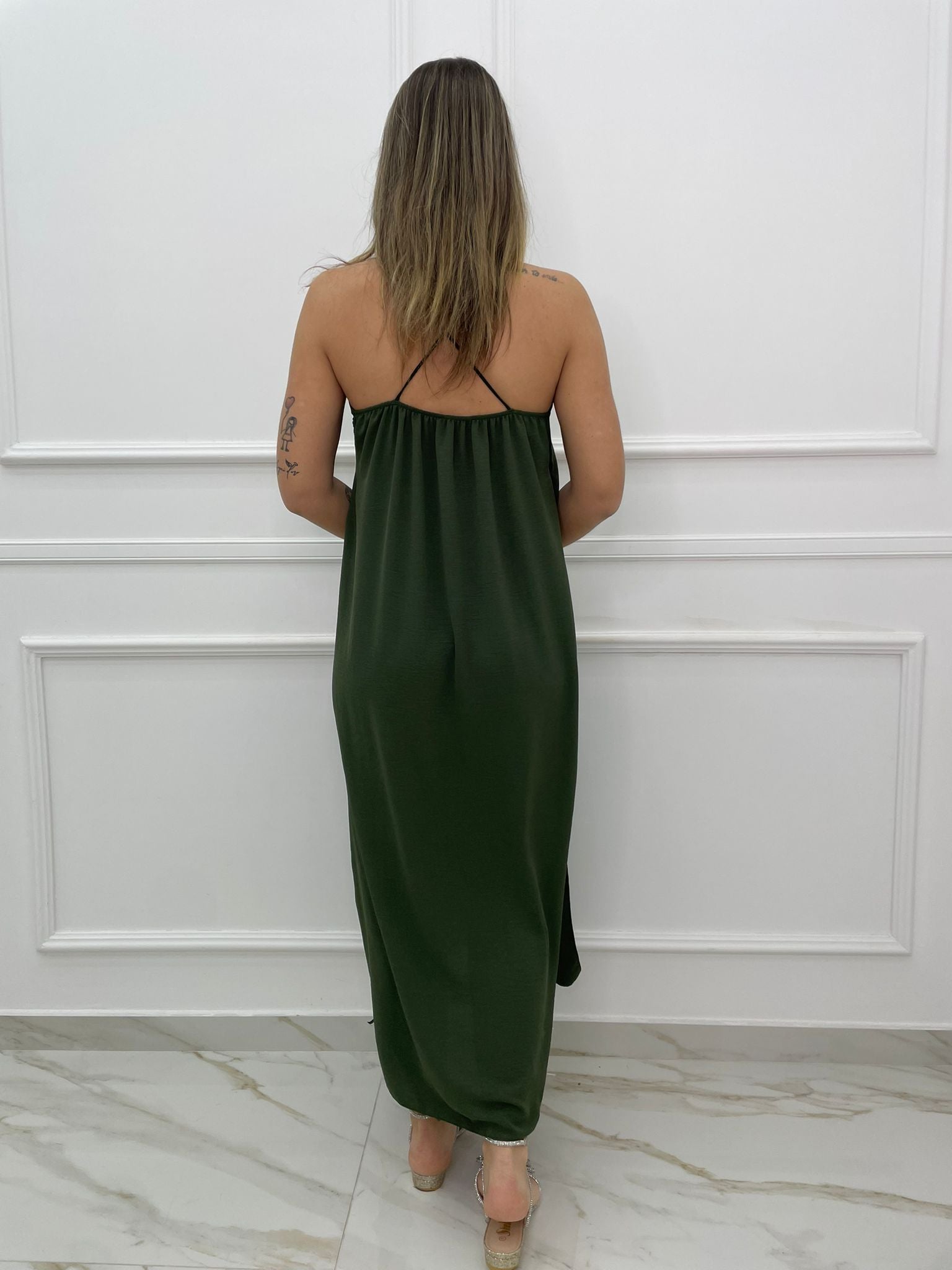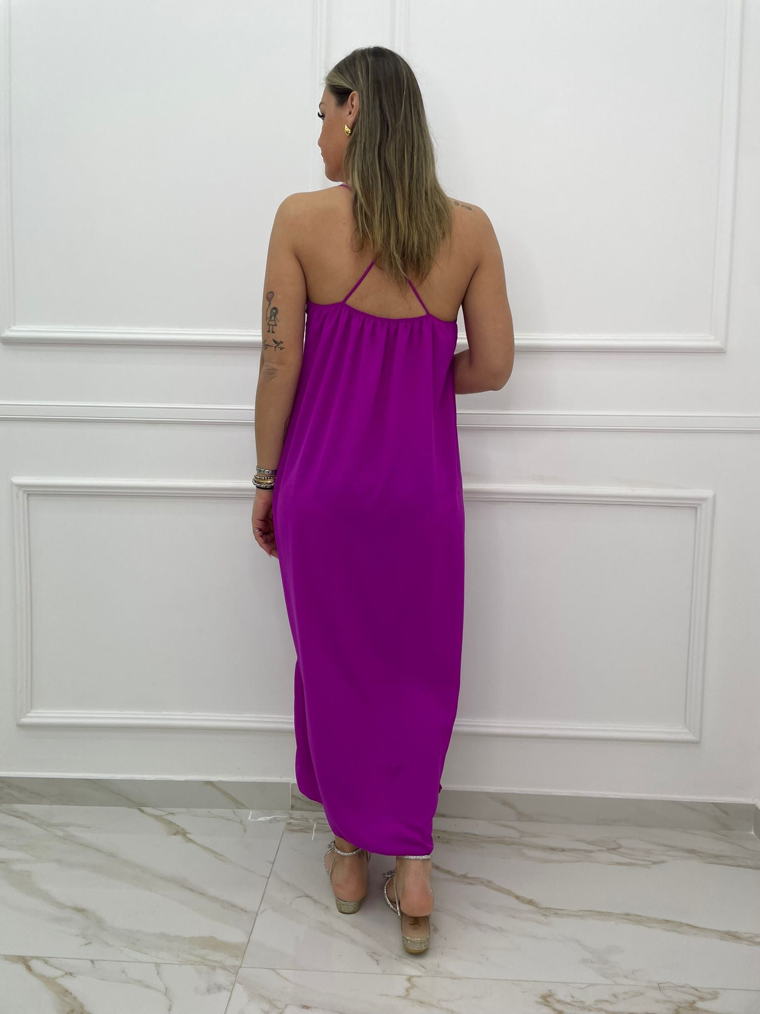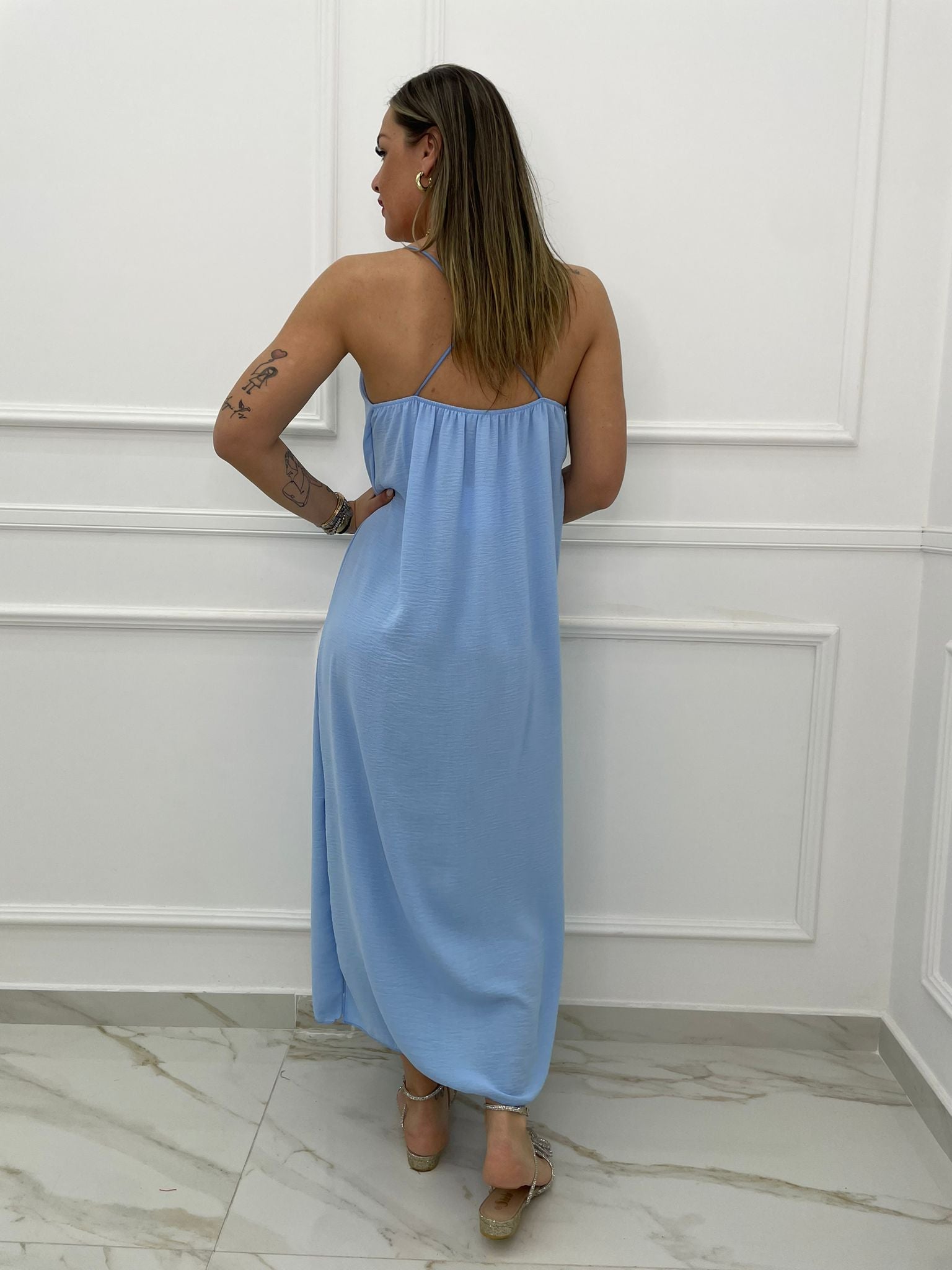 - Vestito lungo tinta unita