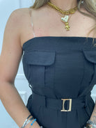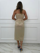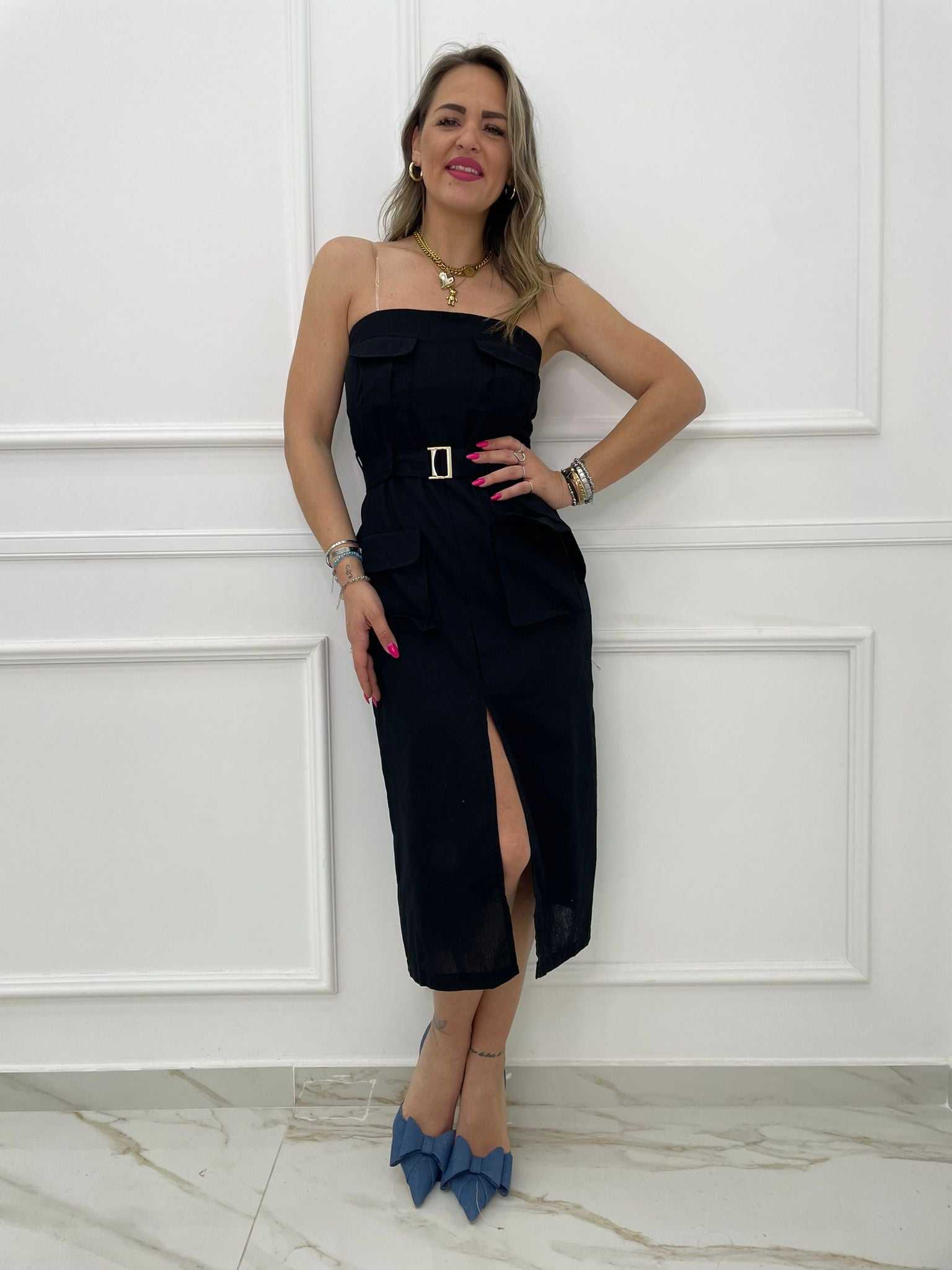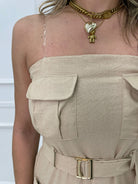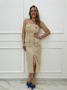 Vestito midi in lino con tasconi e cintura