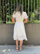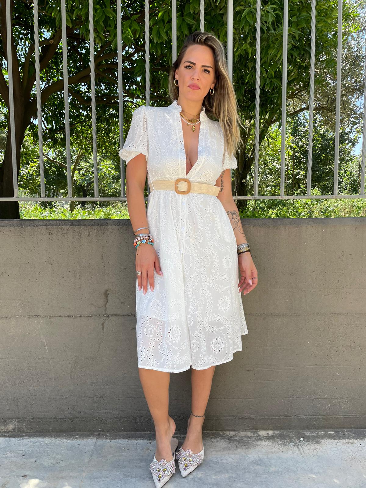 Vestito midi in pizzo san gallo con maniche a sbuffo