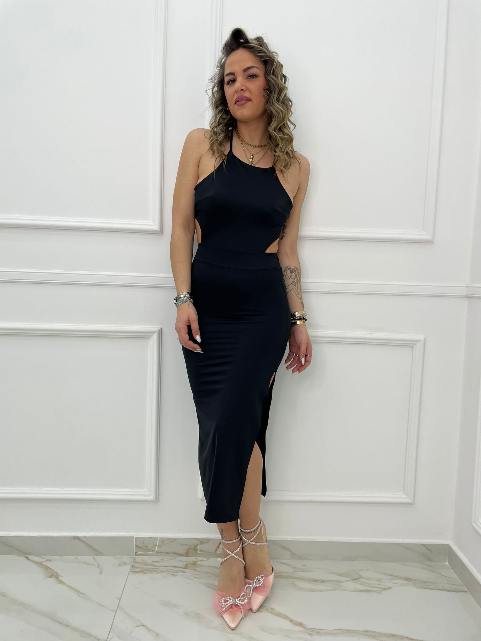 - Vestito midi tinta unita