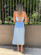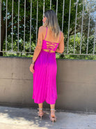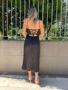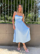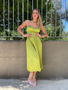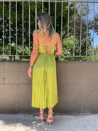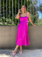 Vestito midi plissettato con scollo a cuore
