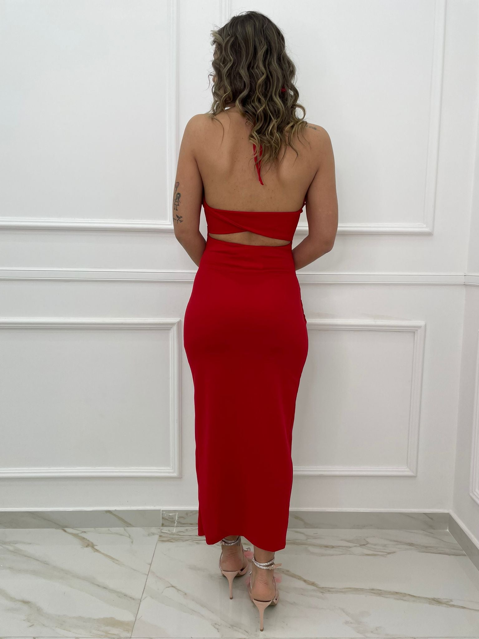Vestito scollo americana con schiena scoperta