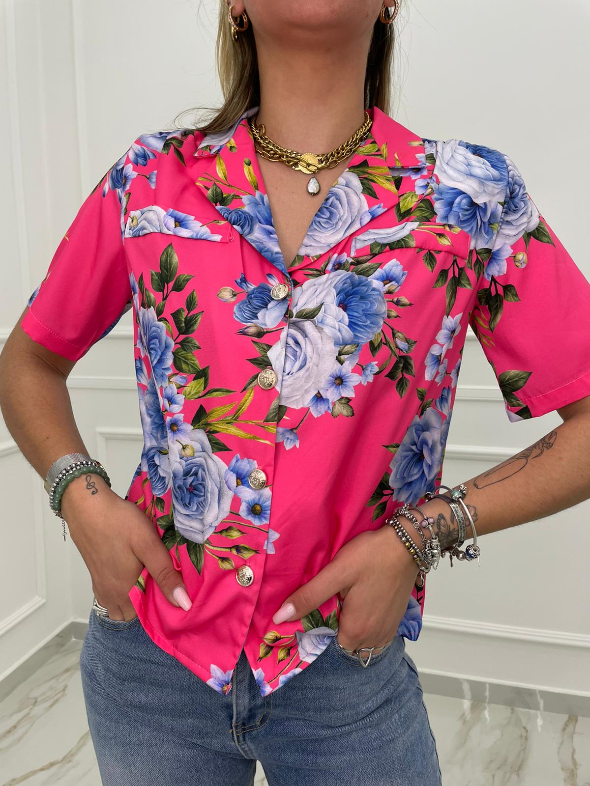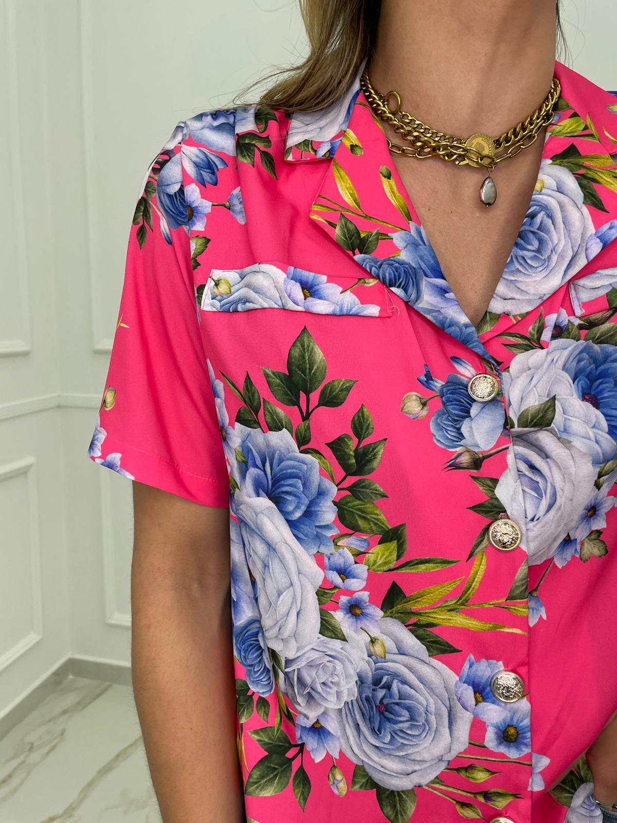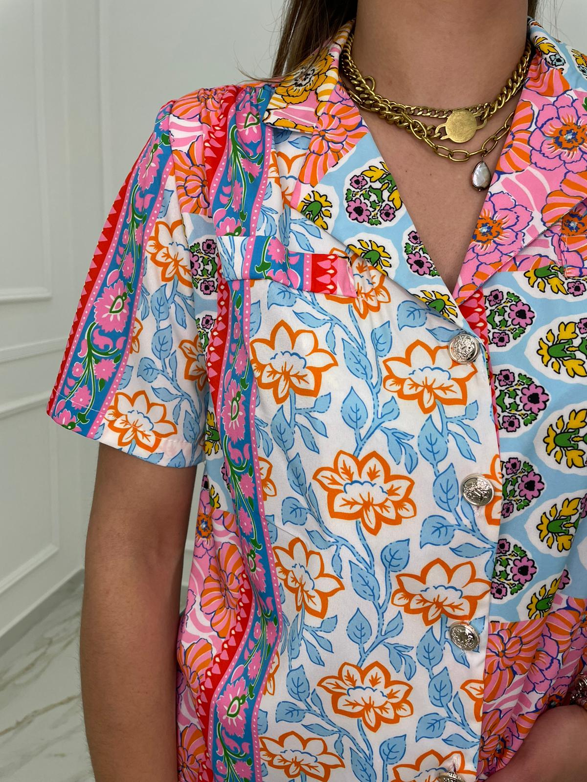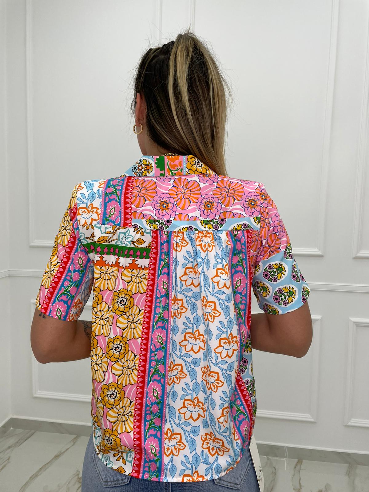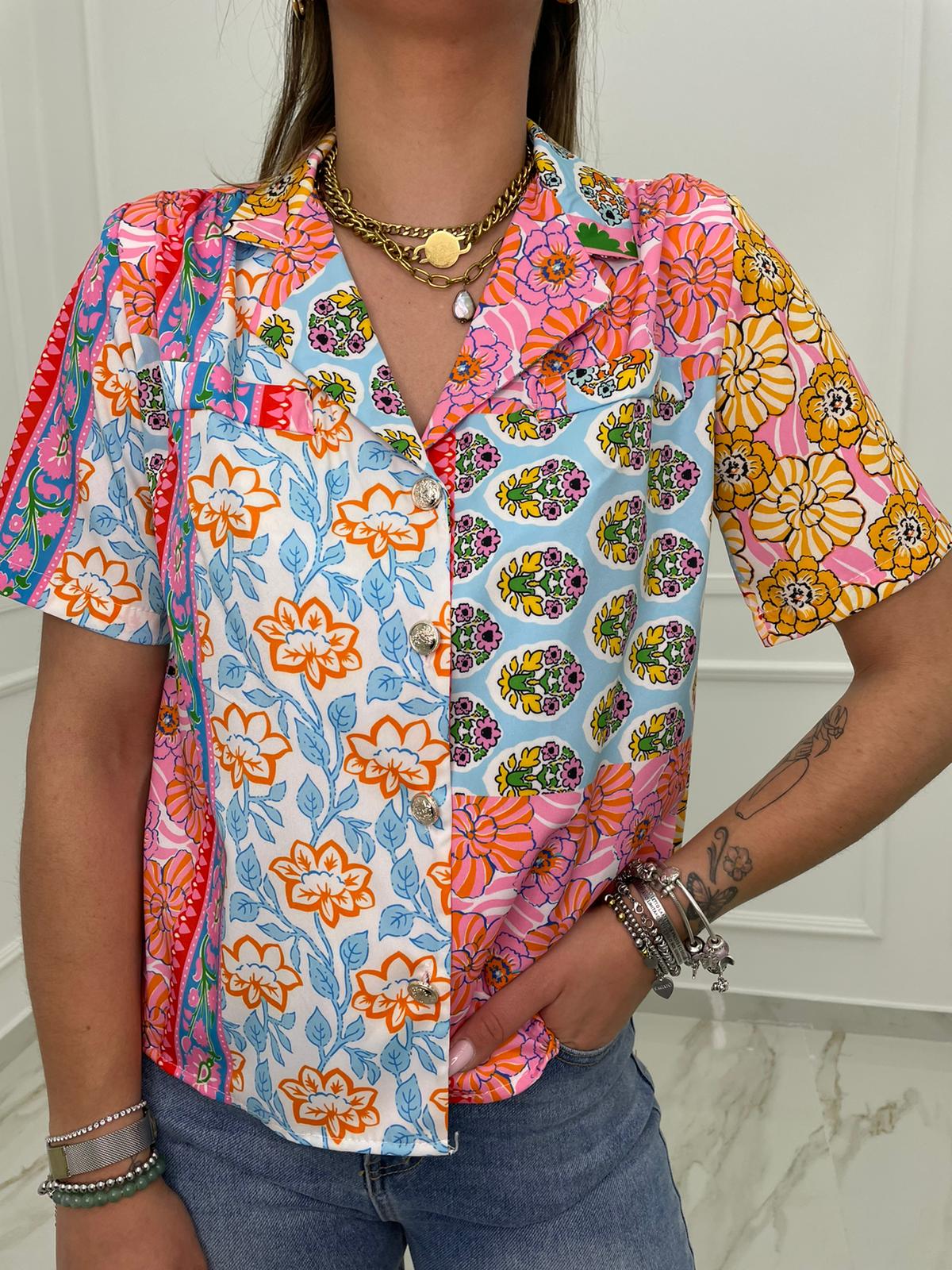 Camicia a fantasia mezza manica con spalline