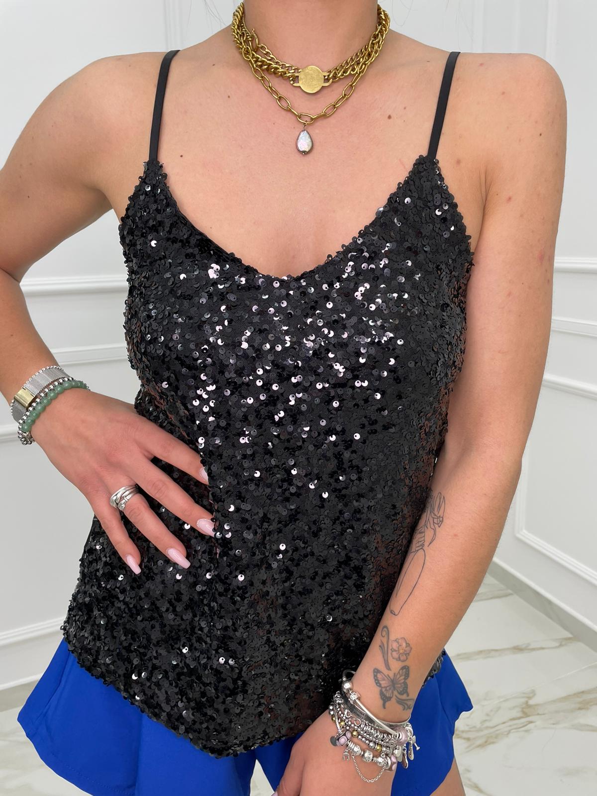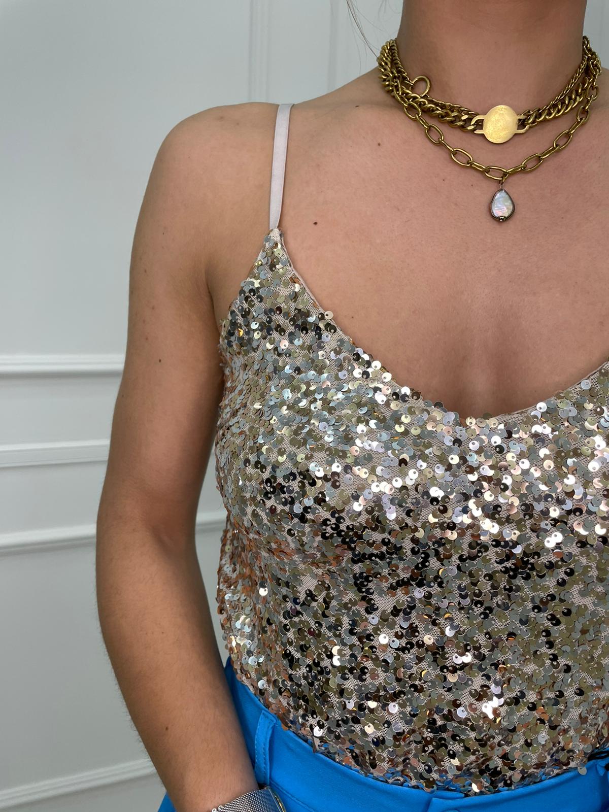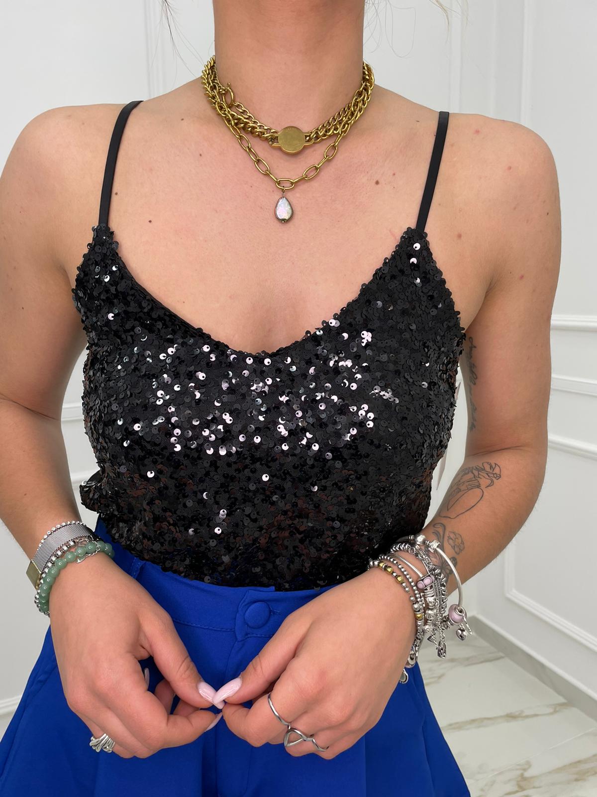 Top in paillettes tinta unita