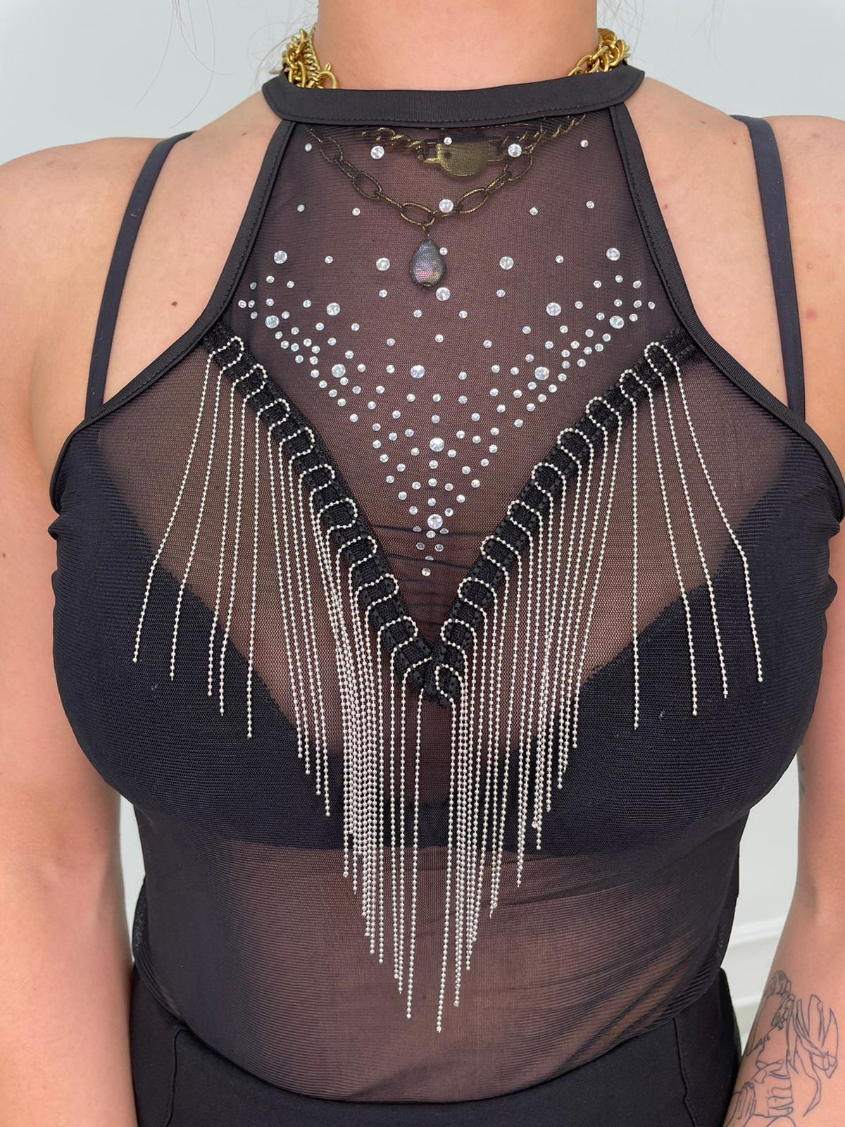 Body velato con frange argento