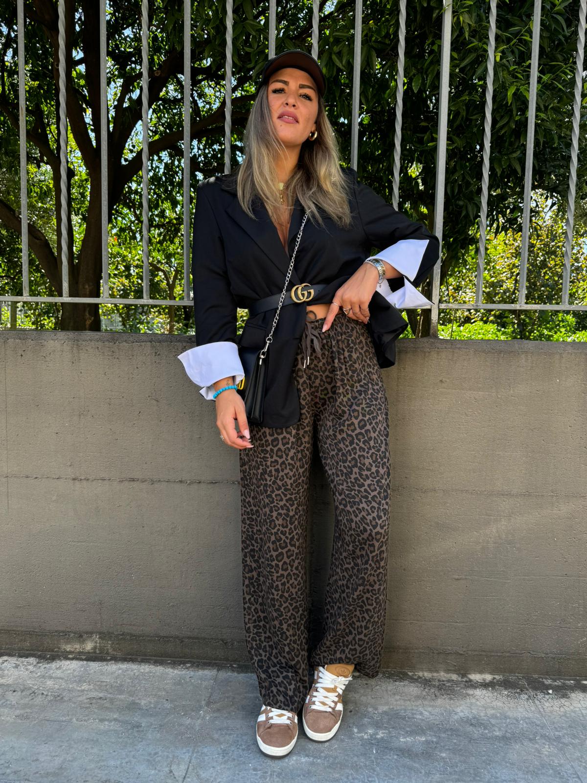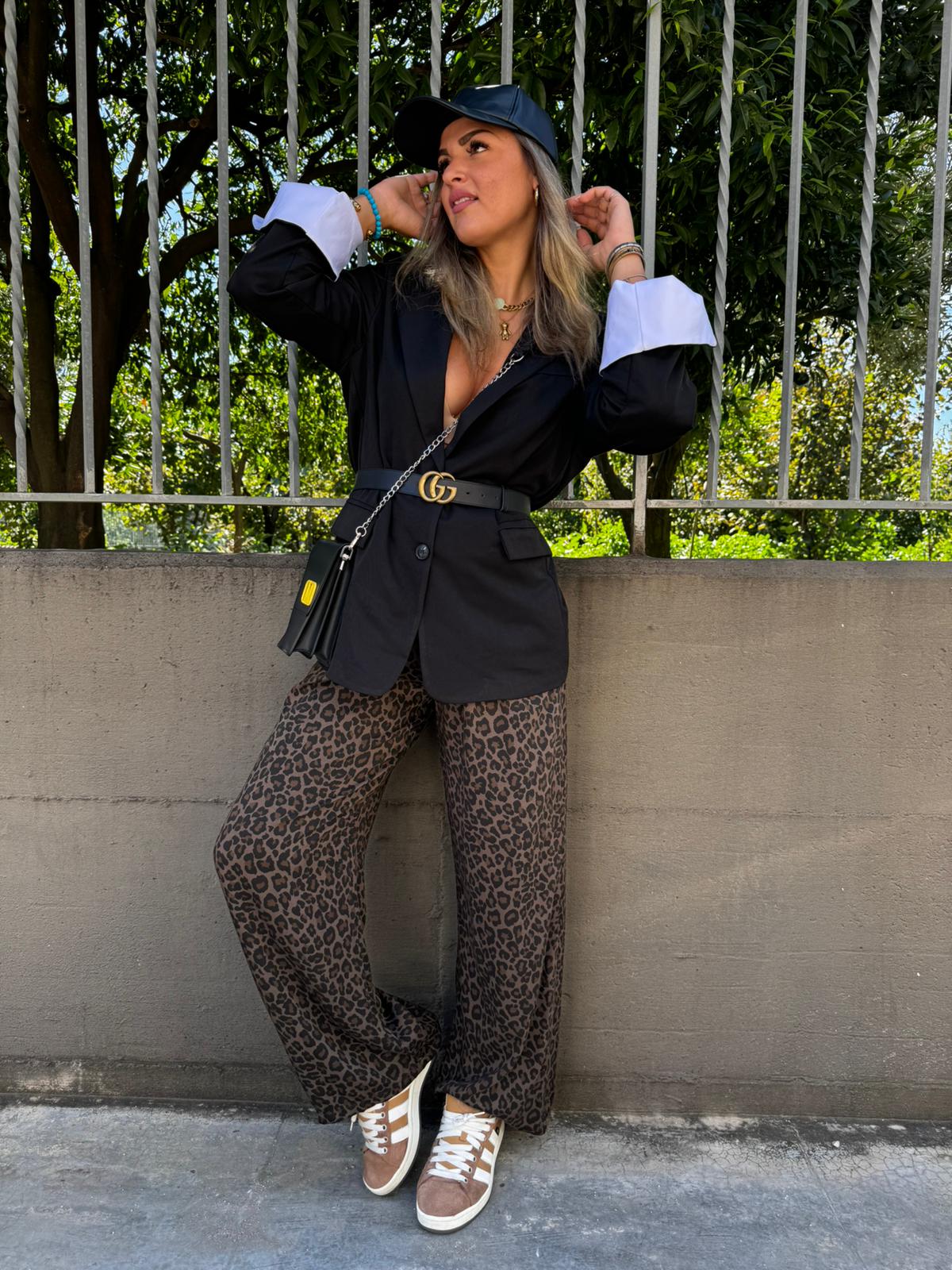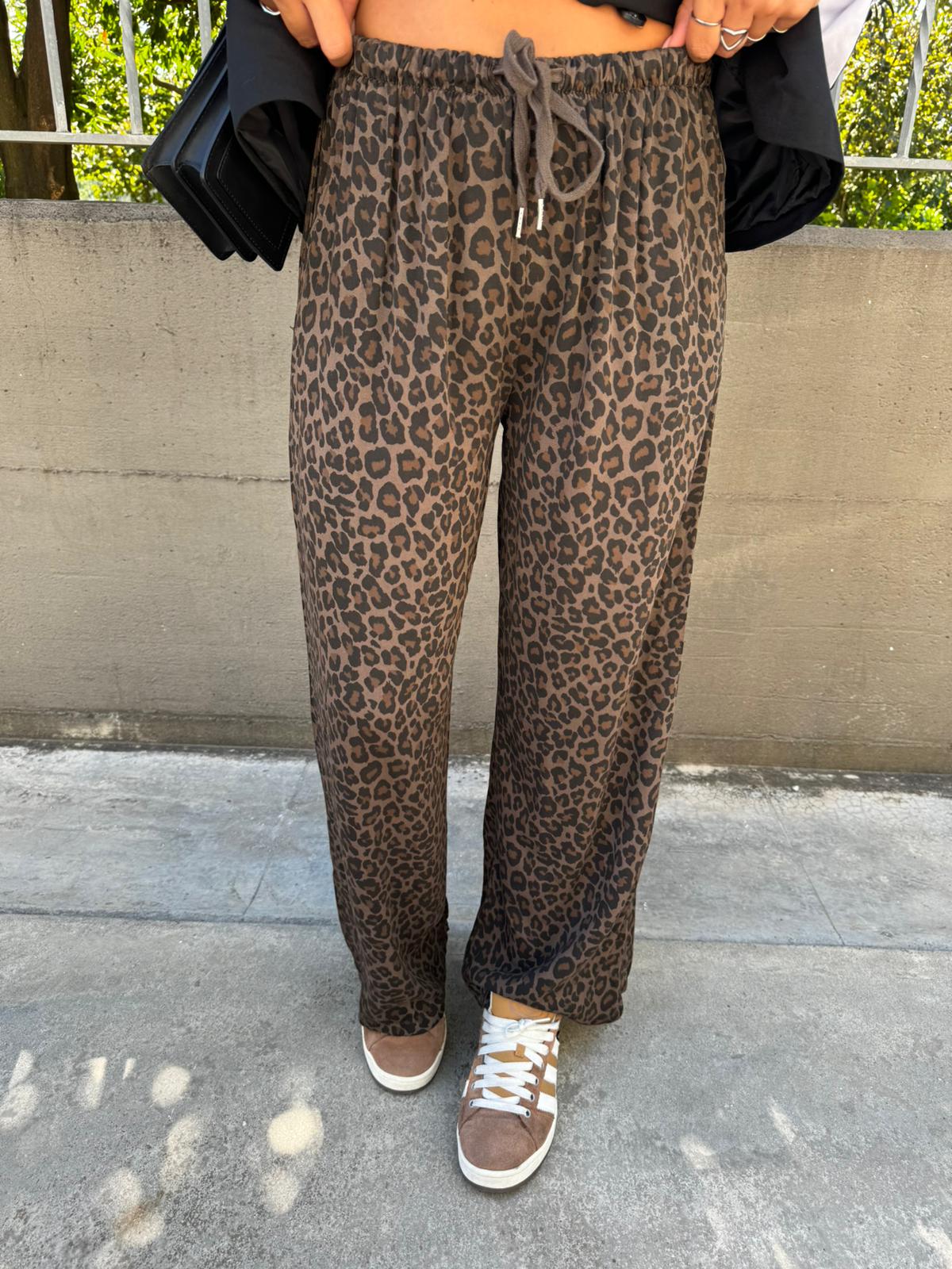 Pantalone palazzo fantasia animalier con elastico in vita
