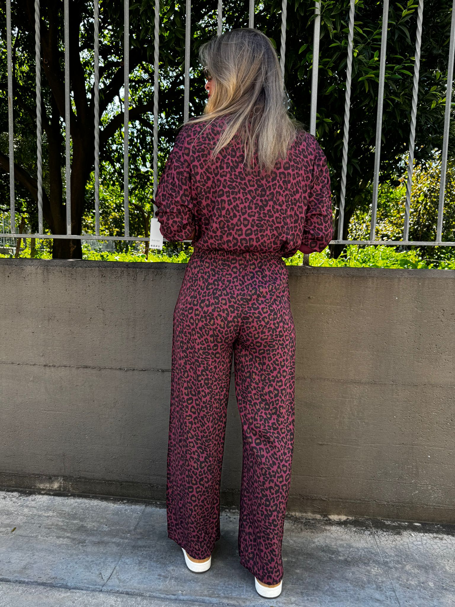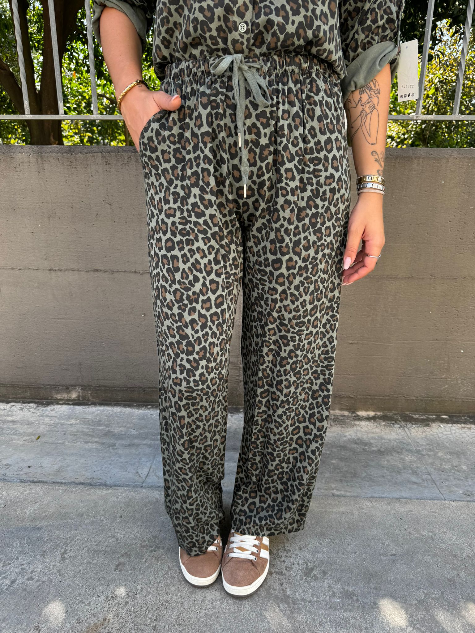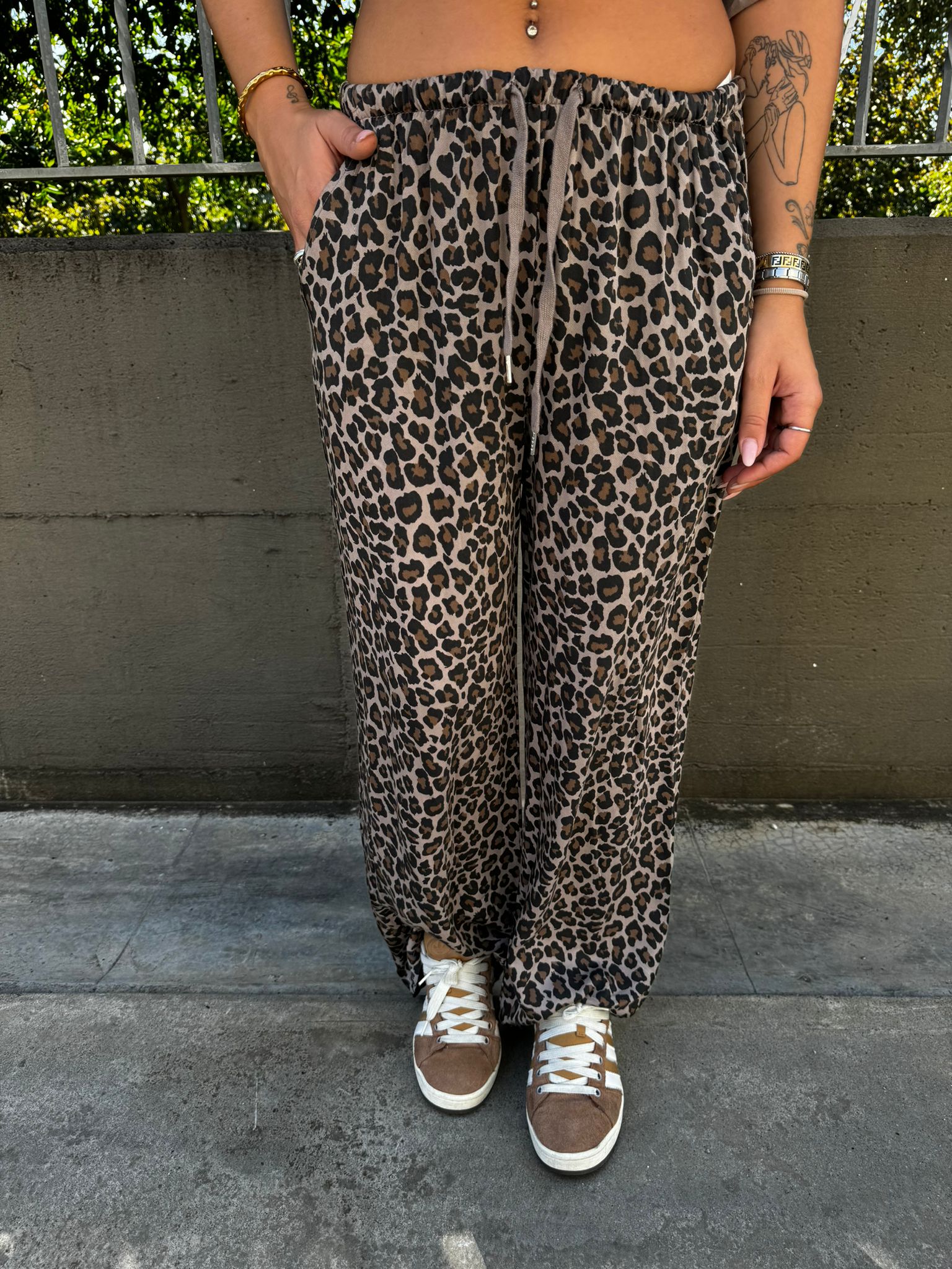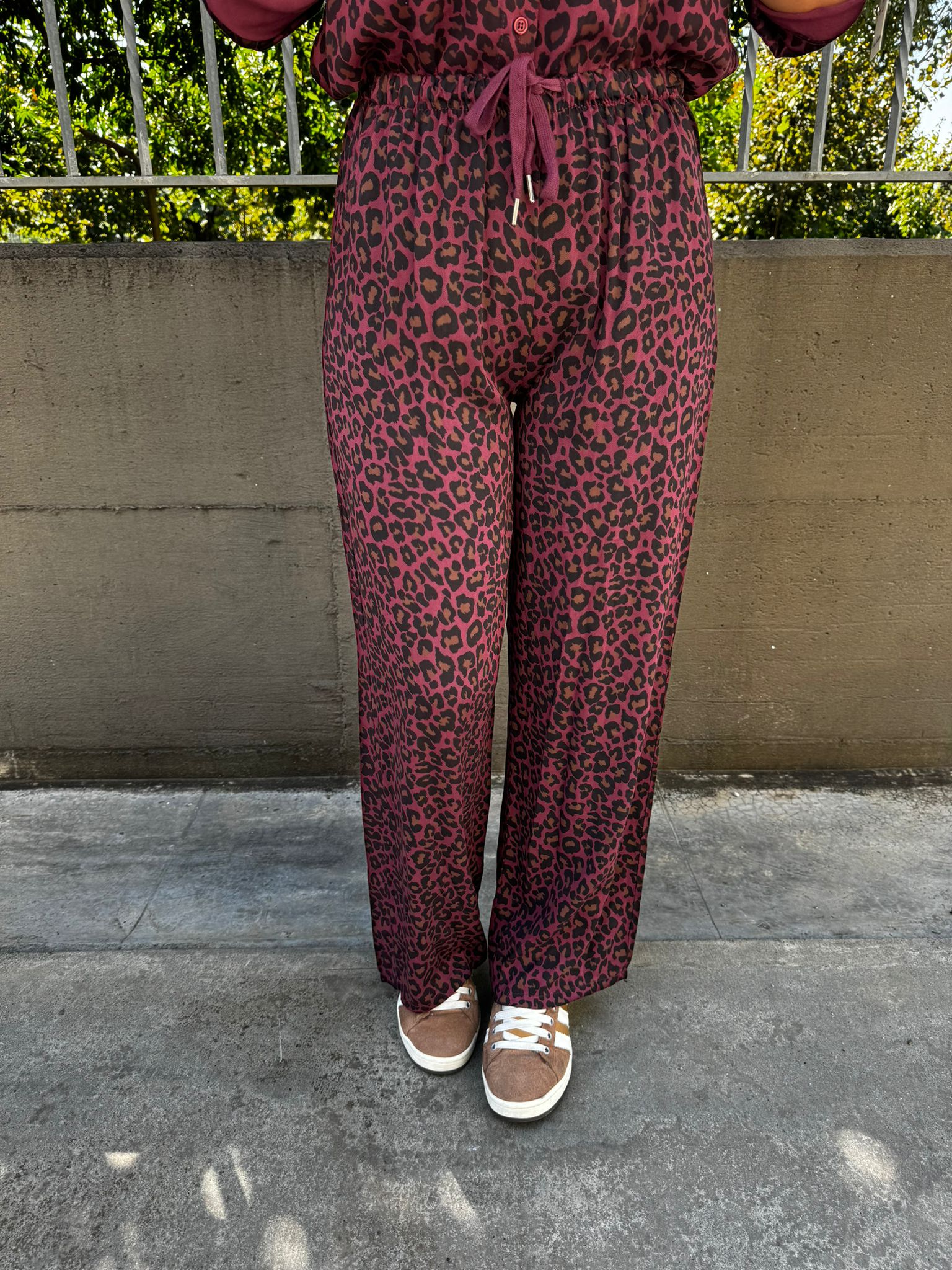 Pantalone palazzo fantasia animalier con elastico in vita