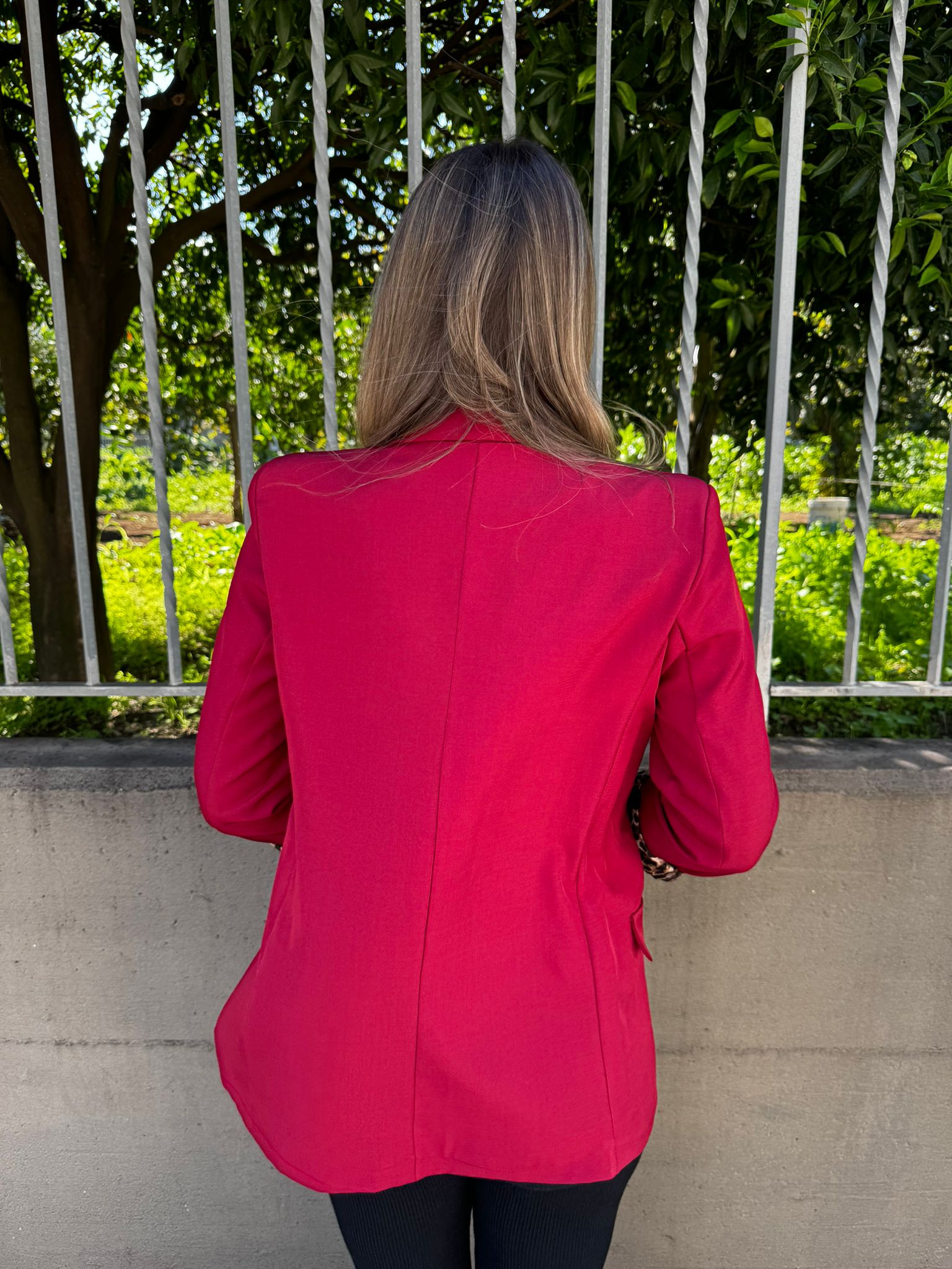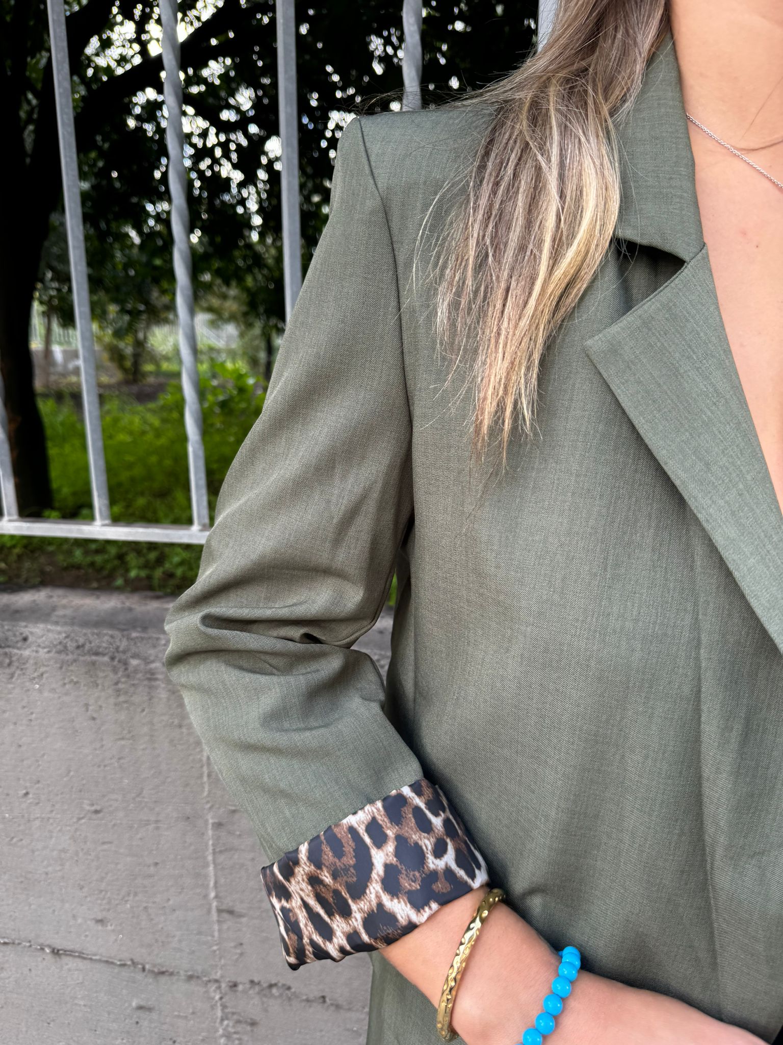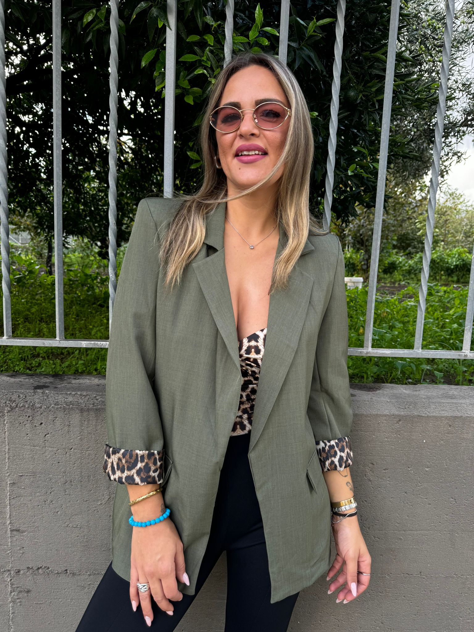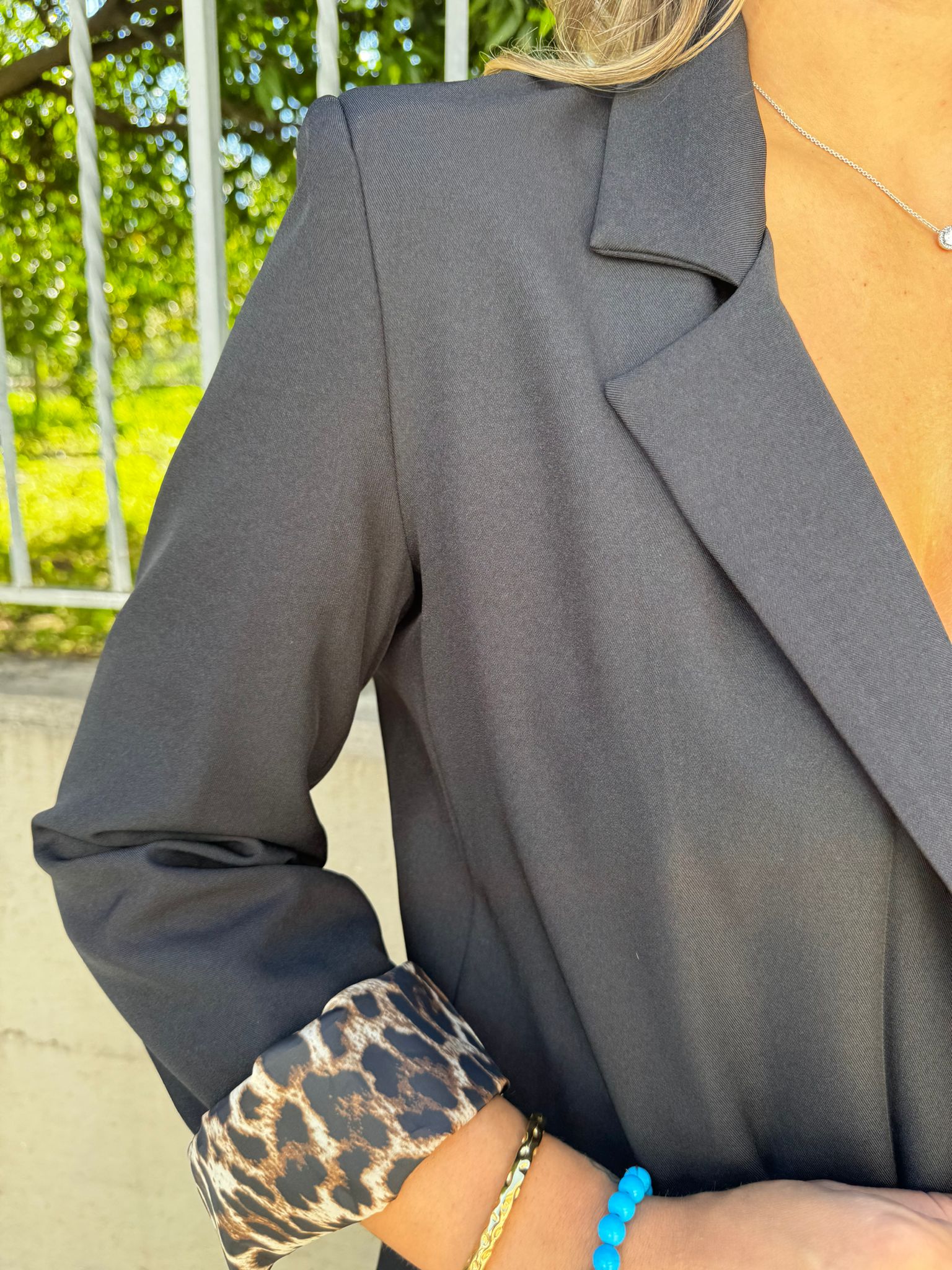 Giacca tinta unita con risvolto leopardato