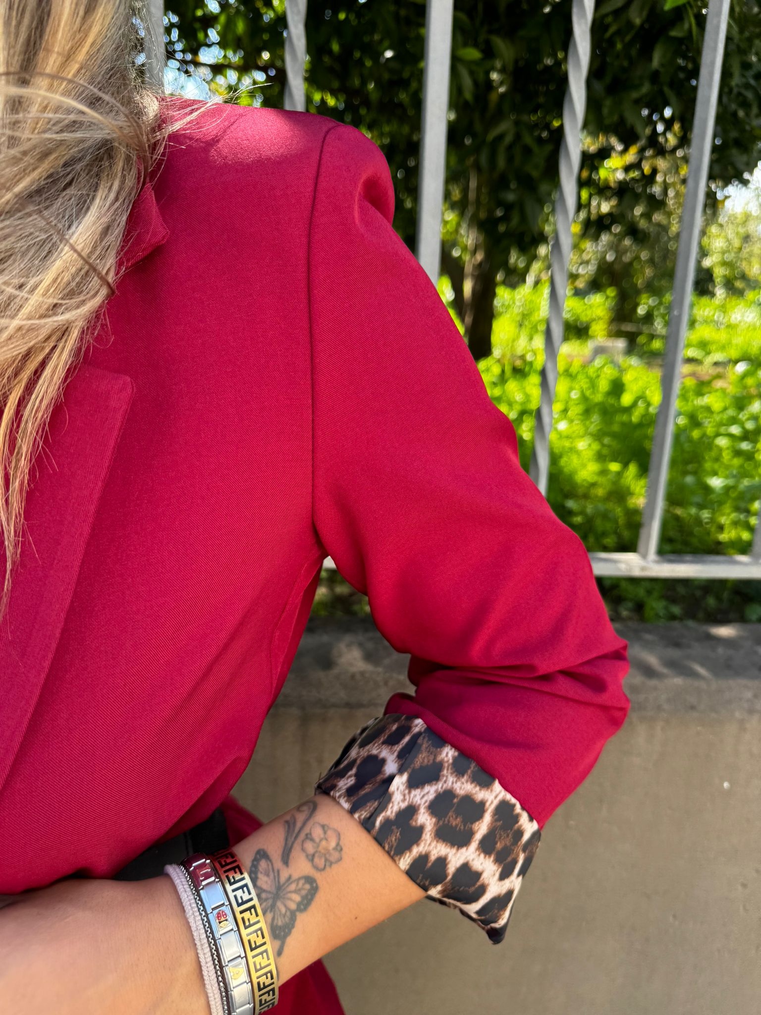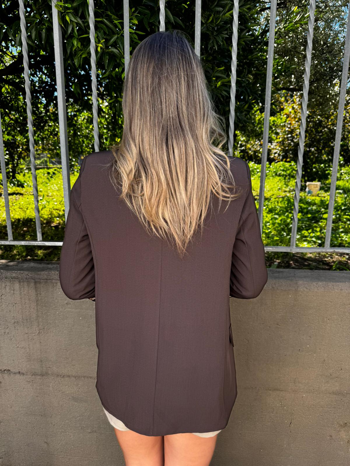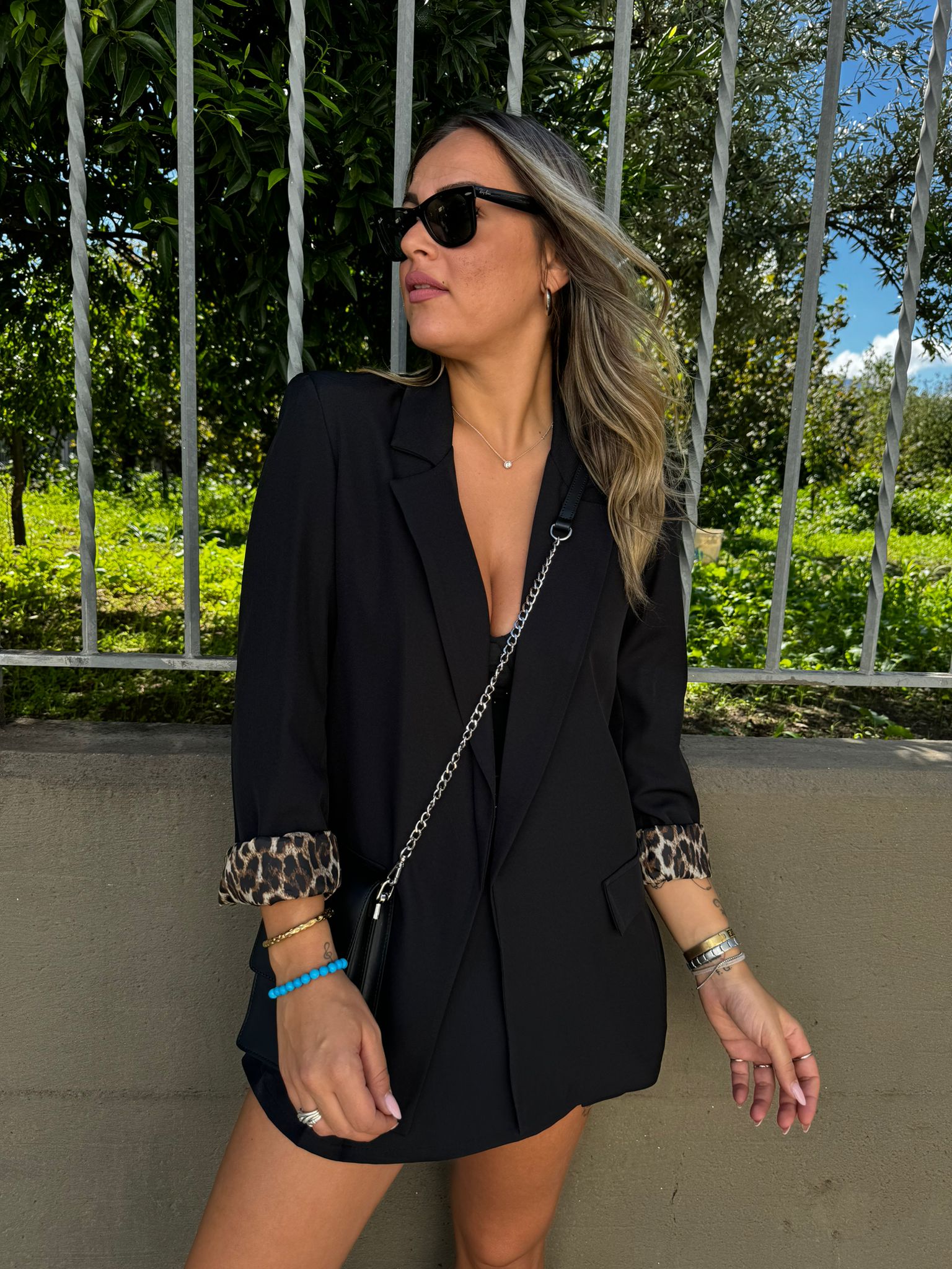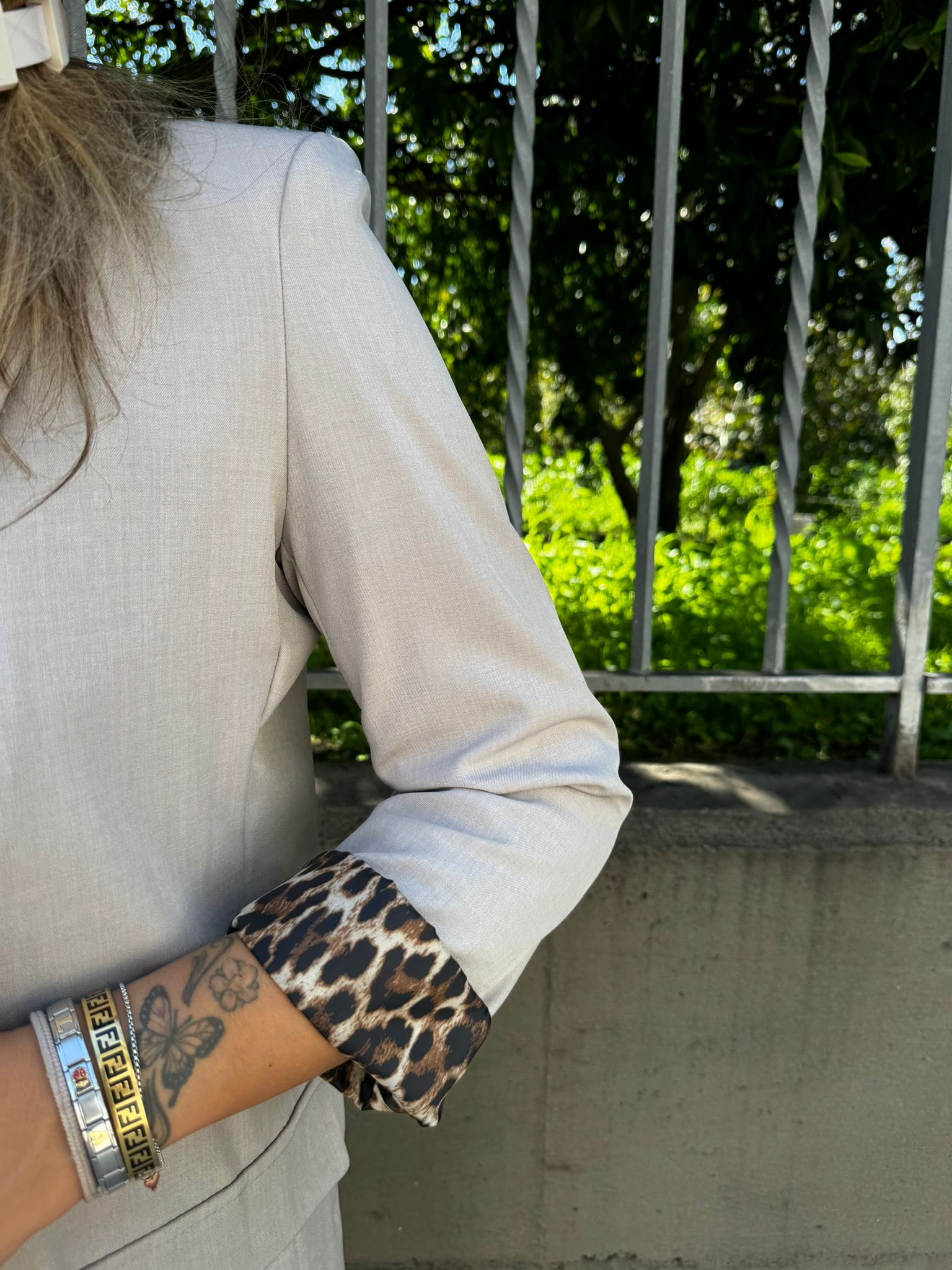 Giacca tinta unita con risvolto leopardato
