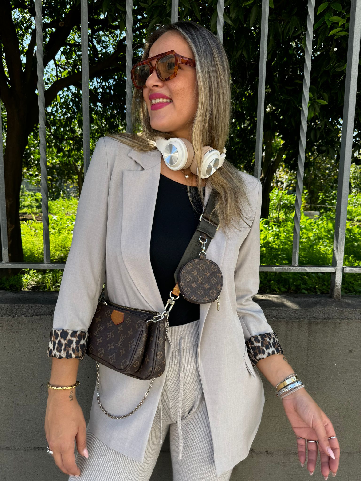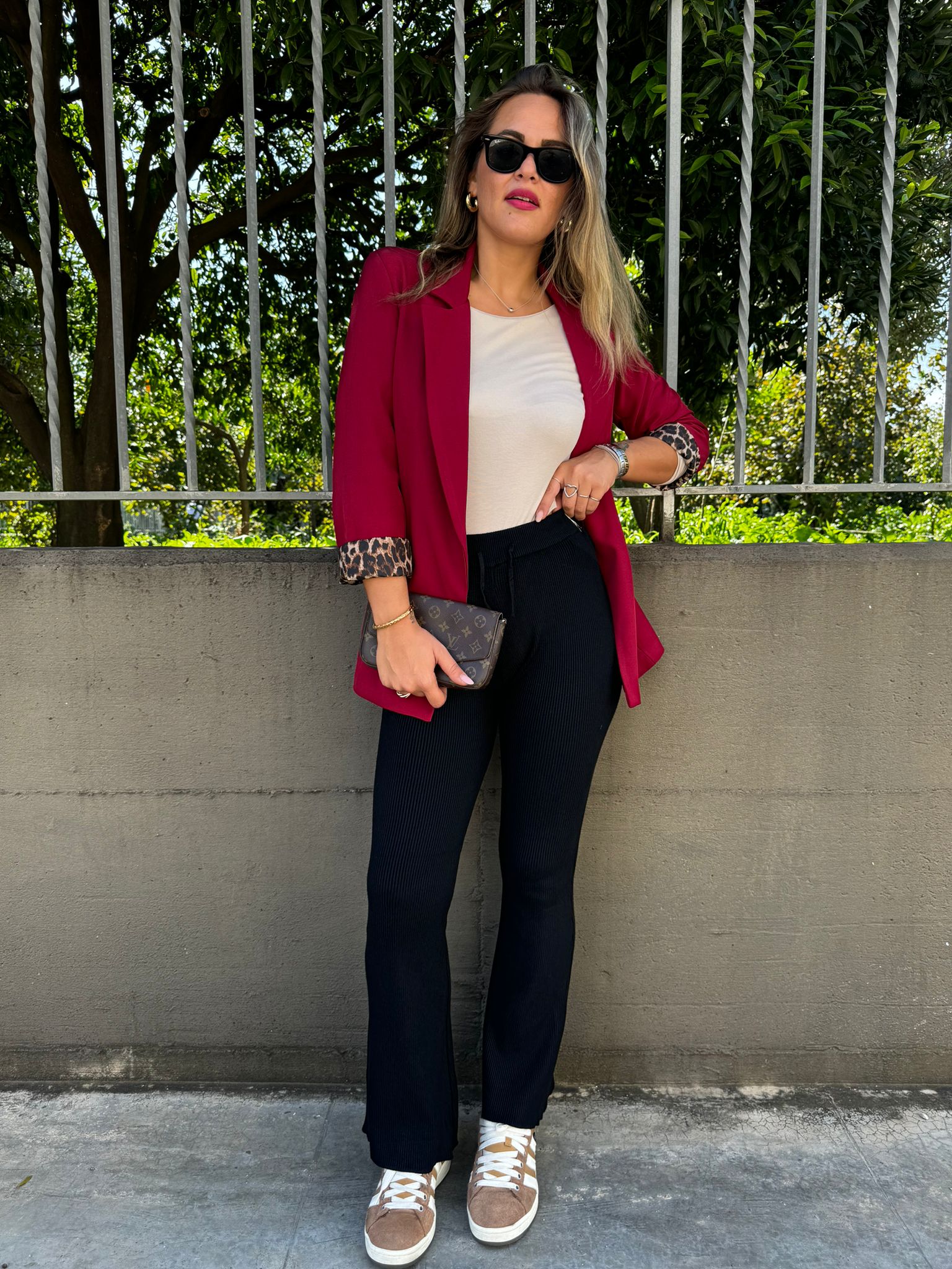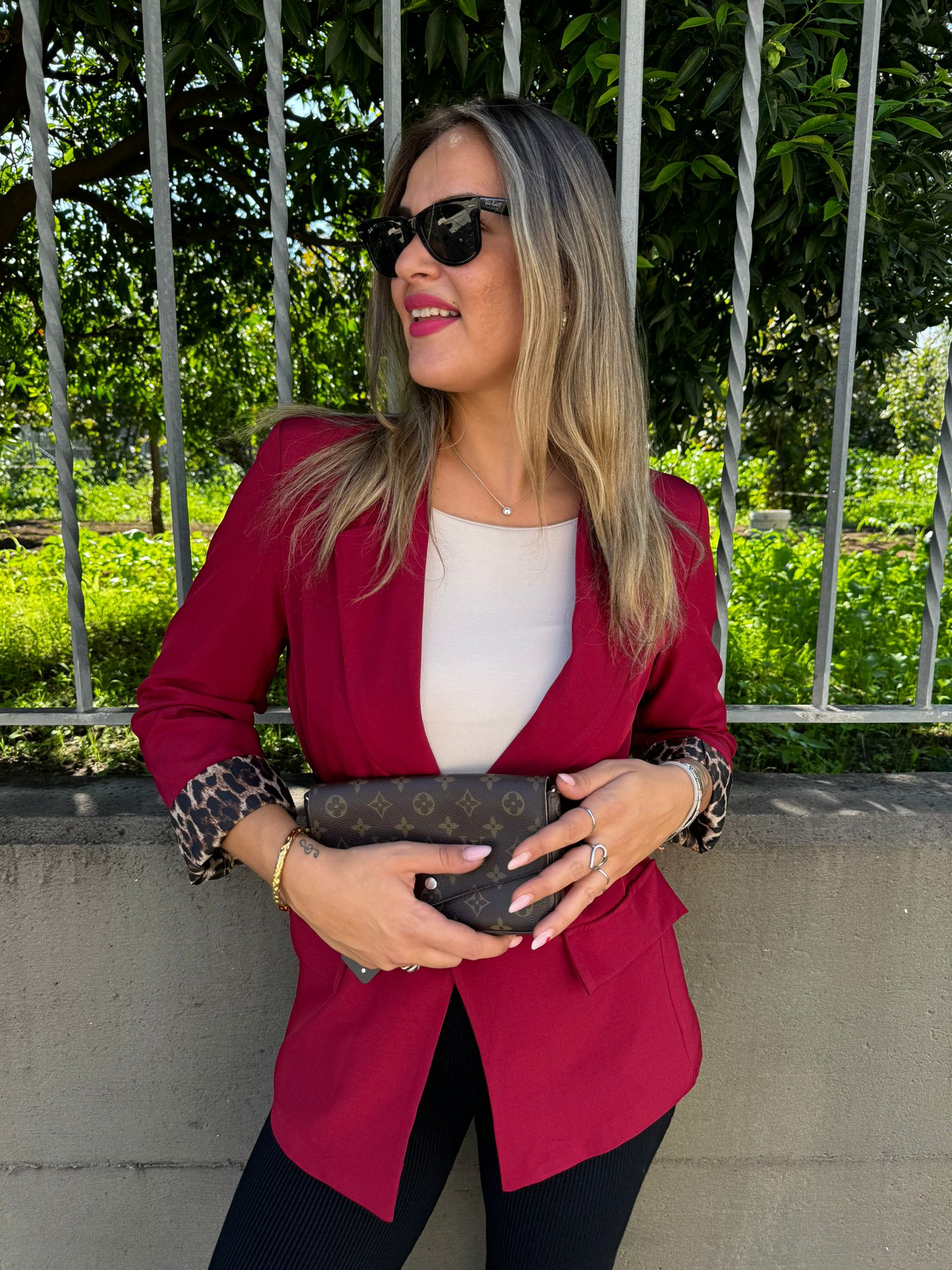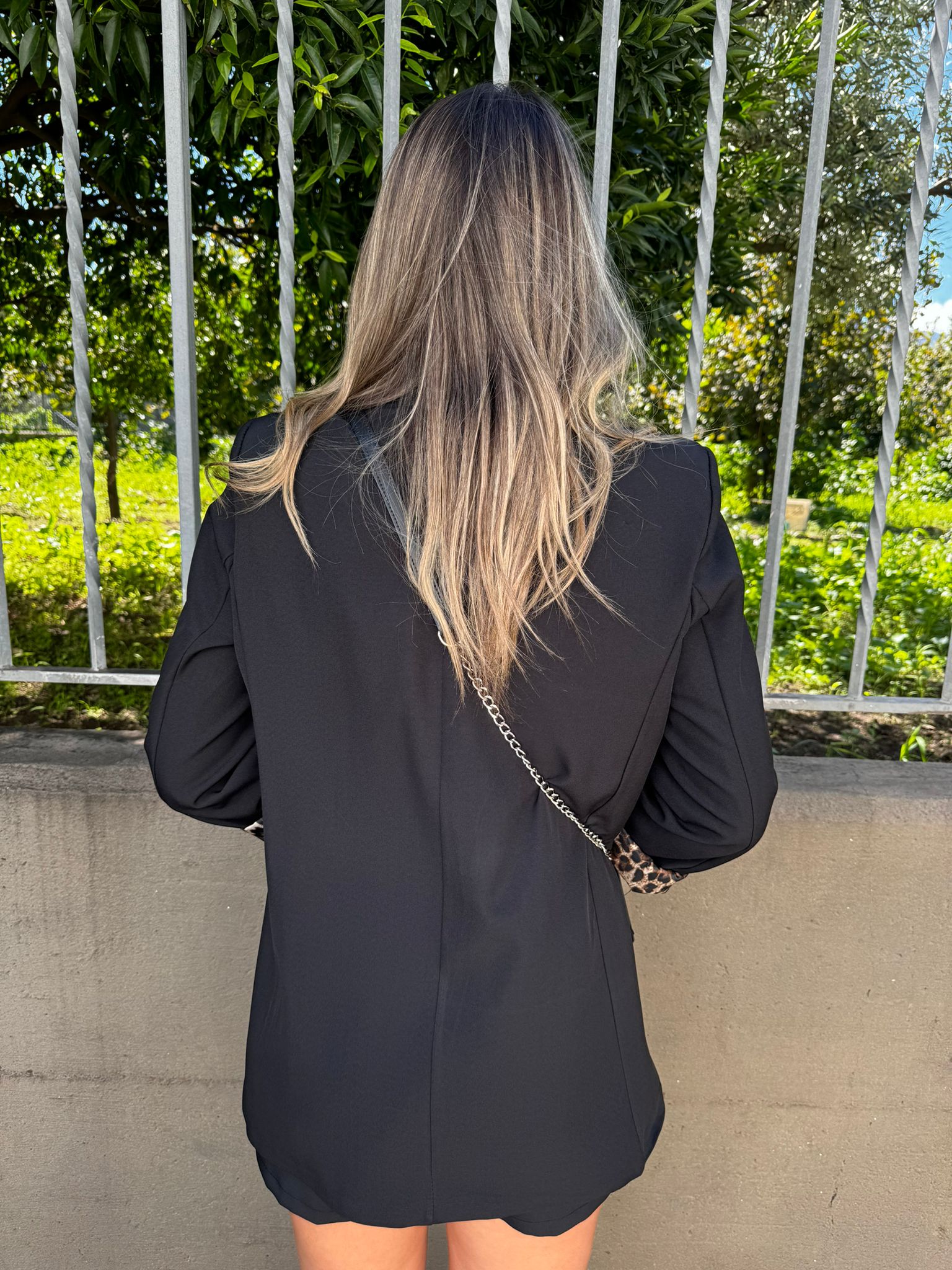Giacca tinta unita con risvolto leopardato