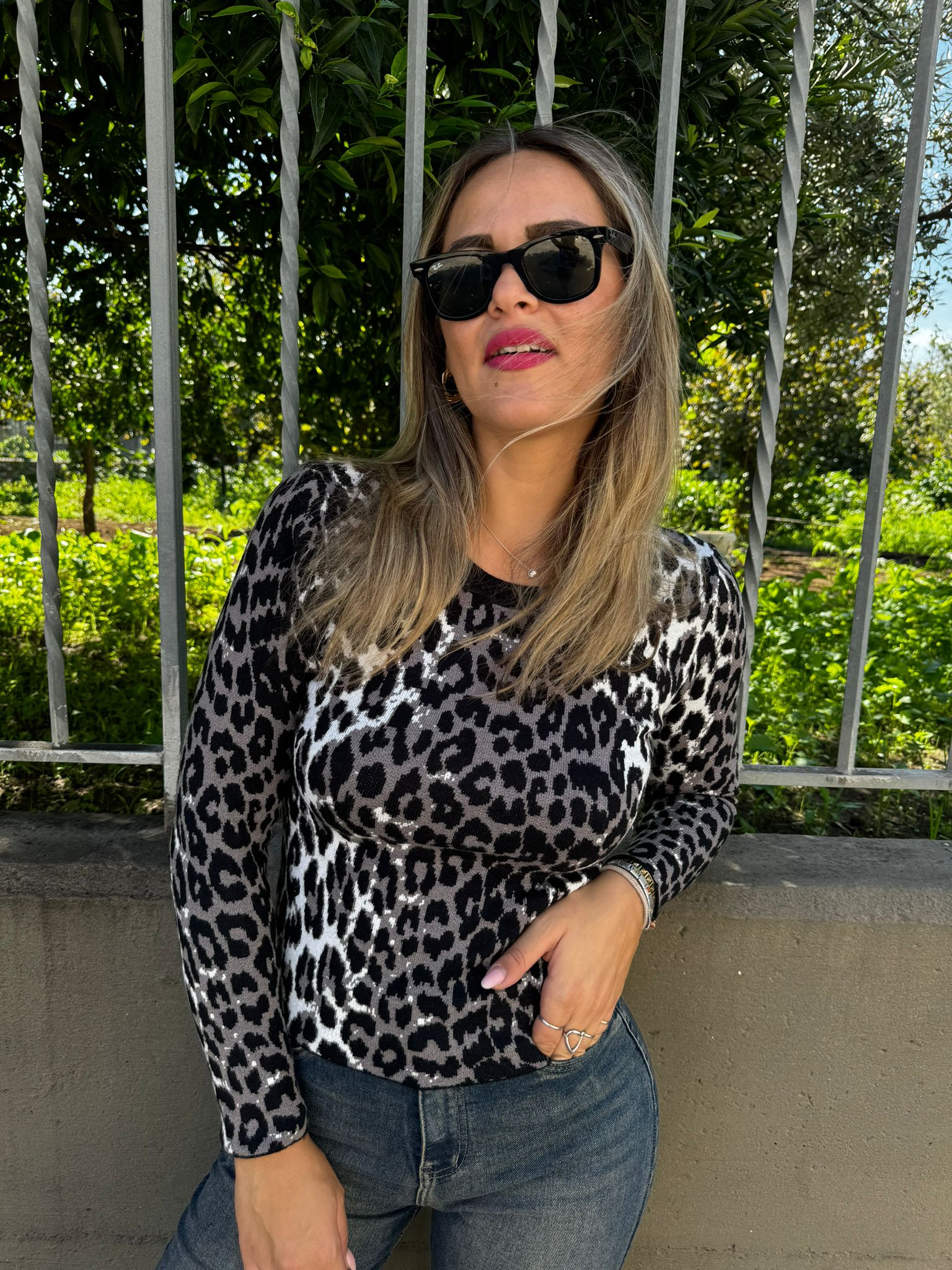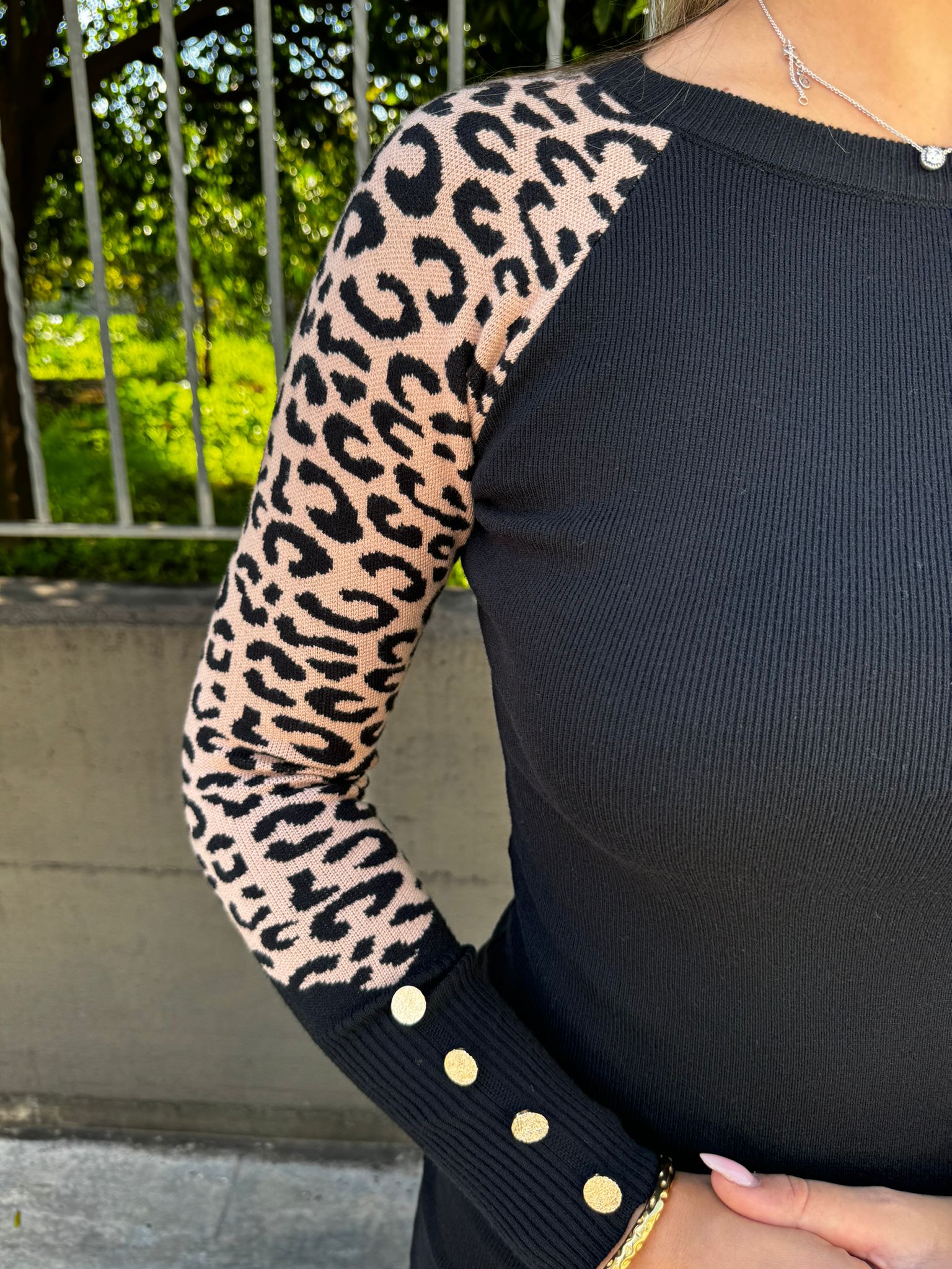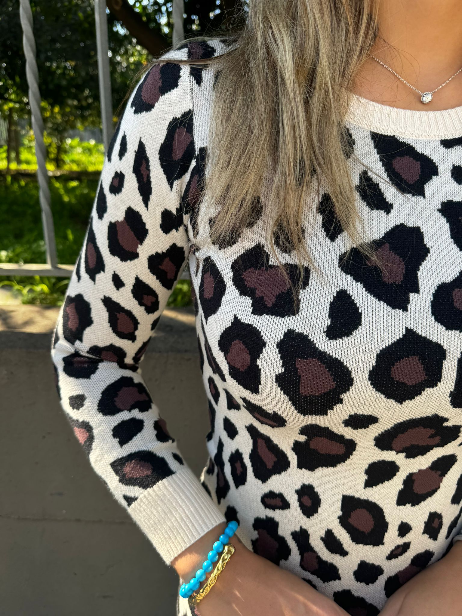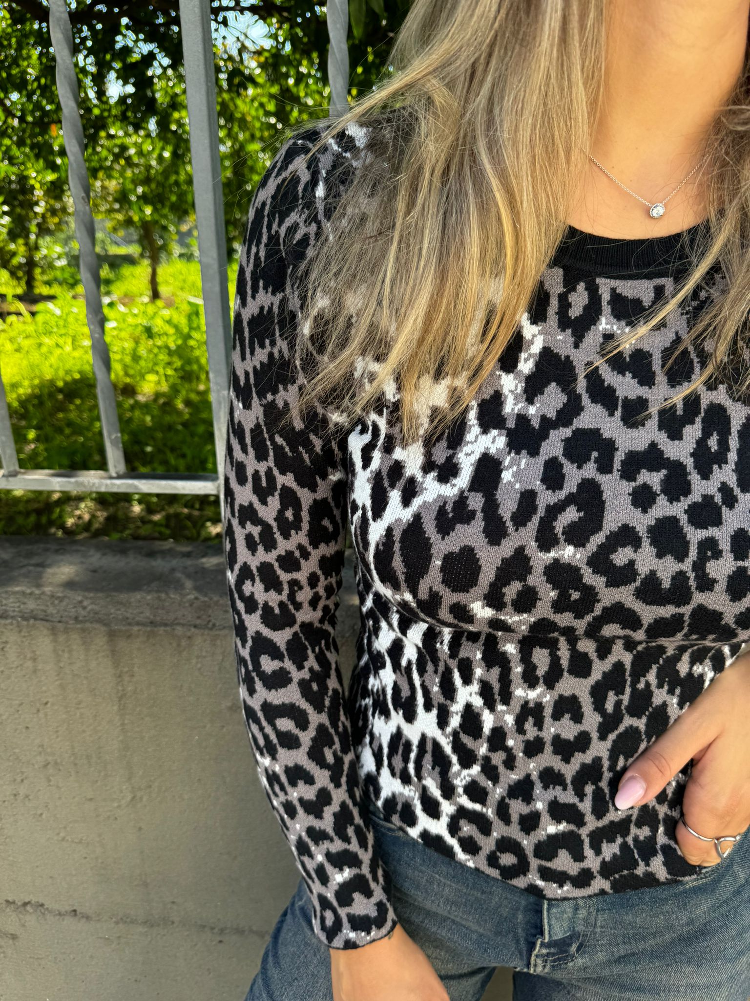 Maglione leopardato giro collo