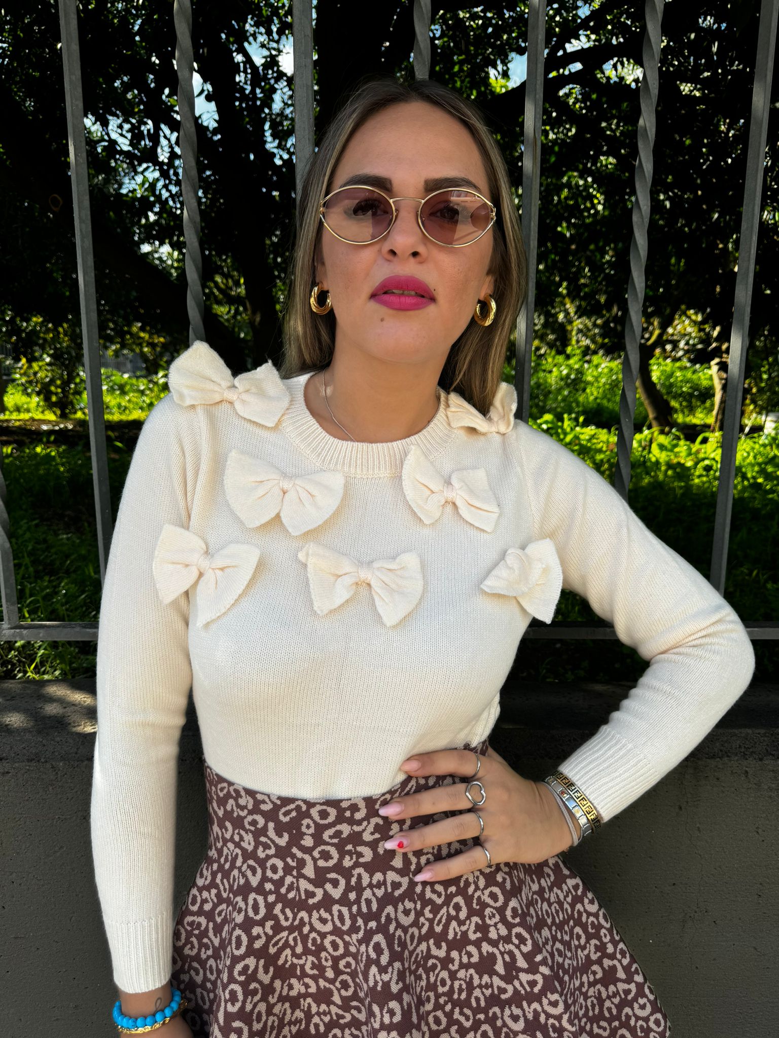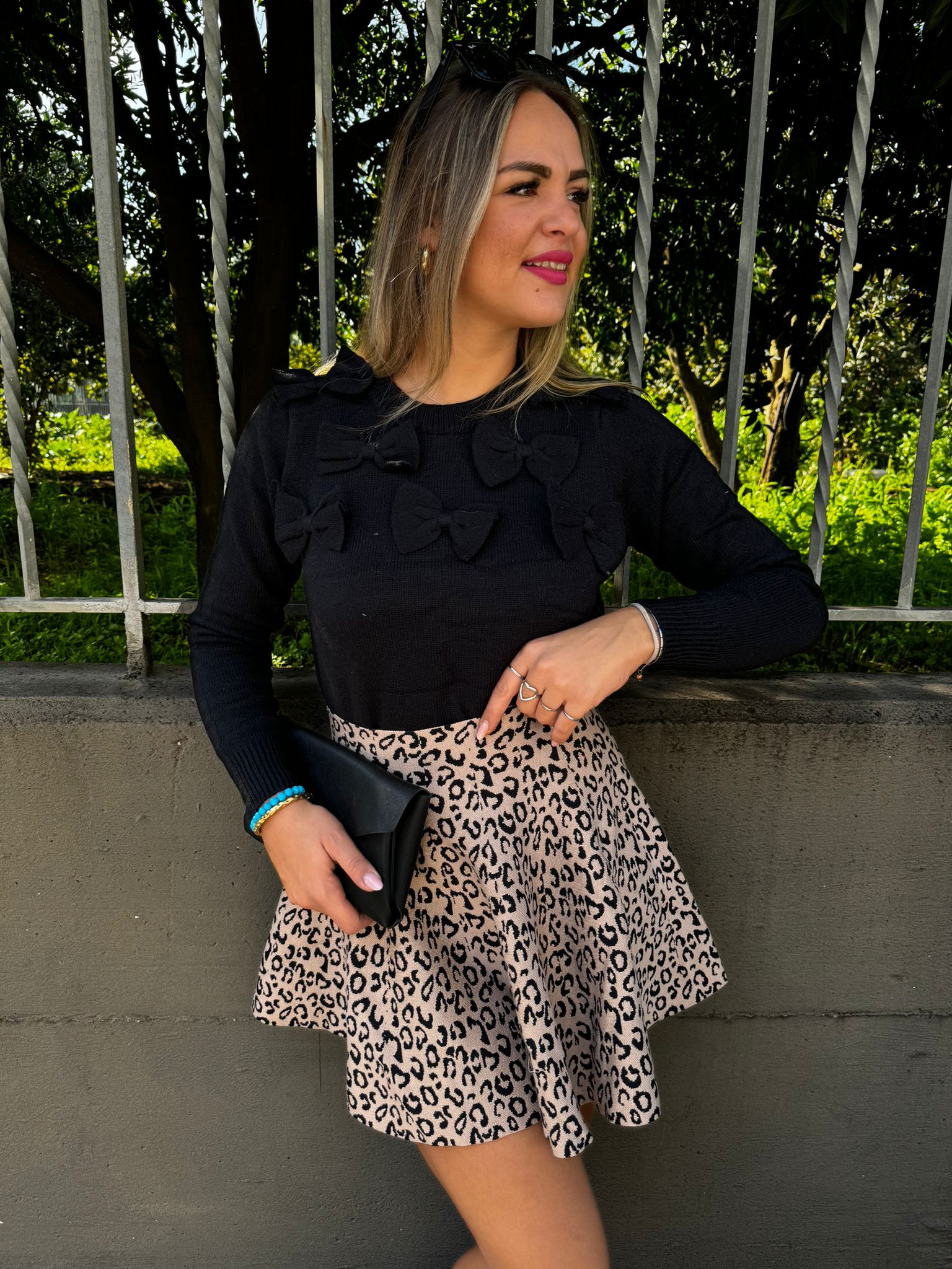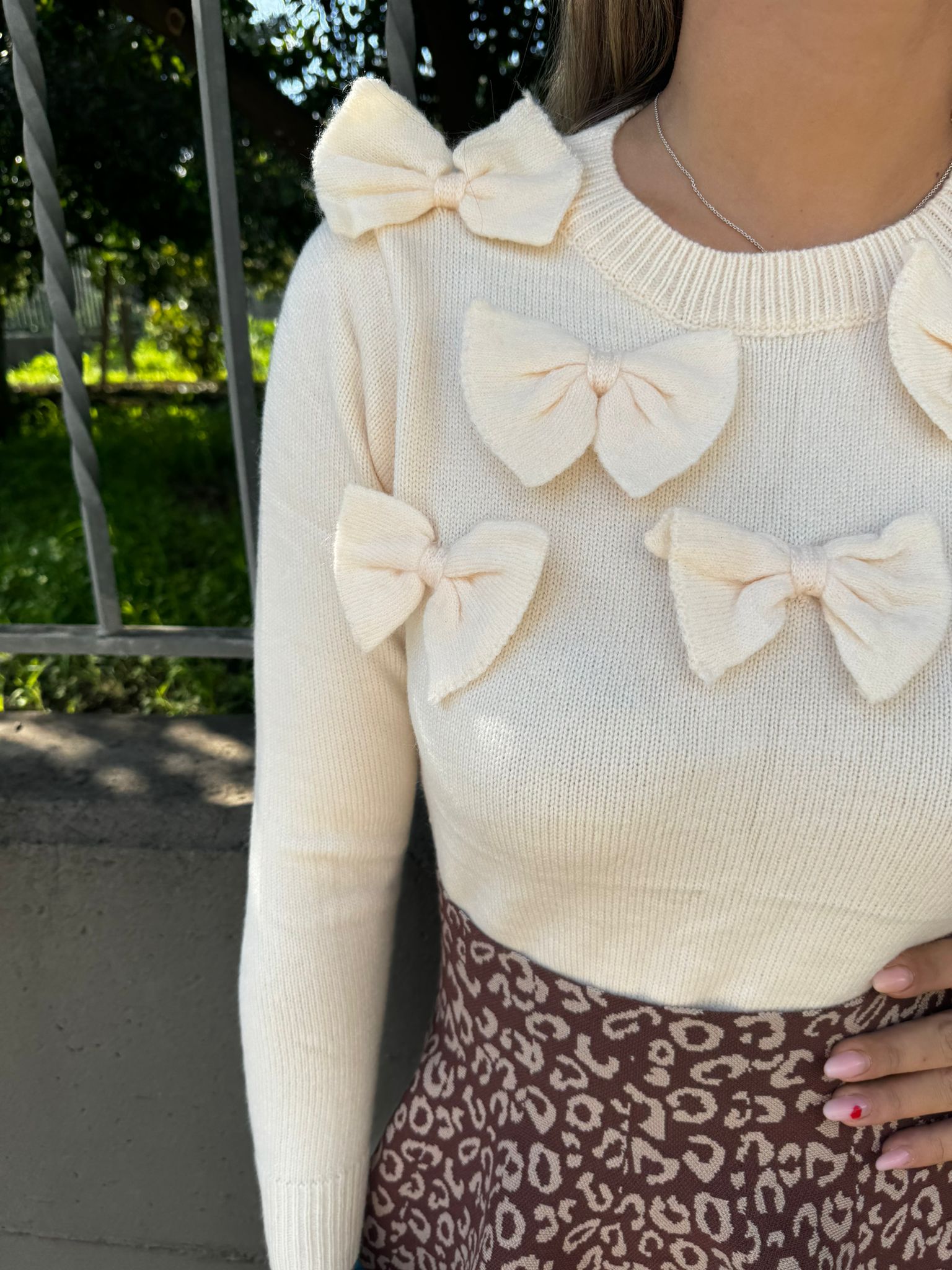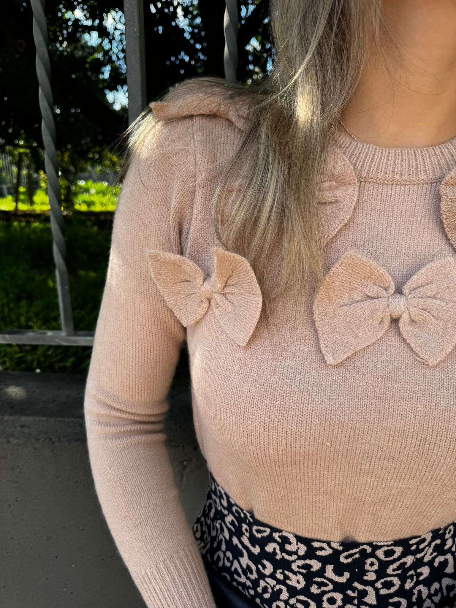 Maglione giro collo con fiocchi