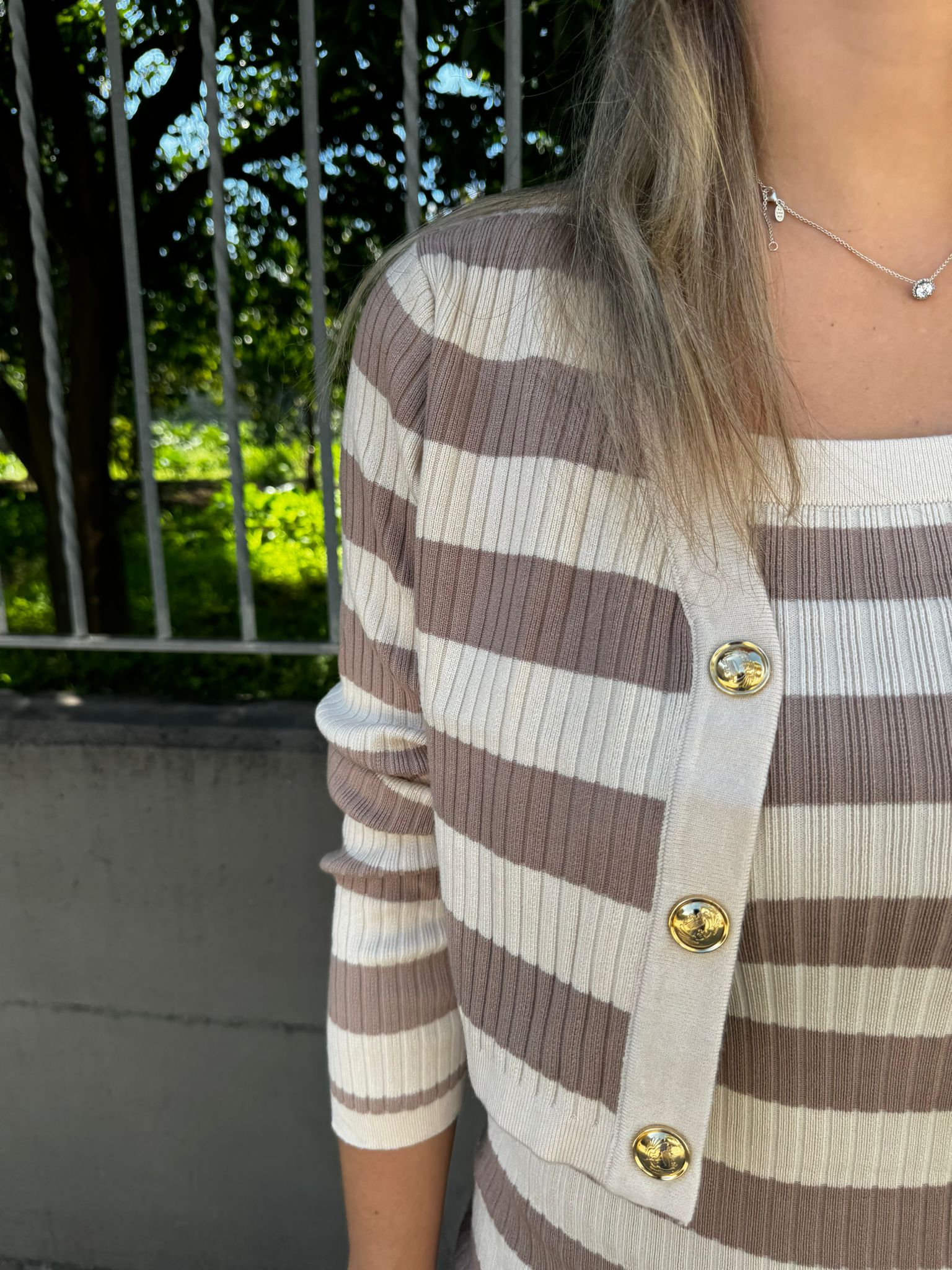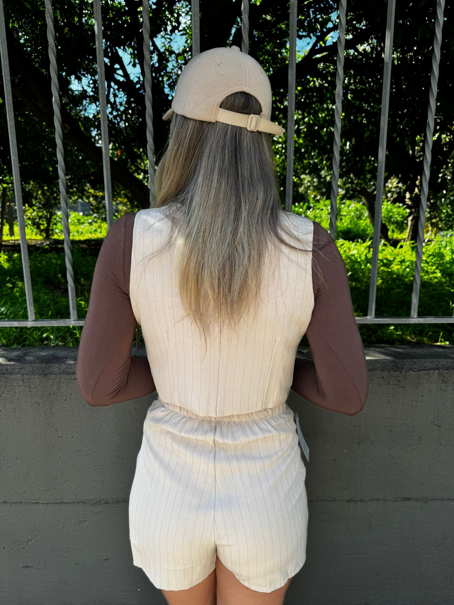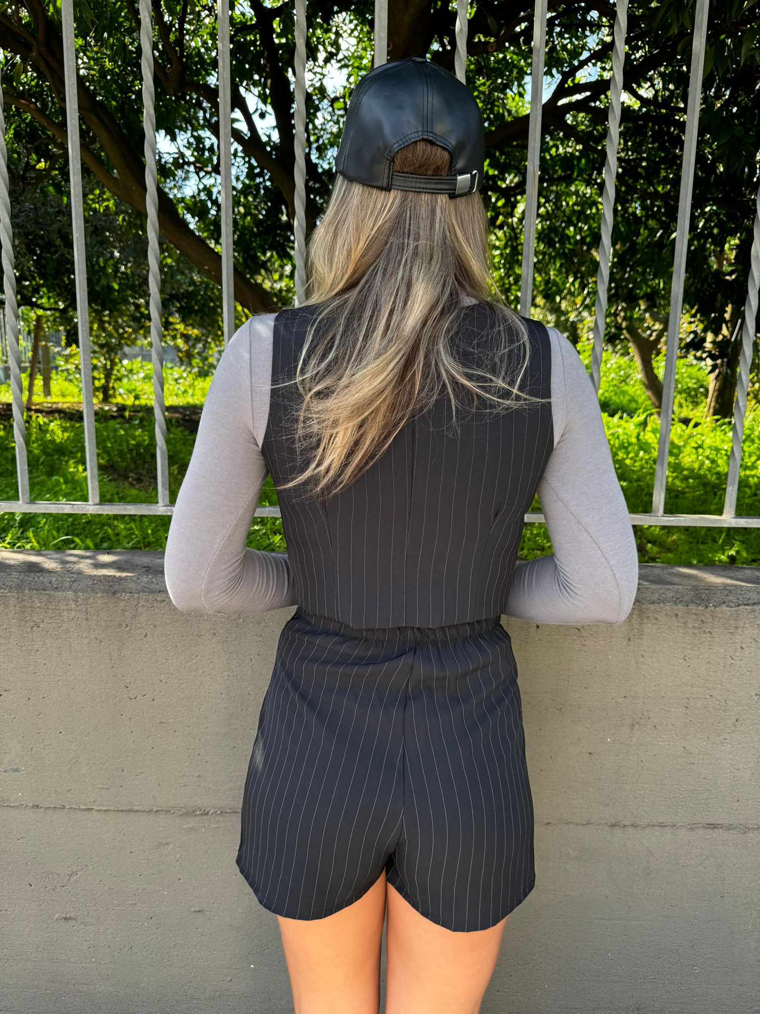 Coordinato 2 pezzi a righe con shorts e gilet