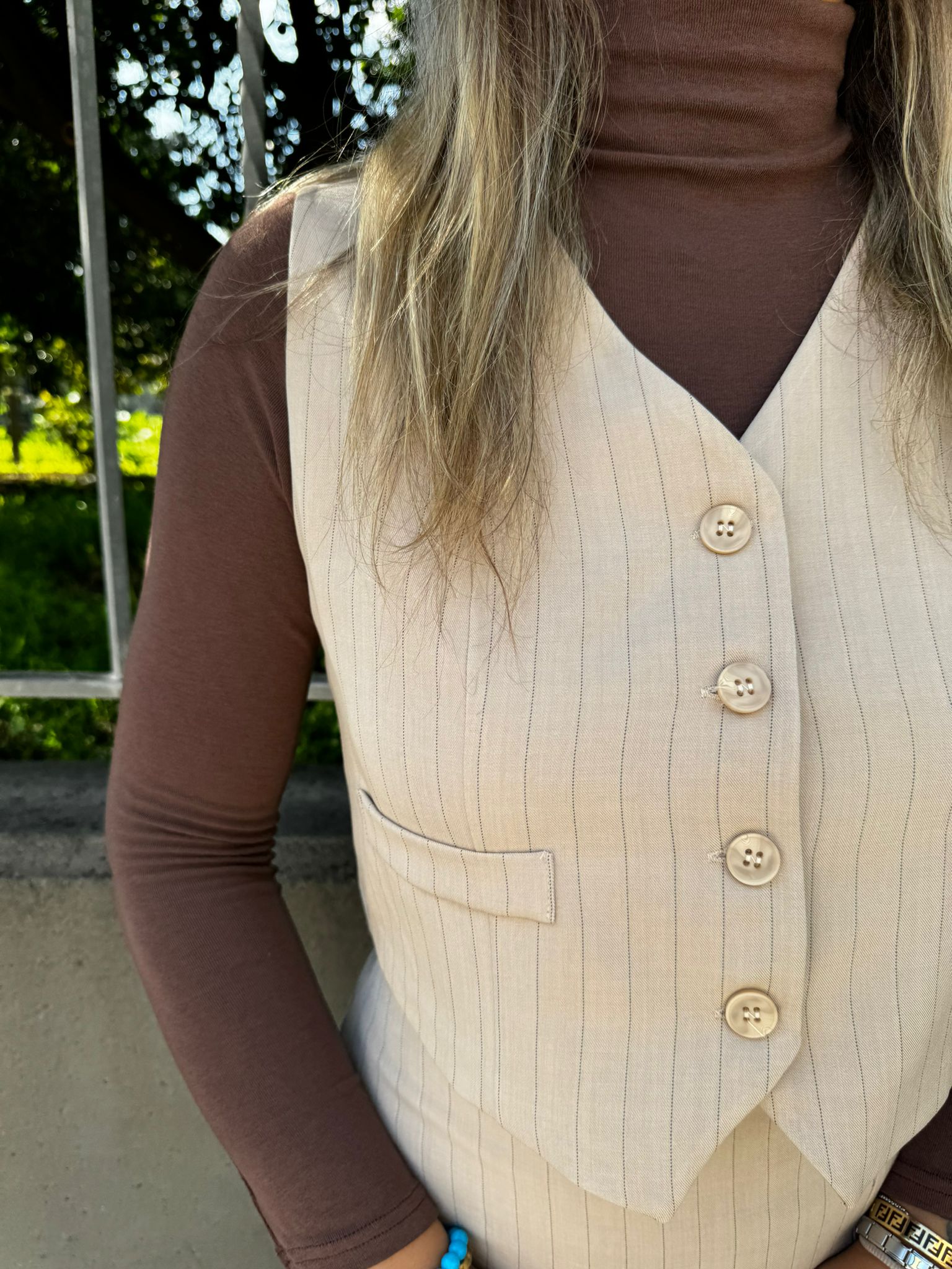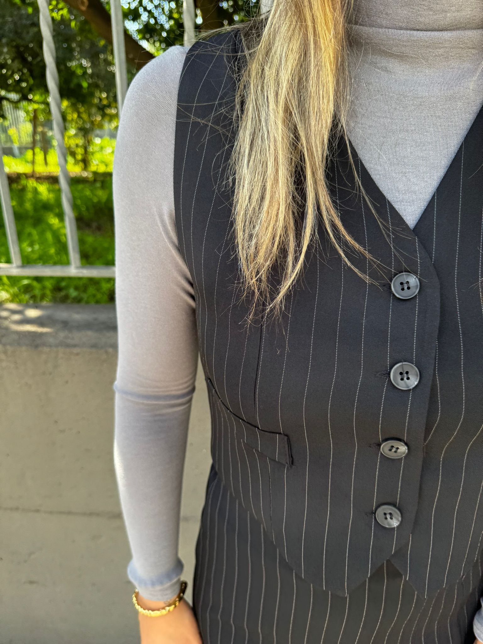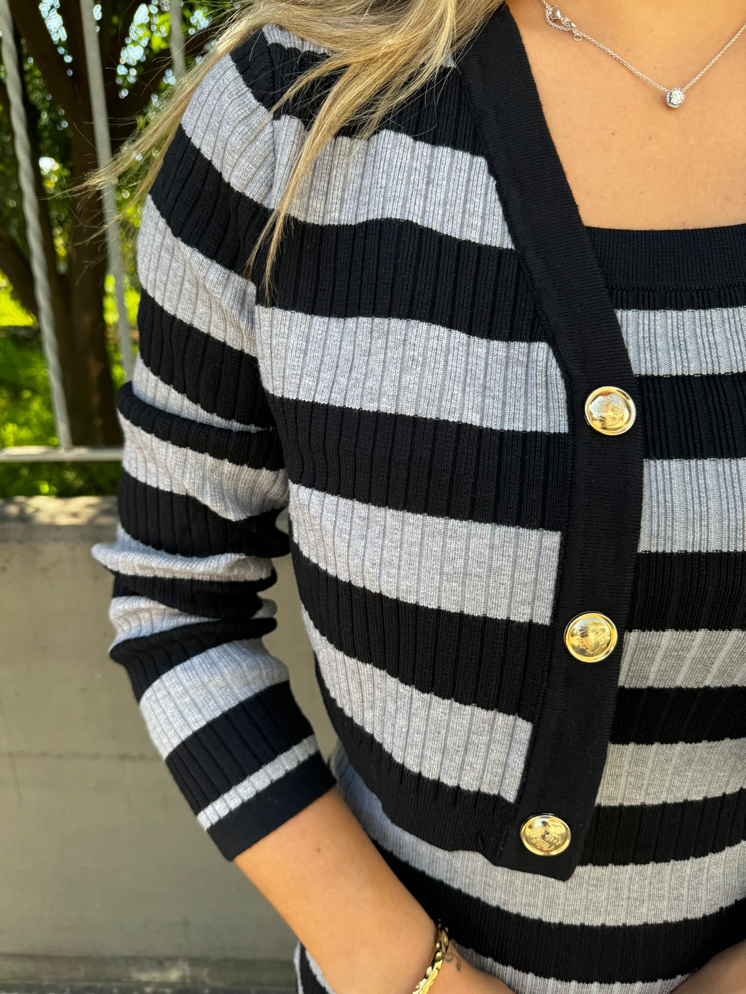 Coordinato 2 pezzi a righe con shorts e gilet